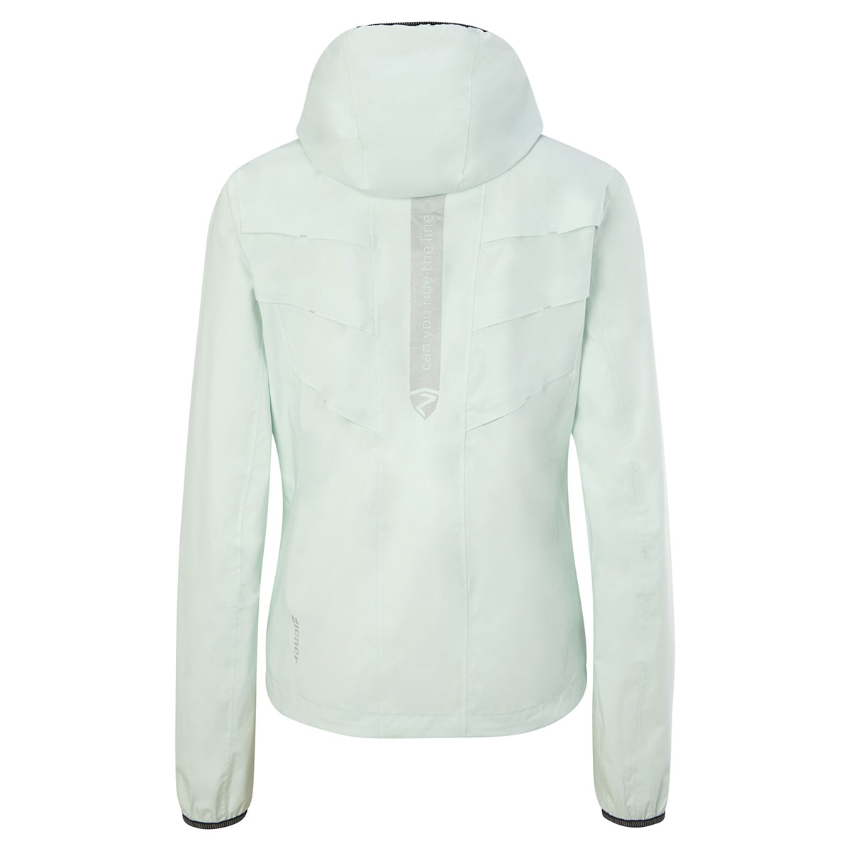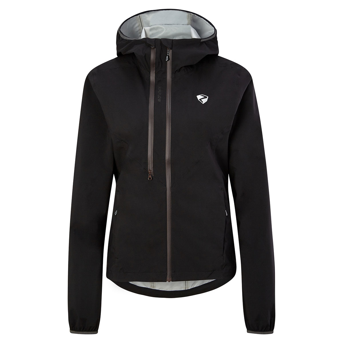 The functional ZIENER rain jacket NARELA for women is the perfect choice for any cycling tour: the waterproof, windproof and breathable AQUASHIELD® membrane (hydrostatic head 15,000 mm / breathability 15,000g/m²/24h) ensures a pleasant, dry climate in any wind and weather. In addition, the seams are taped and the front zips are waterproof. Thanks to the fixed hood with high collar, you are always protected from the rain. The elasticated cuffs and hood and the adjustable hem and hood ensure the perfect fit. The stretchy material of the jacket ensures optimal freedom of movement. The ventilation options on the front and back provide the necessary airflow. Two zipped side pockets provide plenty of storage space for essential items. The jacket comes with decorative, reflective design elements. The product is PFC-free – instead, ZIENER waterproofs it with an environmentally friendly coating, so no hazardous substances are released into the environment. Environmentally friendly and high-performance!