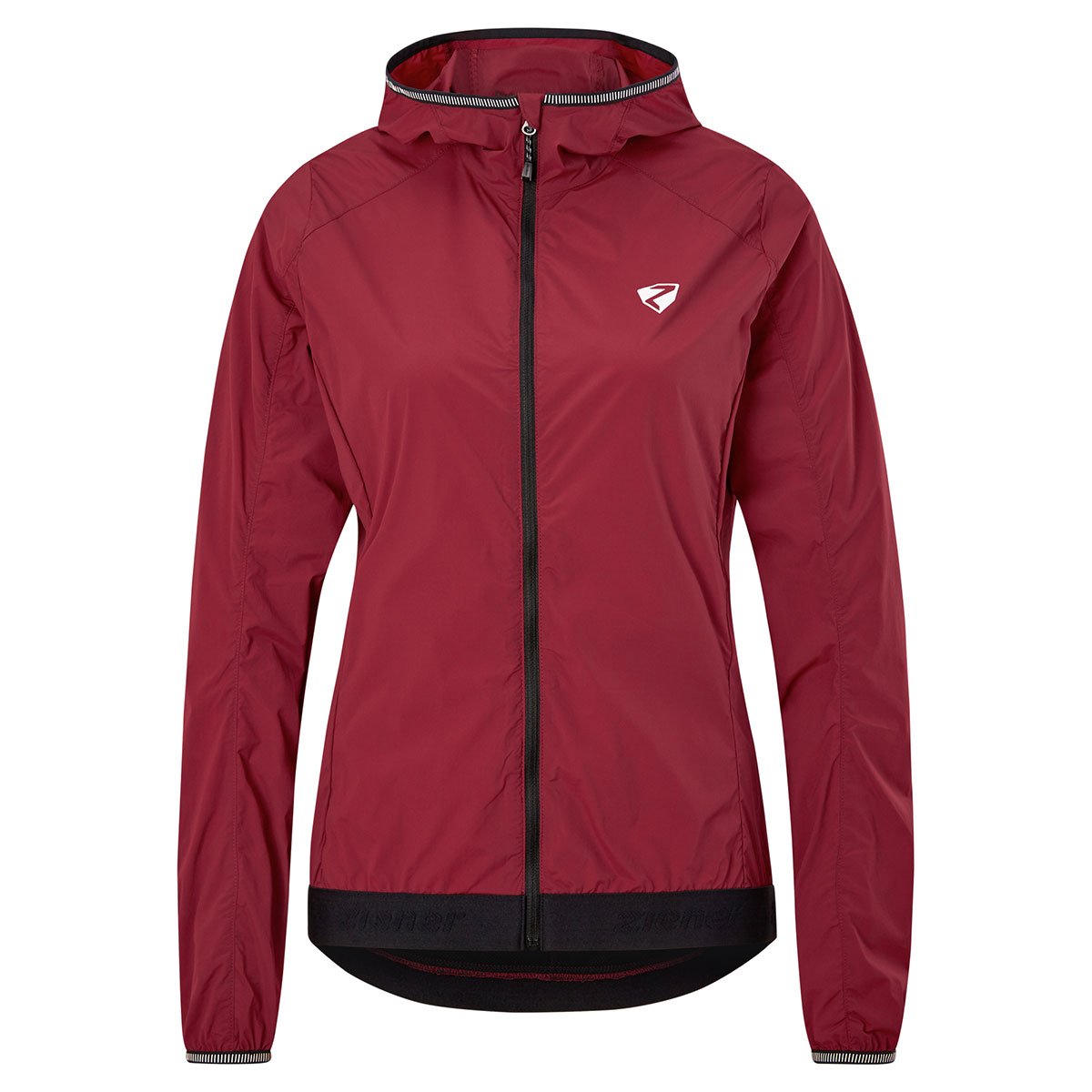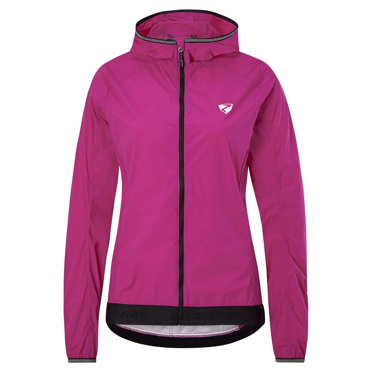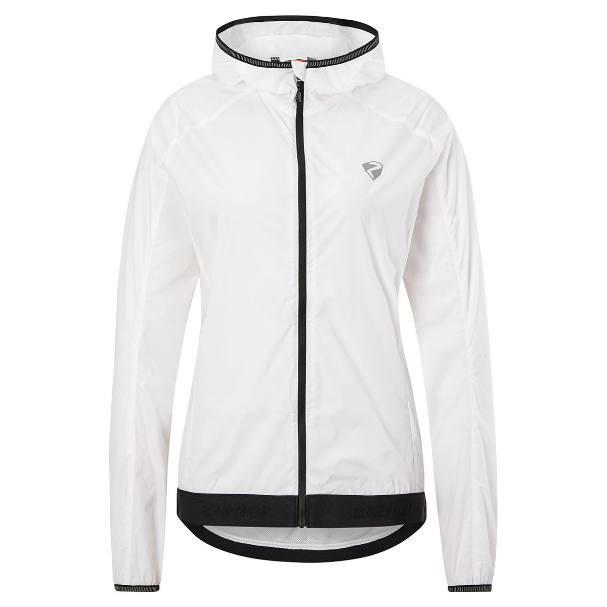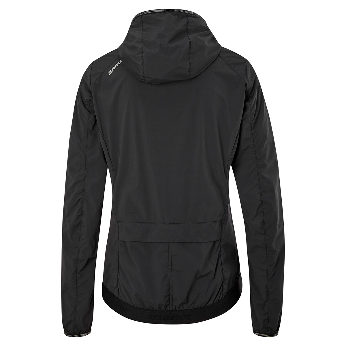 The functional ZIENER windbreaker jacket NORIA for women is a true all-rounder. The wind- and water-repellent WINDSHIELD® material prevents cooling down and keeps light rain out. In addition, the 4-way stretch material guarantees optimum freedom of movement. The elasticated hem, cuffs and hood ensure maximum wearing comfort. Ventilation holes under the arms provide perfect air circulation. A double back pocket provides plenty of storage space for essential items. Thanks to its extremely small packing size and weight, it can be easily carried and stowed away on all tours. The jacket comes with a fixed hood as well as decorative reflective design elements. The product is PFC-free – instead, ZIENER waterproofs it with an environmentally friendly coating, so no hazardous substances are released into the environment. Environmentally friendly and high-performance!