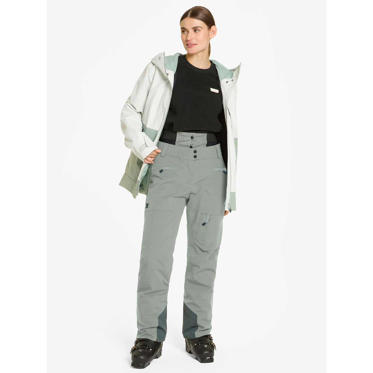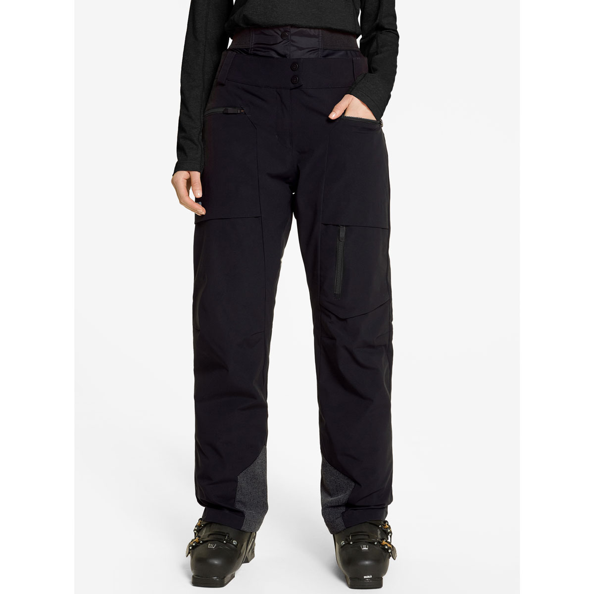 The highly functional, padded ZNR women's freeride pants RANVA LADY are the perfect companion for freeriding. The breathable, windproof and waterproof ZIENER AQUASHIELD® membrane (water column 10,000mm/breathability 10,000g/m²/24h) ensures a warm and dry climate. In addition, a high-quality insulation mix (60g/m² padding) guarantees special warmth and comfort even in extremely cold conditions: lavalan® wool padding ensures a natural climate without overheating. Thanks to the environmentally friendly waterproofing, the trousers are PFC-free. The high elasticated inner waistband and elasticated inner lining guarantee maximum comfort and freedom of movement. The waterproof zipper in the side pocket on the left leg and the two slit pockets allow you to safely stow your most important items. The trousers are complemented by reinforced edge protection and a snow guard. The most important seams are taped. The product contains recycled material - for resource-conserving use.