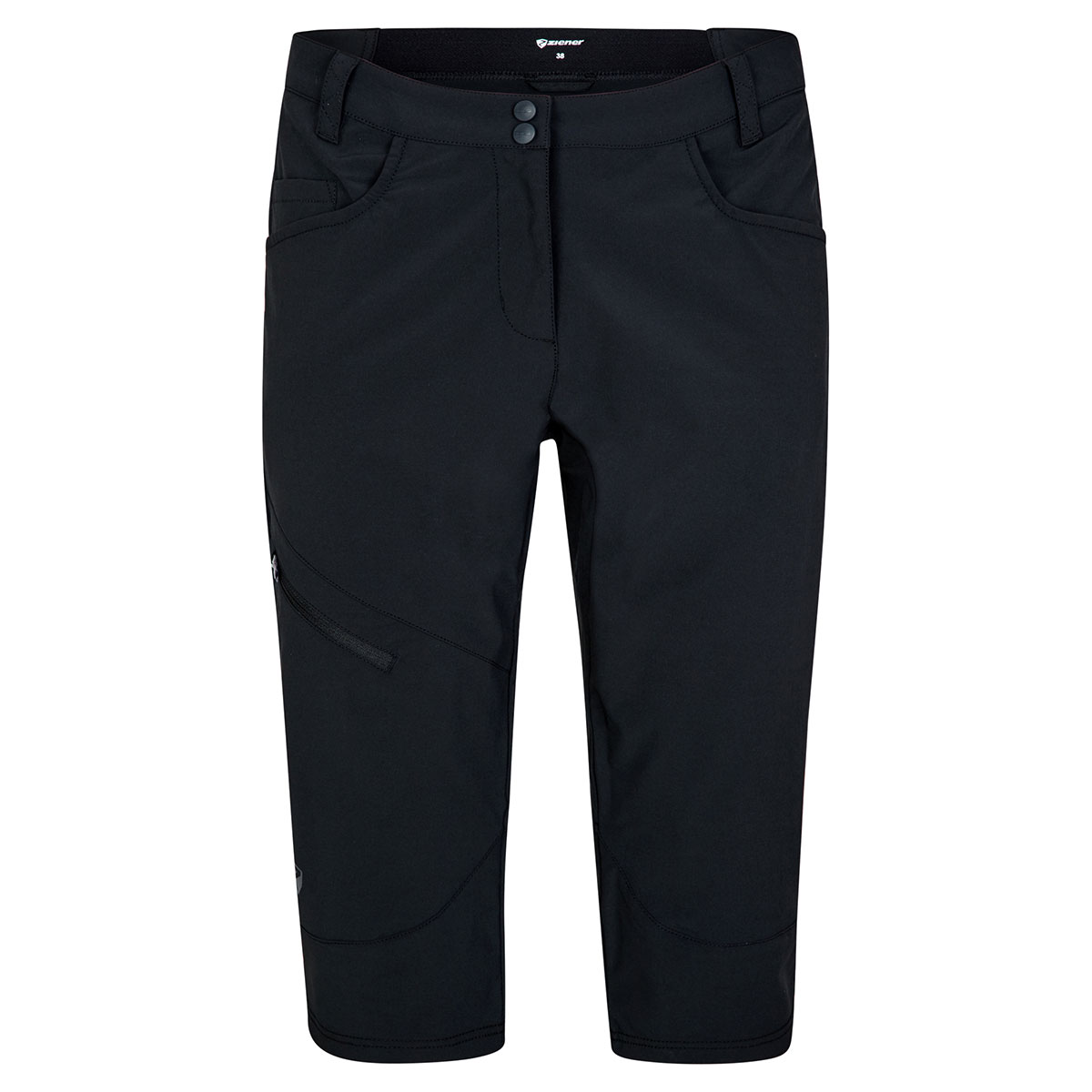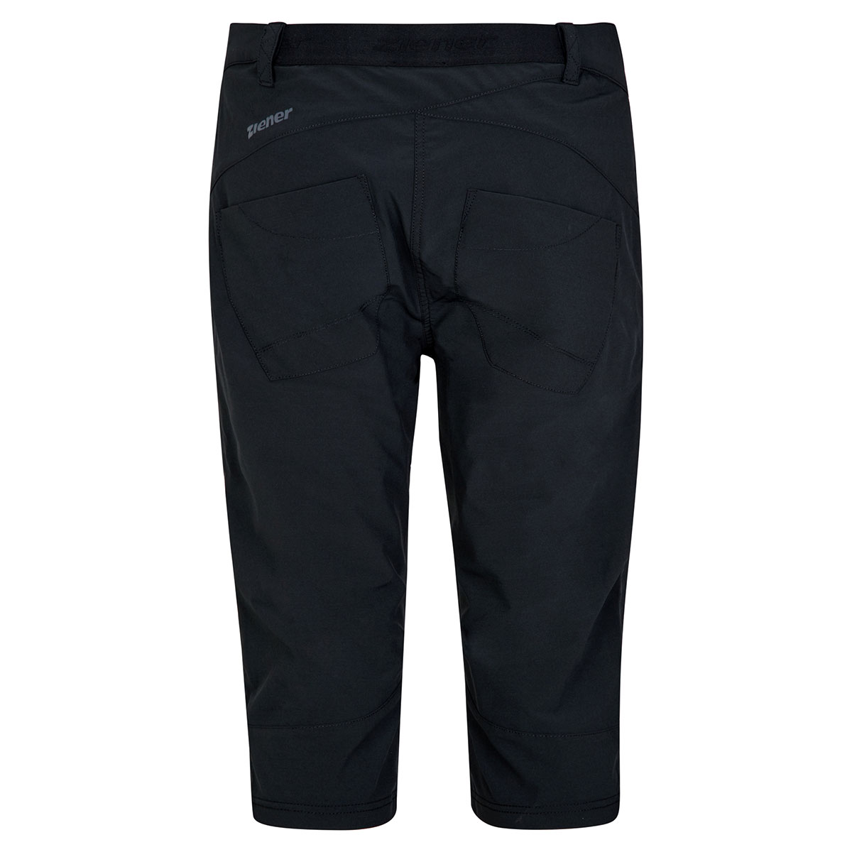 The functional ZIENER 3/4 bike trousers NIOBA X-FUNCTION for women are hard to beat for comfort. The lightweight 4-way stretch material gives perfect freedom of movement. The waistband has an elastic insert – for an optimal fit. Two side pockets, one zipped leg pocket and two rear patch pockets provide storage space for small items. The quick-drying, skin-friendly X-FUNCTION pad in the inner trousers ensures a seamless and smooth biking experience.