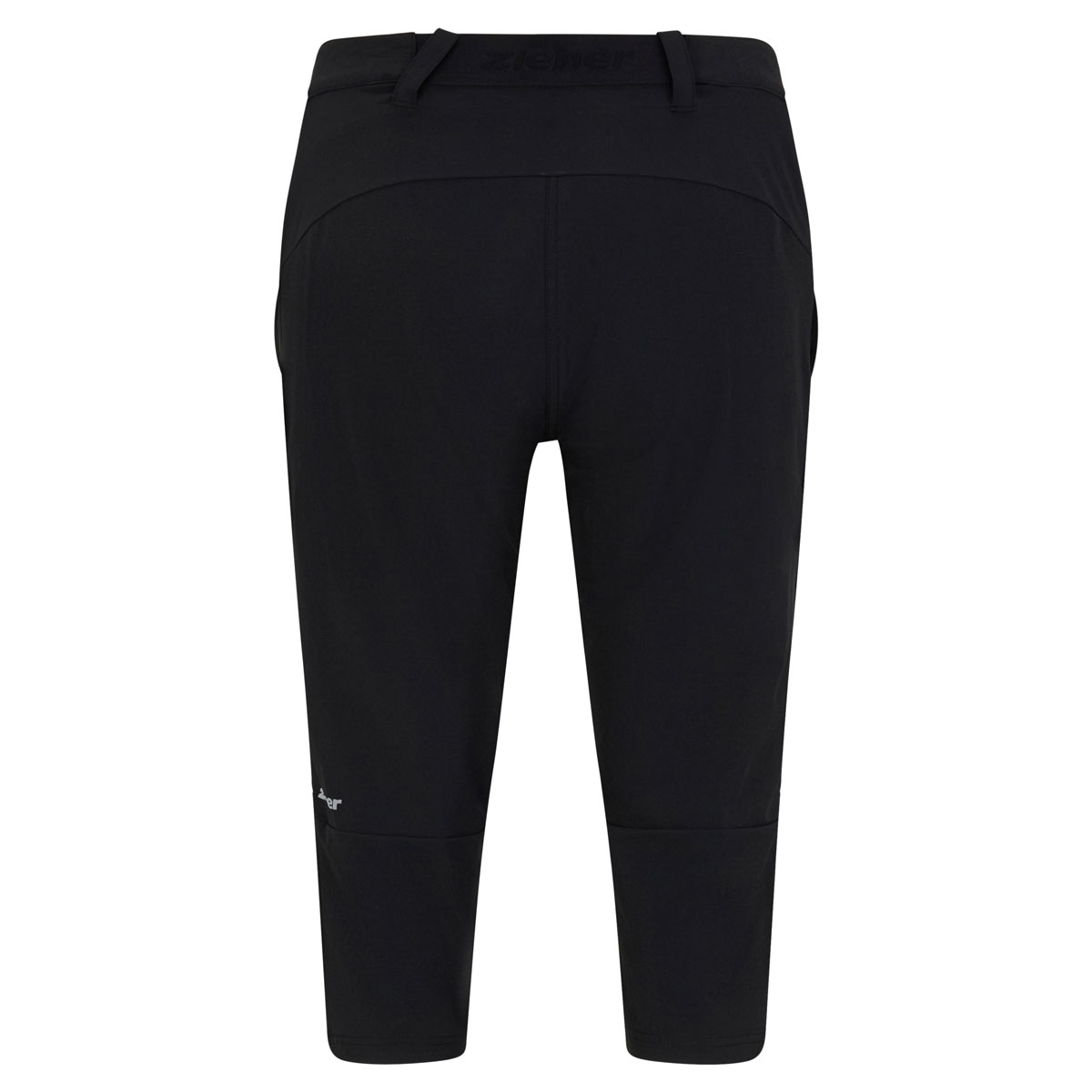 The functional ZIENER ladies' 3/4 bike pants NESTLA X-FUNCTION LADY are hard to beat in terms of comfort. The 4-way-stretch material ensures perfect freedom of movement. The partially elastic waistband with belt loops and elastic insert at the back ensures optimum comfort. Two slit pockets and one zippered pocket provide storage for small items. The inside leg length is 43 cm. The attached inner pants have an X-FUNCTION pad for seamless, smooth cycling and freedom of movement on all routes.