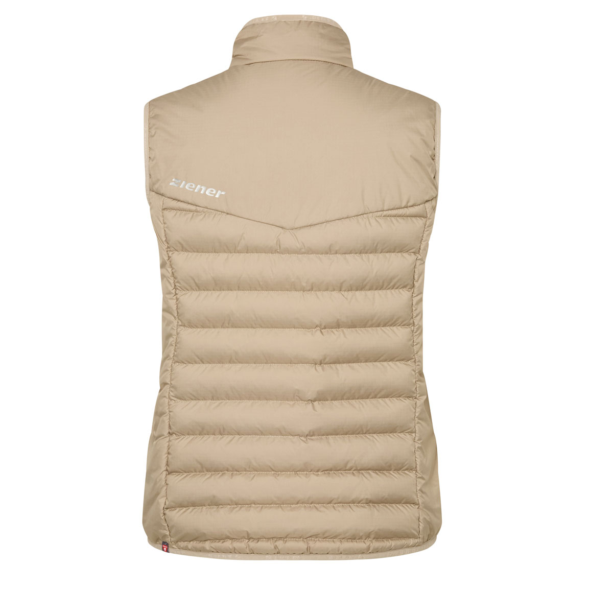 The padded ZIENER TANGE-Z Unisex thermal vest is equipped with wind and water-repellent ZIENER WEATHERSHIELD®. The Primaloft® padding (100g/m²) combined with high-quality, airy synthetic down insulation provides pleasant warmth and comfort. Two zippered pockets and two inside pockets offer plenty of storage space for personal items. Reflective design elements round off the vest. It is made from partially recycled materials and the impregnation is PFAS-free.