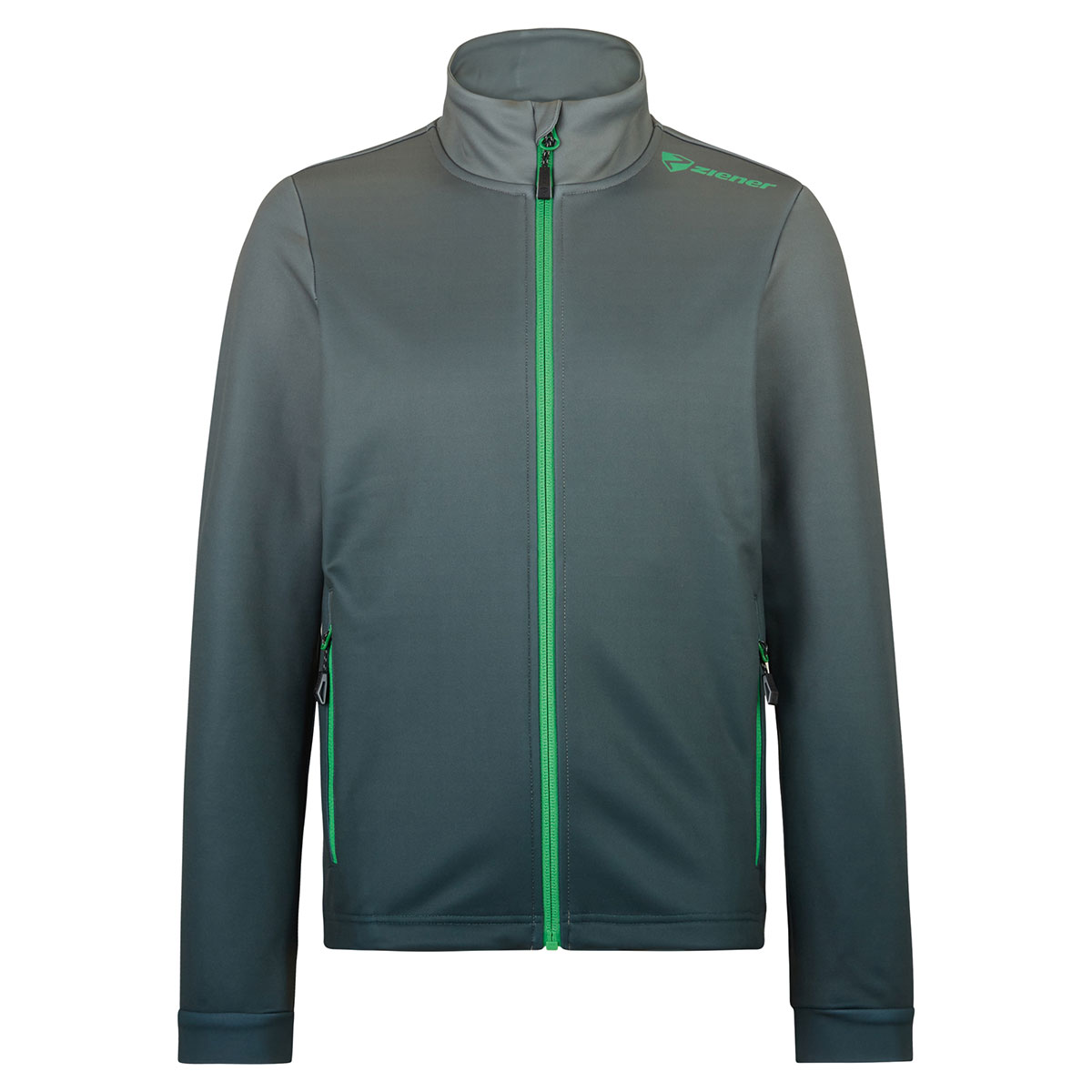 The functional, elastic ZIENER TEAMWEAR JERMAN-Z MAN softshell jacket is perfect for training or wearing over your racing suit. Thanks to the high-quality ZIENER WINDSHIELD® membrane, it is completely windproof, water-repellent, and breathable. The material protects you from cooling down due to the wind chill effect. It also has two side zip pockets and an inside pocket, which is perfect for storing your lift pass. The jacket has a close fit and features a cool color gradient. Made in Europe.