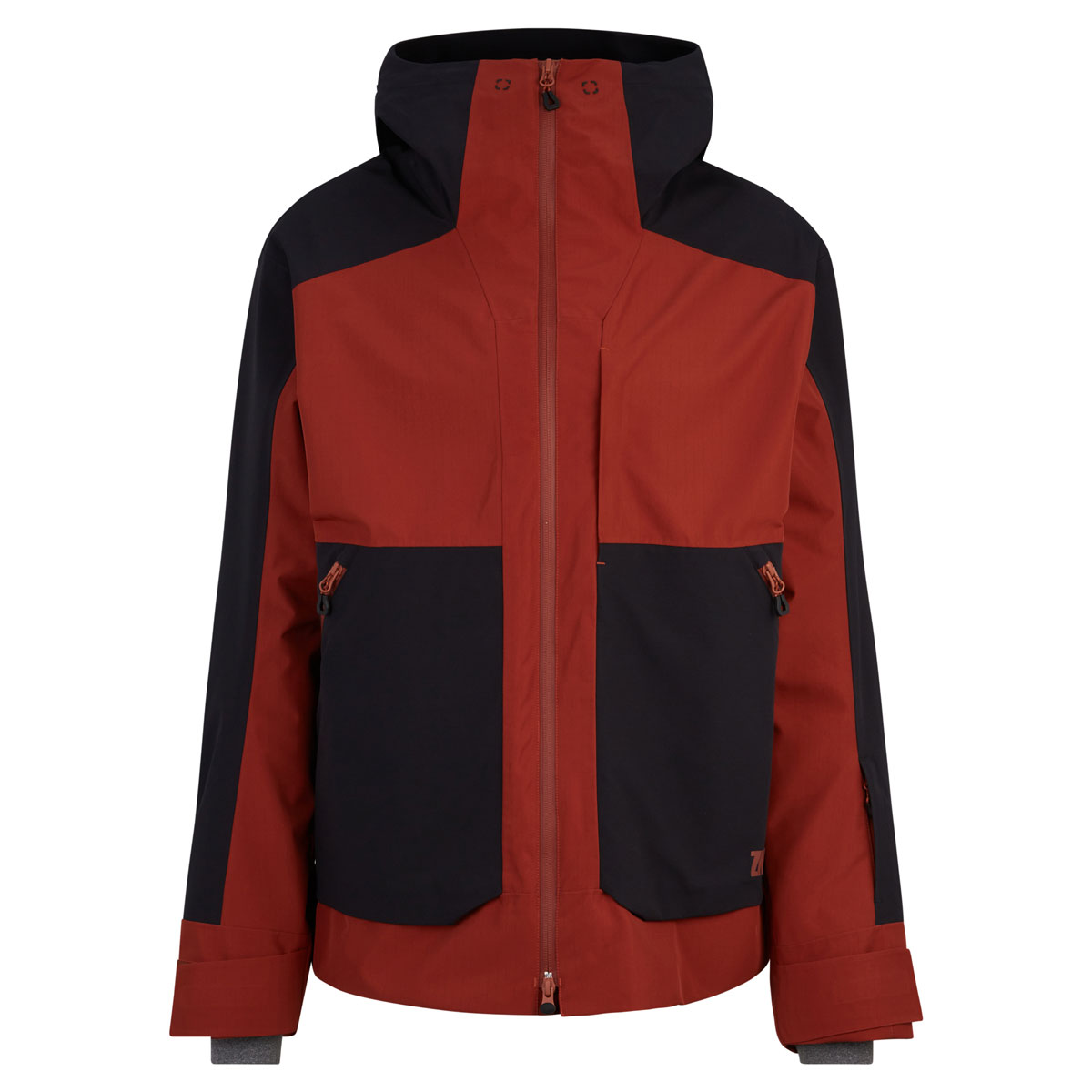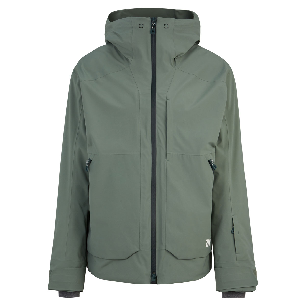 The highly functional, unpadded ZNR men's freeride jacket ROLAF MAN scores points with recycled materials. The breathable, waterproof and windproof ZIENER AQUASHIELD® membrane (water column 10,000mm/breathability 10,000g/m²/24h) and the layer with natural wool ensure a pleasant, dry climate and a perfect thermal balance. Thanks to the environmentally friendly impregnation, the jacket is PFC-free. The most important seams are taped. Technical details such as the snow guard, the adjustable functional hood and the elasticated inner sleeve cuffs ensure perfect functional comfort. An extra high collar keeps the neck nice and warm on cold days. Thanks to the waterproof zipper, the most important items can be safely stowed in the two slit pockets. The side ski pass pocket, pockets for ski goggles and sunglasses and a smartphone pocket make the jacket an indispensable companion on the slopes. The jacket also features a zippered chest pocket with an integrated goggle cleaning cloth for clear vision at all times. And if it does get too warm, the ventilation options under the arms provide the necessary ventilation. The most important seams are taped. The product contains recycled material - for resource-conserving use.