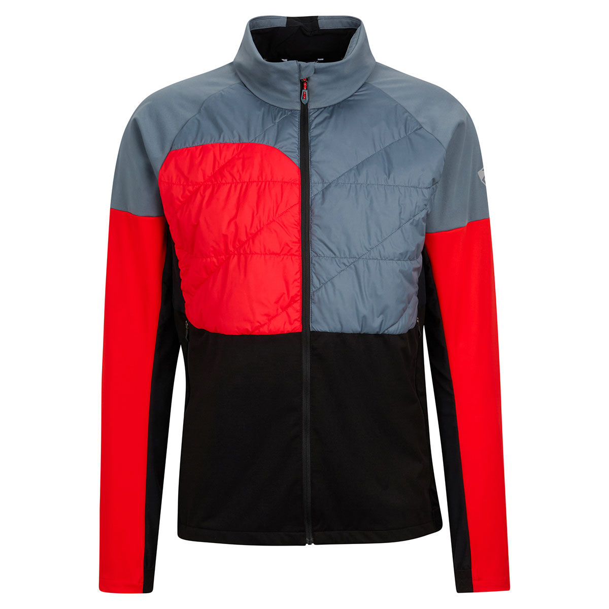 The functional, close-fitting ZIENER men's softshell hybrid jacket NODIN-Z MAN is ideal for cross-country skiing. The use of breathable and windproof ZIENER WINDSHIELD® material prevents the wind from cooling you down, while special inserts on the back and under the arms ensure better mobility and ventilation. The material is bluesign® and Standard 100 by OEKO-TEX® certified. The chest area is also equipped with PrimaLoft® insulation (40g/m² padding). Further technical details make the jacket a faithful companion for sporting adventures: The stand-up collar shields the neck from wind and weather. Two zipped side pockets at the front and a zipped side pocket at the back provide secure storage space for your smartphone and other personal items. Partially elasticated cuffs and hem with an elasticated band ensure a perfect fit and reflective design elements increase visibility.
