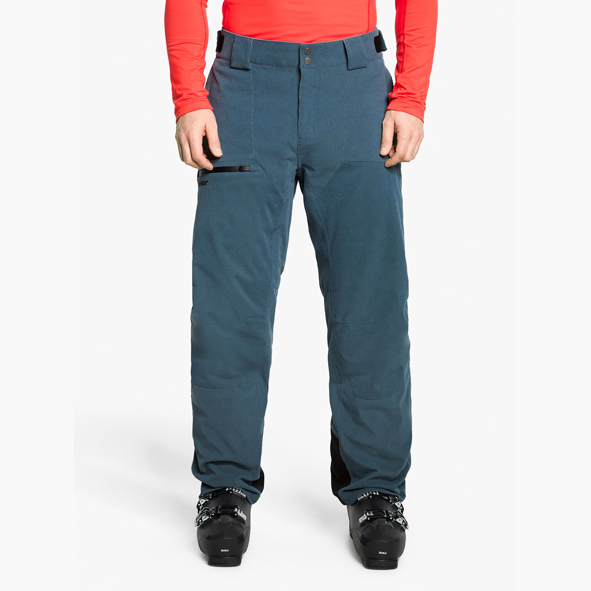 The functional, padded ZIENER men's TIFFAN-Z MAN ski pants impress with their casual, cool look. They are equipped with the breathable, waterproof and windproof ZIENER AQUASHIELD® membrane (water column 10,000mm/breathability 10,000g/m²/24h). This ensures a warm and dry climate. An 80g/m² padding made of breathable and lightweight insulation material maintains the thermal balance even when damp - for optimum comfort. The waterproofing of the pants is PFAS-free. The outer fabric is bluesign® certified. The ergonomic cut at the knee and the adjustable waistband with belt loops ensure maximum freedom of movement and a high level of comfort. Two side pockets and a pocket on the leg provide plenty of storage space. The regular fit pants have reinforced edge guard and a snow skirt.