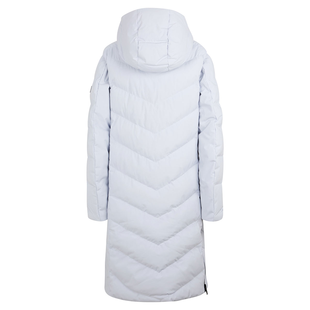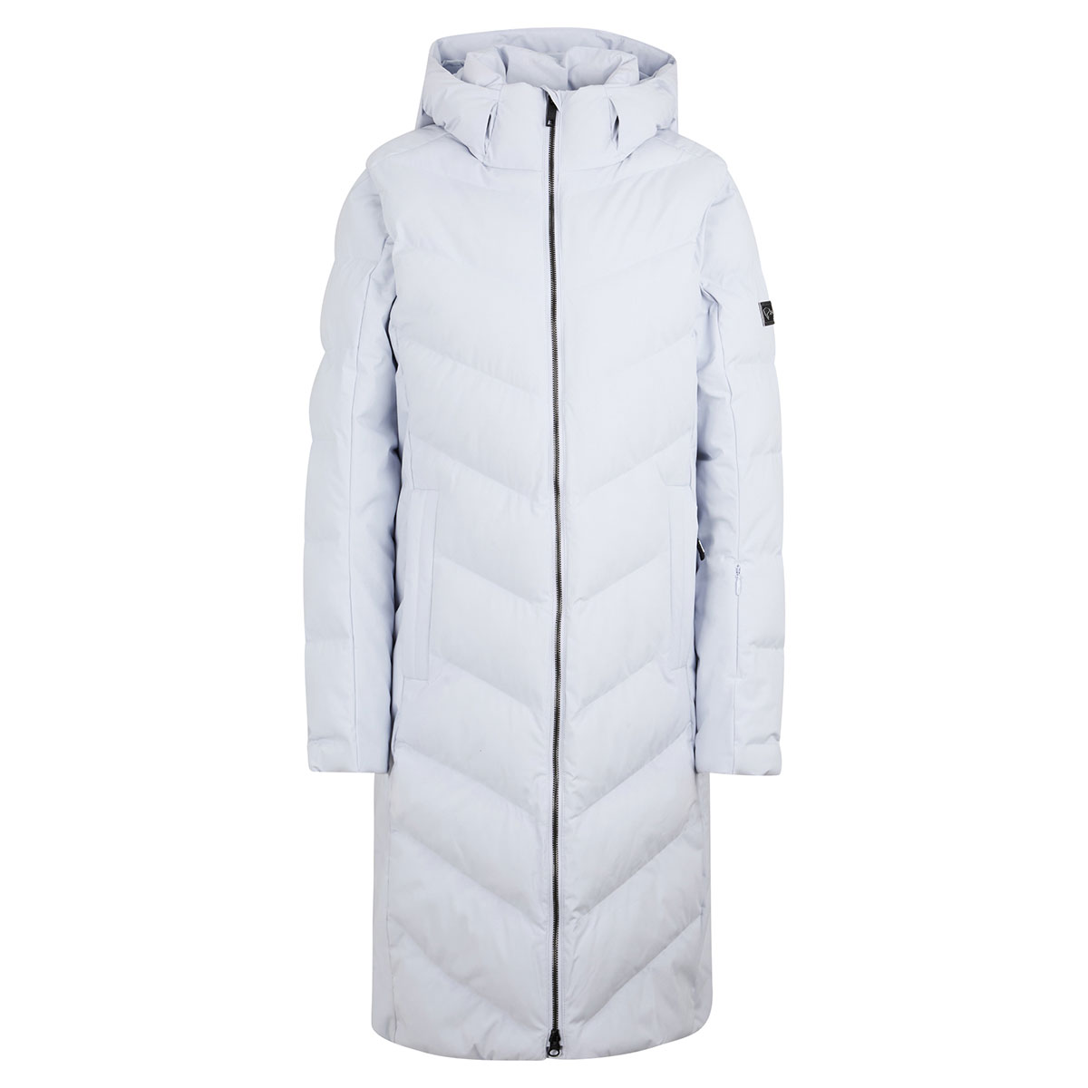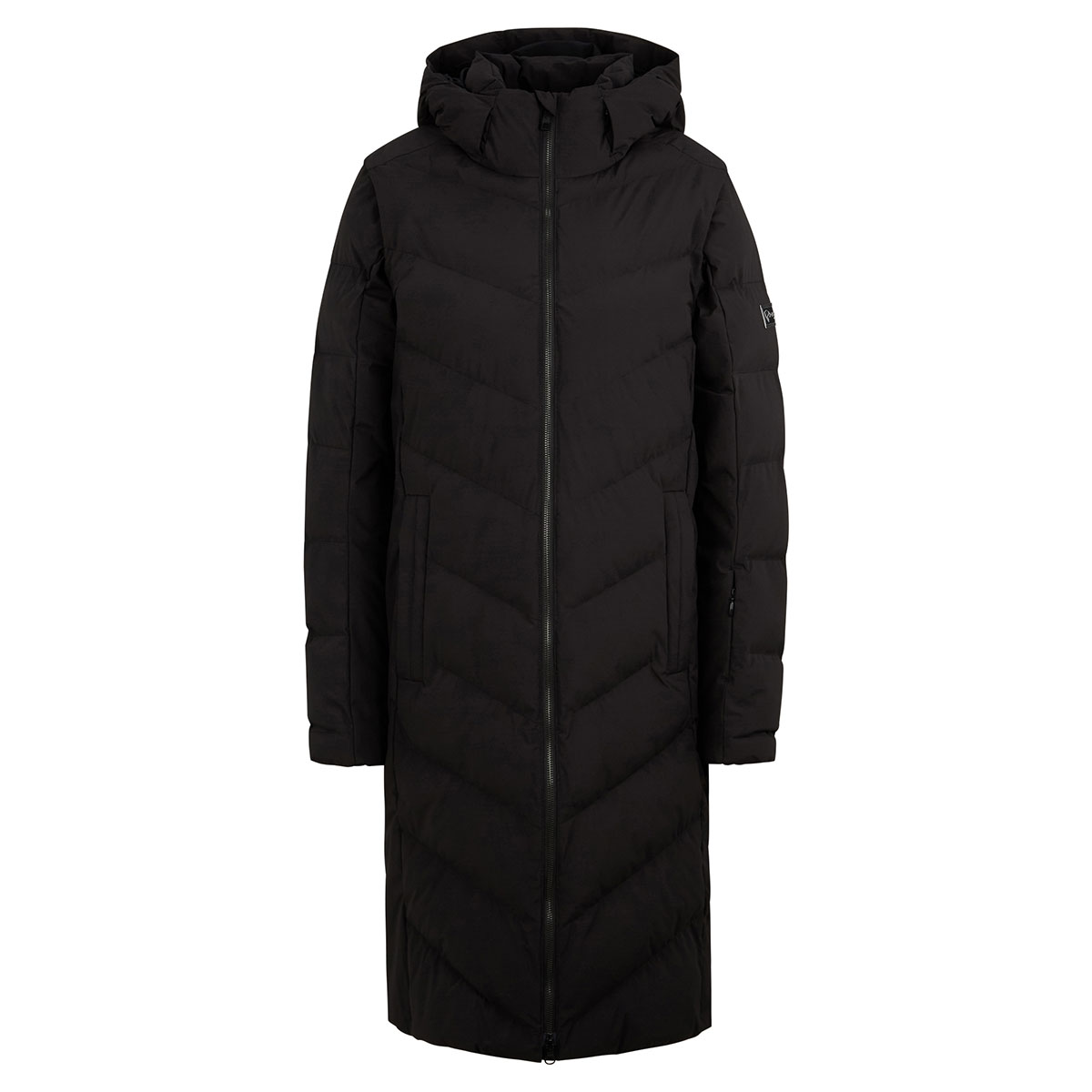 The long, fashionable ZIENER women's coat TELSE-Z LADY is characterized by the washable, environmentally friendly MicroDown. This ensures outstanding thermal performance. The breathable, waterproof and windproof ZIENER AQUASHIELD® membrane (water column 10,000mm/breathability 10,000g/m²/24h) provides a warm and dry climate. The waterproofing of the coat is PFAS-free. The outer fabric is bluesign® certified. The sleeves can be removed - so the coat can also be worn as a stylish, long vest in transitional seasons. The coat also has a short zipper at the waist for individual slit openings. Elasticated inner sleeve cuffs and an elasticated lining offer optimum freedom of movement. A ski pass pocket on the sleeve makes this coat the perfect companion for cold winter days on and off the slopes. An inside pocket for ski goggles and sunglasses as well as a pocket for smartphones provide space for the most important things.