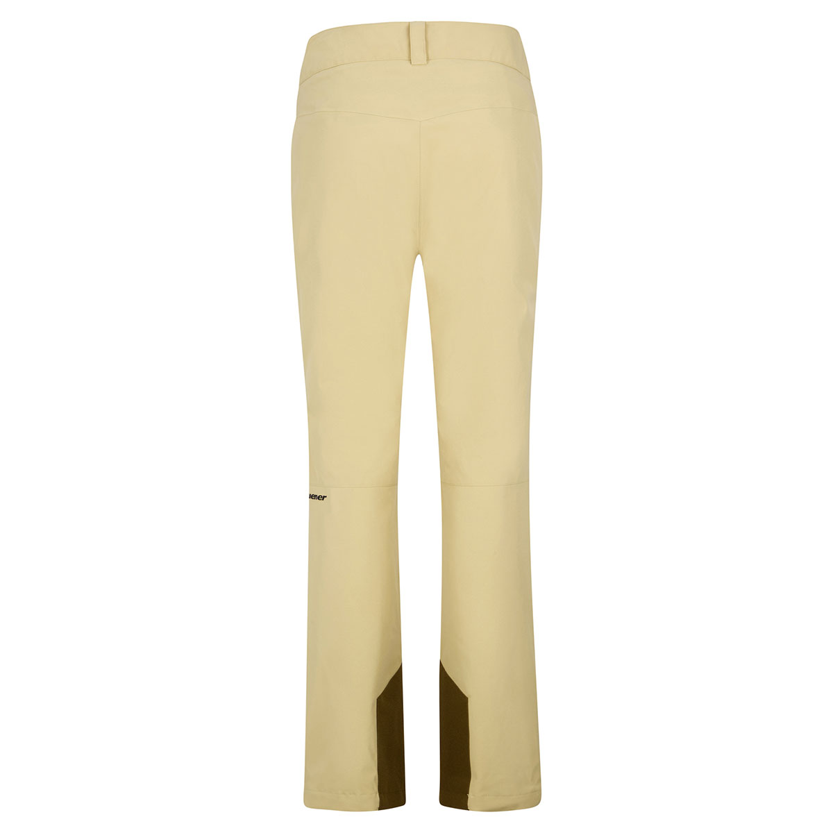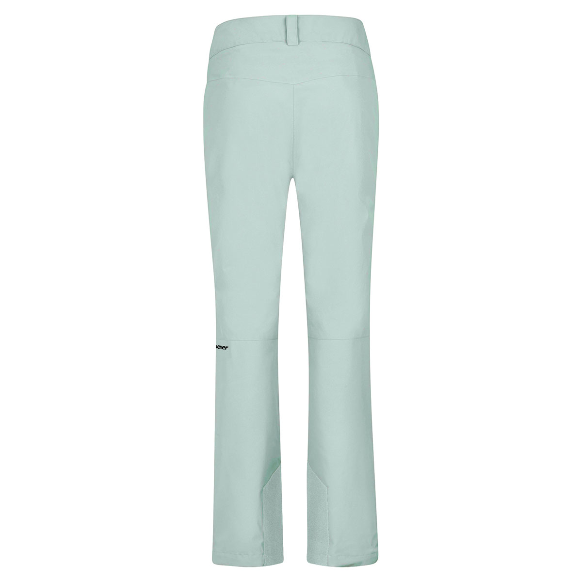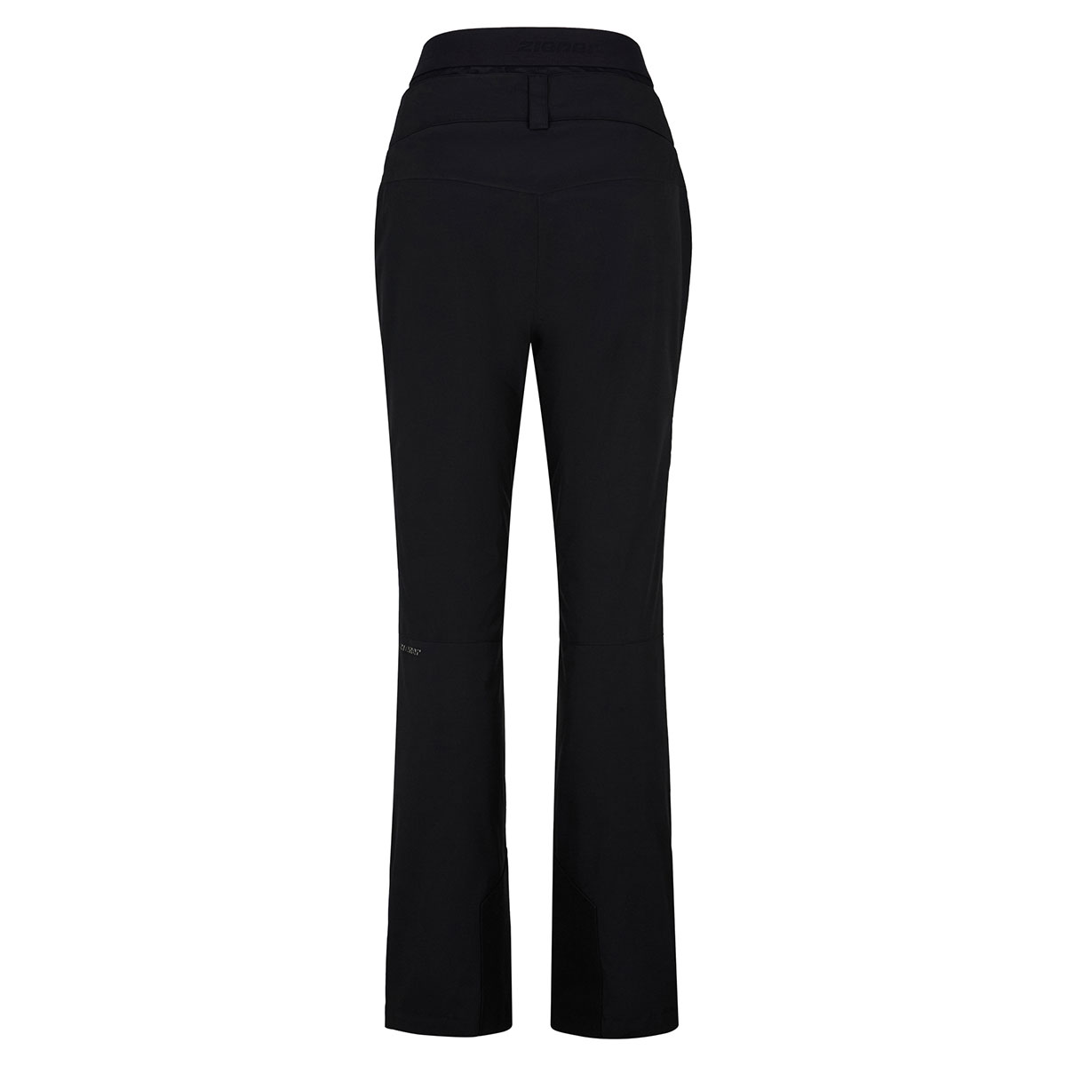The trendy, padded ZIENER ladies' ski pants TIPPA-Z LADY with a high, elasticated inner waistband and patch pockets are the perfect companion for long days of skiing. The freeride pants in a regular fit are characterized by maximum comfort. The breathable, windproof and waterproof ZIENER AQUASHIELD® membrane (water column 10,000mm/breathability 10,000g/m²/24h) ensures a warm and dry climate. In addition, a high-quality insulation mix (80g/m² padding) keeps you pleasantly warm. The waterproofing of the pants is PFAS-free. The outer fabric is bluesign® certified. Comfort and maximum freedom of movement are guaranteed by the highly elastic inner waistband and the elastic inner lining. The waterproof zipper in the side pocket on the left leg and the two slit pockets allow you to safely stow your most important items. The pants also feature reinforced edge guard and a snow skirt. The most important seams are taped.