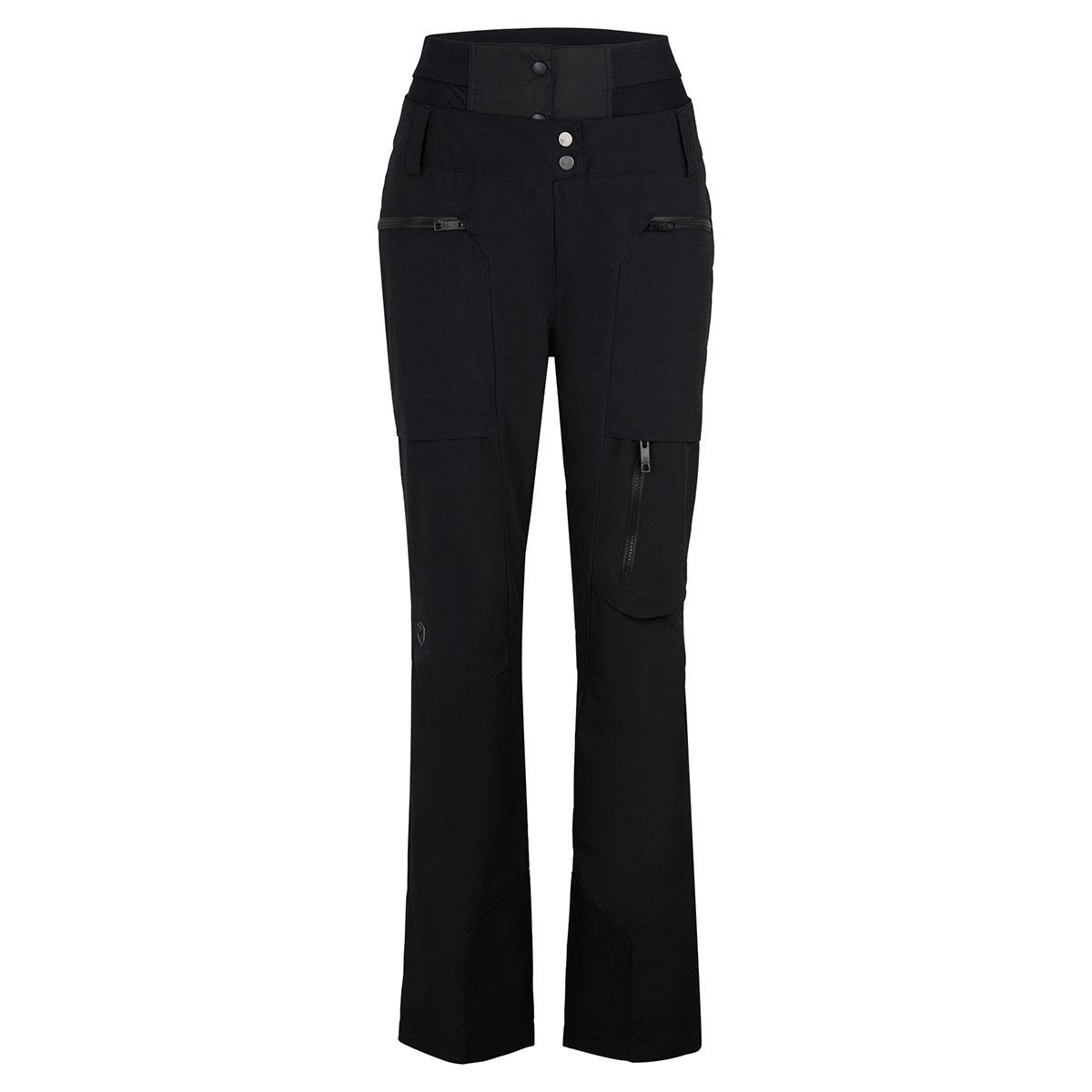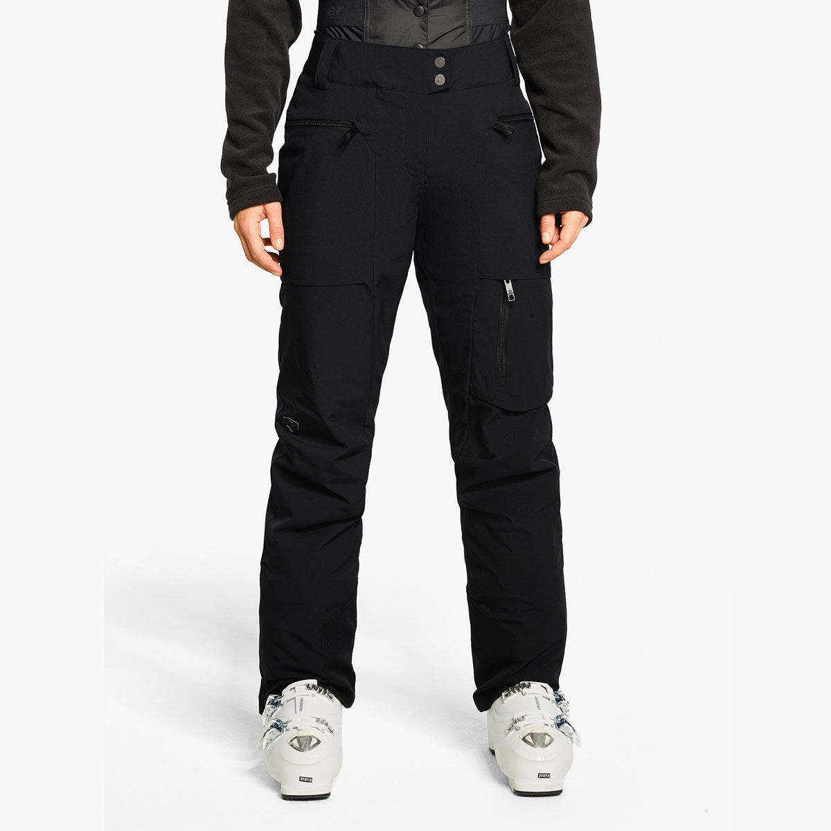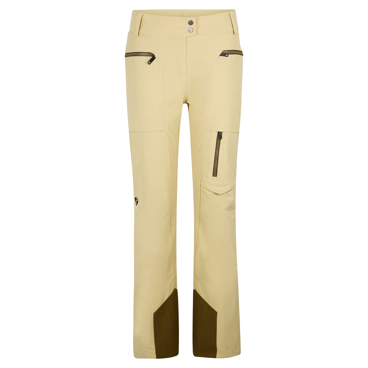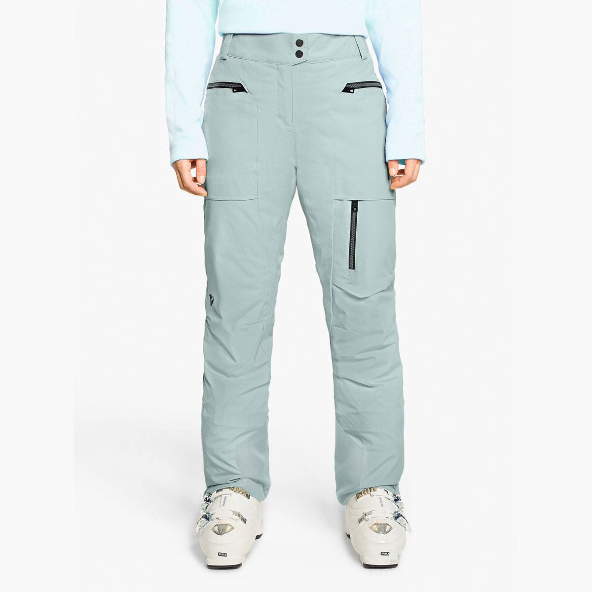 The trendy, padded ZIENER ladies' ski pants TIPPA-Z LADY with a high, elasticated inner waistband and patch pockets are the perfect companion for long days of skiing. The freeride pants in a regular fit are characterized by maximum comfort. The breathable, windproof and waterproof ZIENER AQUASHIELD® membrane (water column 10,000mm/breathability 10,000g/m²/24h) ensures a warm and dry climate. In addition, a high-quality insulation mix (80g/m² padding) keeps you pleasantly warm. The waterproofing of the pants is PFAS-free. The outer fabric is bluesign® certified. Comfort and maximum freedom of movement are guaranteed by the highly elastic inner waistband and the elastic inner lining. The waterproof zipper in the side pocket on the left leg and the two slit pockets allow you to safely stow your most important items. The pants also feature reinforced edge guard and a snow skirt. The most important seams are taped.