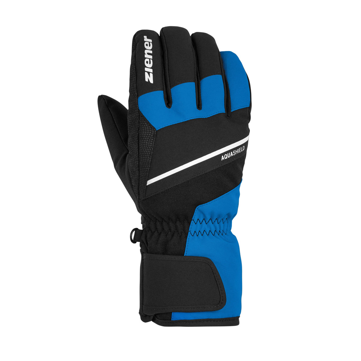 The modern, sporty ZIENER men's ski gloves GEZIM-Z AS® are equipped with the breathable, waterproof and windproof ZIENER AQUASHIELD® membrane, which provides a warm and dry climate in the glove. The non-slip palm offers optimum power transmission on the ski pole. The Velcro closure provides a perfect fit on the wrist. The soft glove scores for its optimum functionality and usability in winter sports. The outer fabric is bluesign® and Standard 100 by OEKO-TEX® certified.