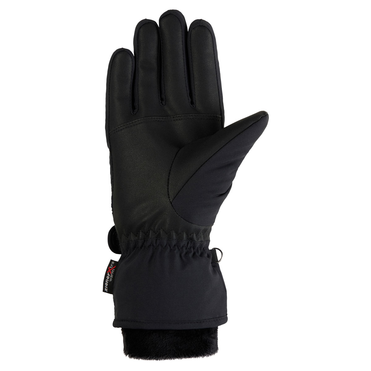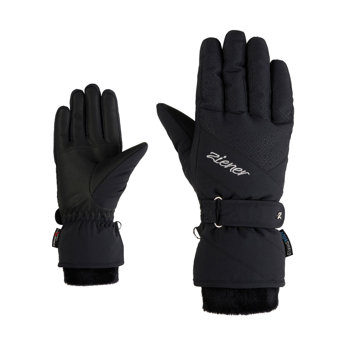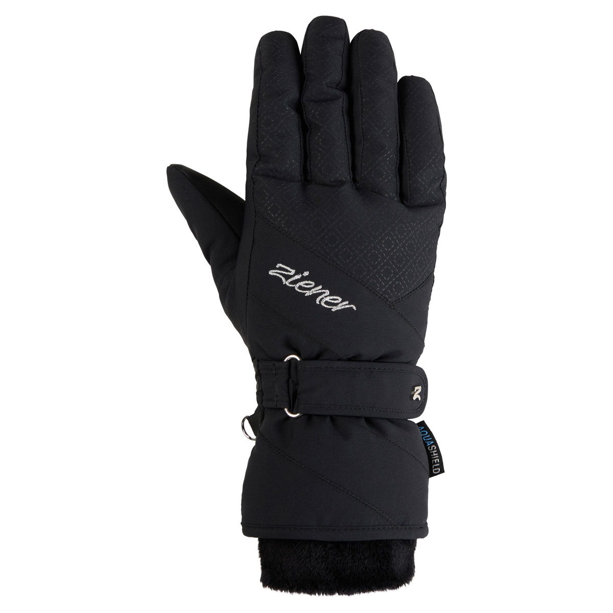 The extra warm ZIENER women's ski gloves KENDRI-Z AS® PR LADY are equipped with excellent warming PrimaLoft® Gold insulation for particularly cold days. The ZIENER AQUASHIELD® membrane with its waterproof and windproof properties ensures an optimum climate in the glove. The latch closure allows the gloves to be optimally adjusted. An additional inner cuff with plush lining on the wrist supports the feeling of warmth. The outer fabric is bluesign® certified.