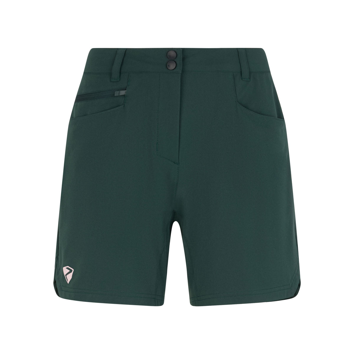 Die funktionelle, elastische ZIENER Damen Bike Shorts NEJA X-FUNCTION LADY ist dank des 4-Wege-Stretch-Materials flexibel und passt sich allen Bewegungen perfekt an. Der teilelastische Bund mit Gürtelschlaufen und elastischem Einsatz hinten garantiert optimalen Tragekomfort. Die Shorts verfügt über zwei Eingriffstaschen sowie eine Reißverschlusstasche. Der kurze Schnitt mit Innenbeinlänge von 19 cm sorgt für einen freizeittauglichen Look. Die eingehängte Innenhose besitzt ein X-FUNCTION Pad, das ein nahtfreies und reibungsloses Bikevergnügen mit hoher Bewegungsfreiheit auf allen Strecken garantiert.