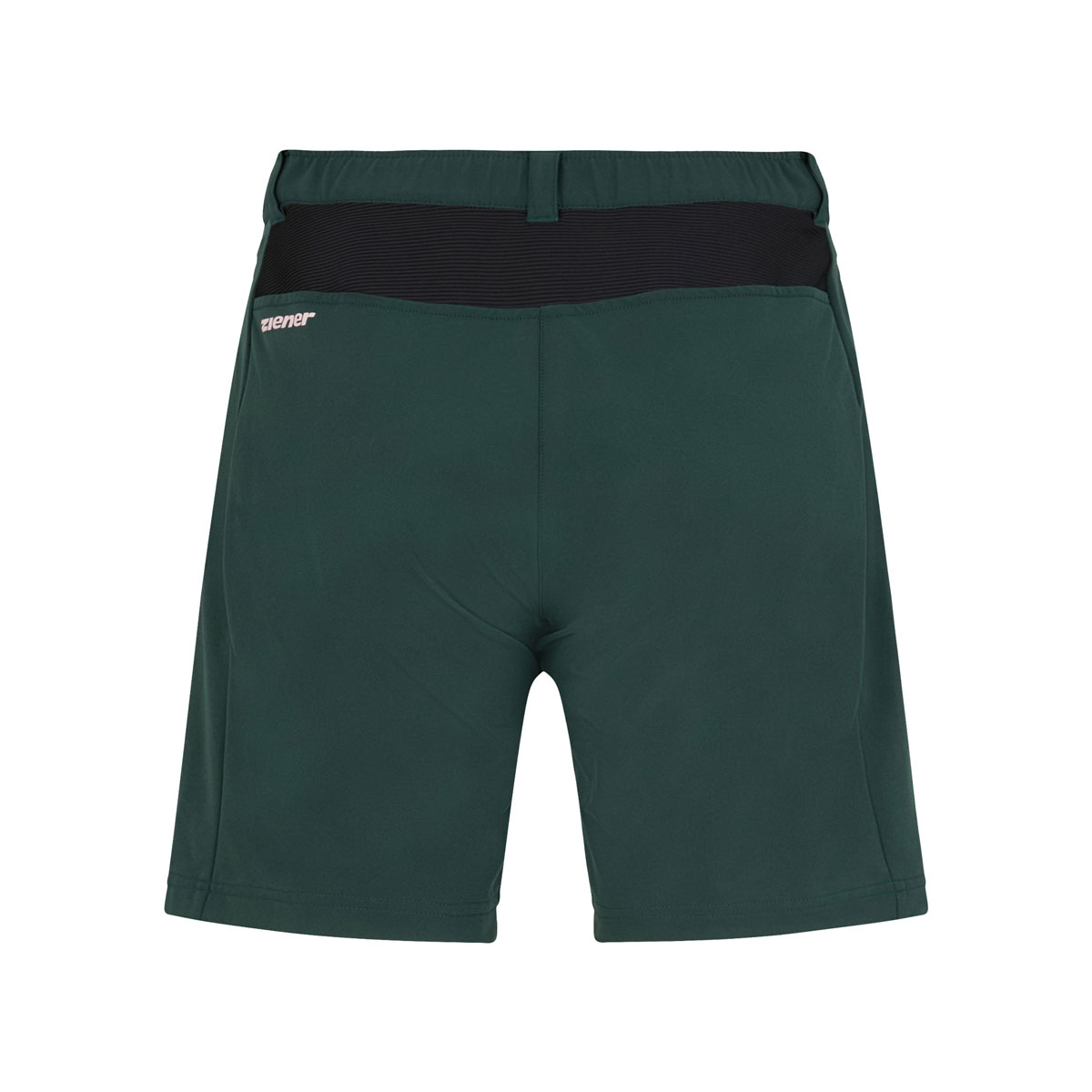 Die funktionelle, elastische ZIENER DAMEN Bike Shorts NAKOA X-FUNCTION LADY ist dank des 4-Wege-Stretch-Materials flexibel und passt sich allen Bewegungen perfekt an. Der teilelastische Bund mit Gürtelschlaufen und elastischem Einsatz hinten garantiert optimalen Tragekomfort. Die Shorts verfügt über zwei Eingriffstaschen mit Reißverschluss – somit ist genügend Stauraum vorhanden. Die Innenbeinlänge beträgt 23 cm. Die eingehängte Innenhose besitzt ein X-FUNCTION Pad, das ein nahtfreies und reibungsloses Bikevergnügen mit hoher Bewegungsfreiheit auf allen Strecken garantiert.