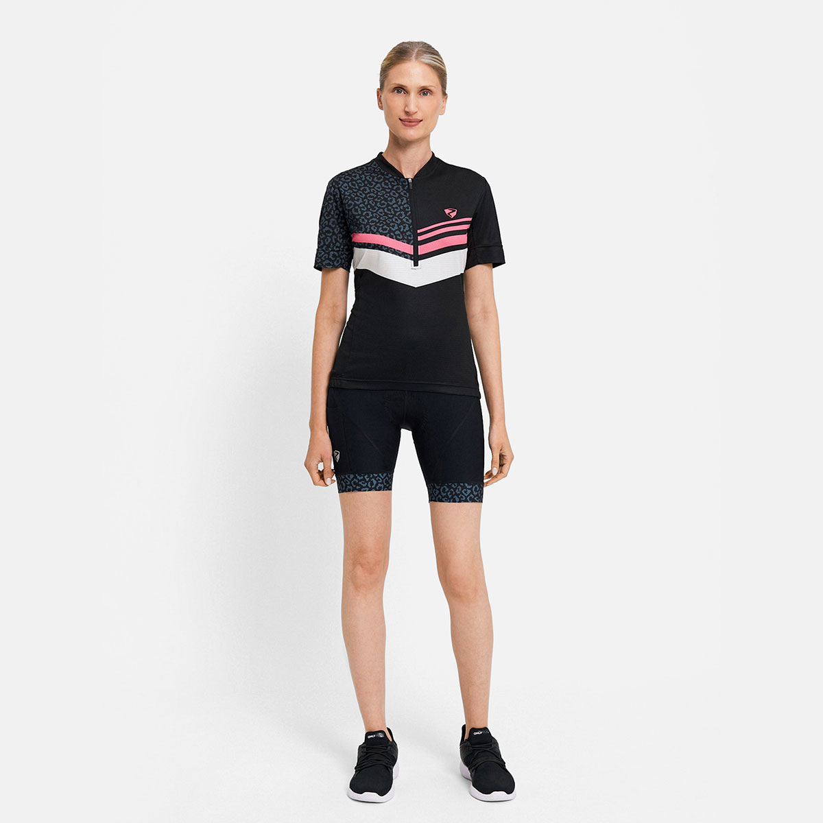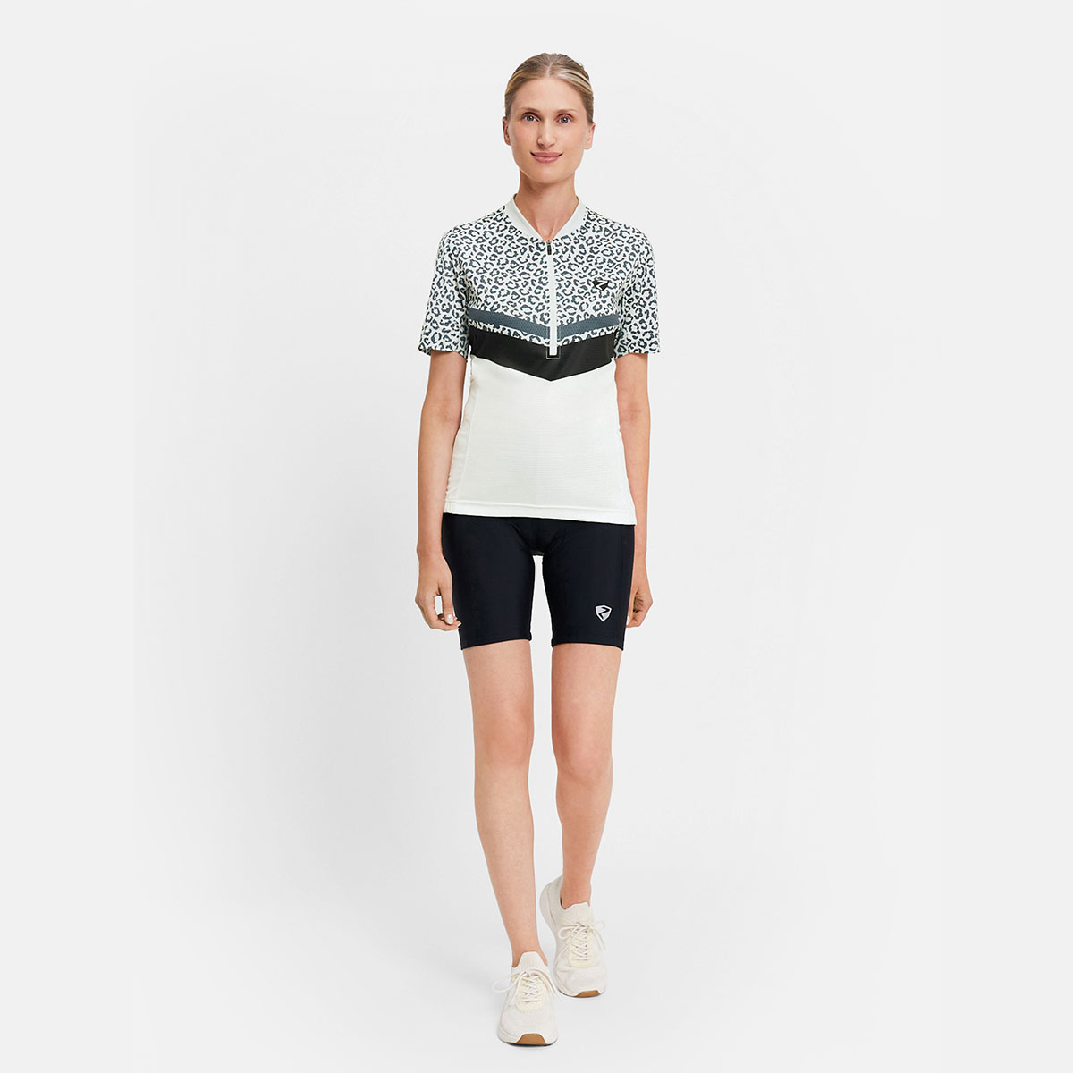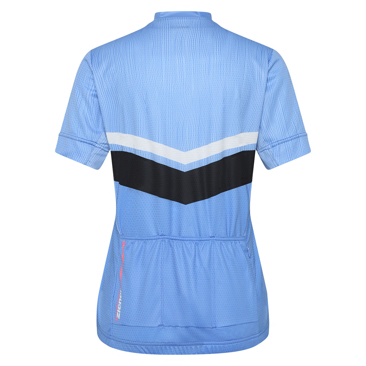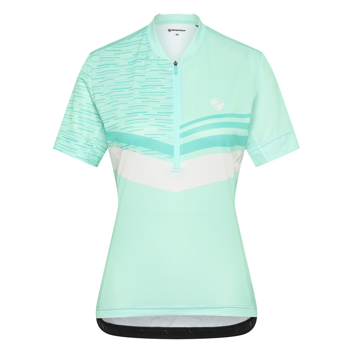 Das funktionelle ZIENER Damen Fahrradtrikot NALADIA-Z LADY mit halbem Front-Reißverschluss besitzt Mesh-Einsätze an den Seiten und unter den Ärmeln für optimale Belüftung. Die Silikonbeschichtung am Saum sorgt für perfekten Halt und der schnelltrocknende, elastische Stoff mit zusätzlich elastischen Nähten bieten höchste Performance. Die 3er Rückentasche sowie eine Reißverschlusstasche bieten genügend Platz für persönliche Utensilien. Der modische Allover-Sublimationsdruck sorgt für Style auf dem Bike.