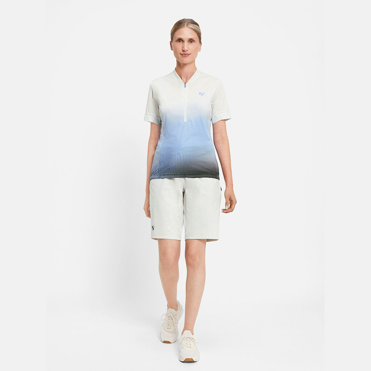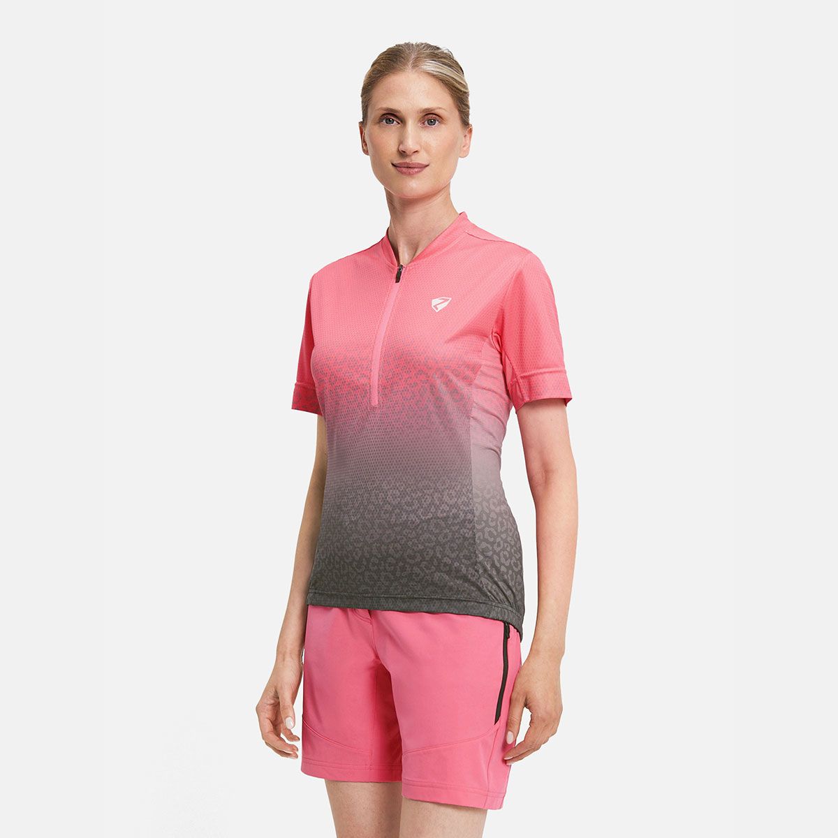 Das funktionelle ZIENER Damen Fahrradtrikot NELENIA-Z LADY mit halbem Front-Reißverschluss besitzt Mesh-Einsätze an den Seiten und unter den Ärmeln für optimale Belüftung. Die Silikonbeschichtung am Saum sorgt für perfekten Halt und der schnelltrocknende, elastische Stoff mit zusätzlich elastischen Nähten bieten höchste Performance. Die 3er Rückentasche bietet genügend Platz für persönliche Utensilien. Der modische Allover-Sublimationsdruck sorgt für Style auf dem Bike.