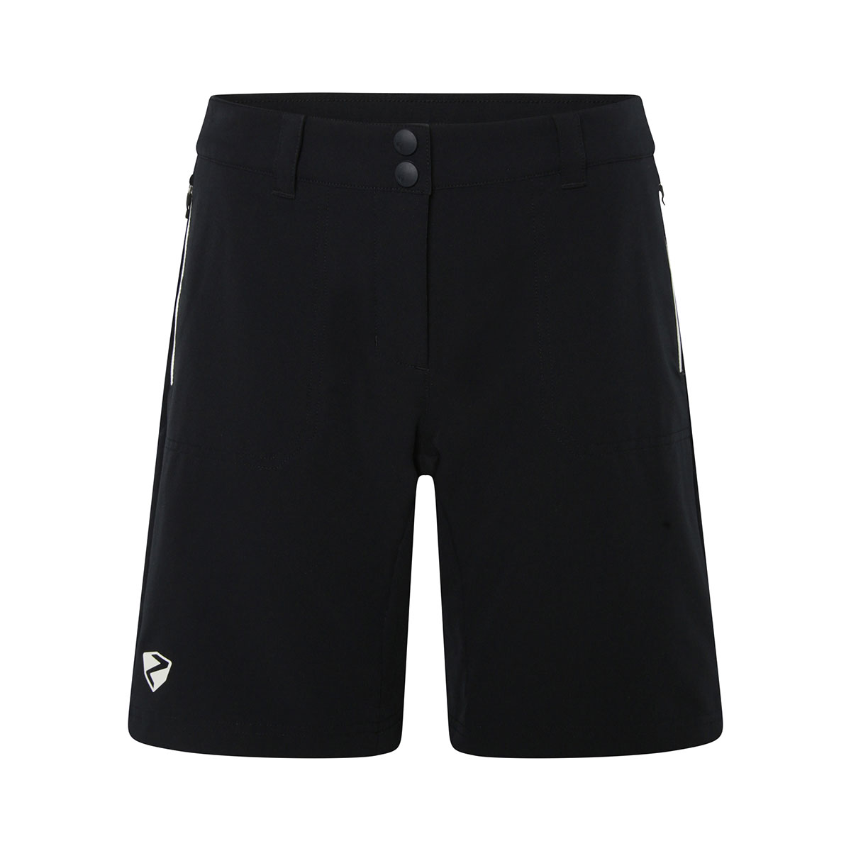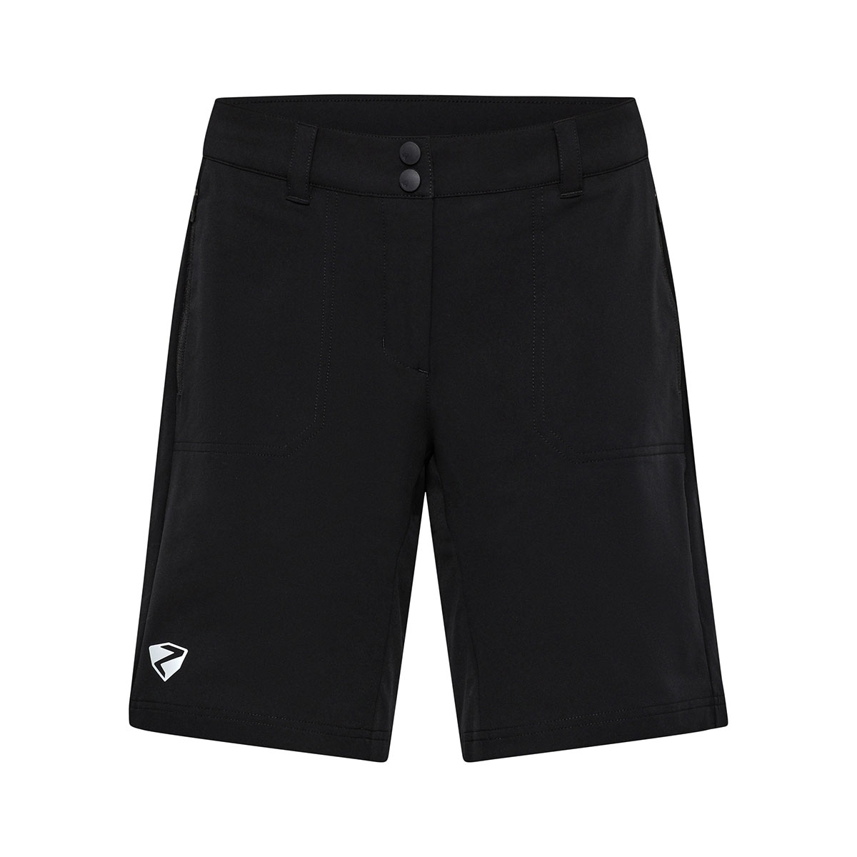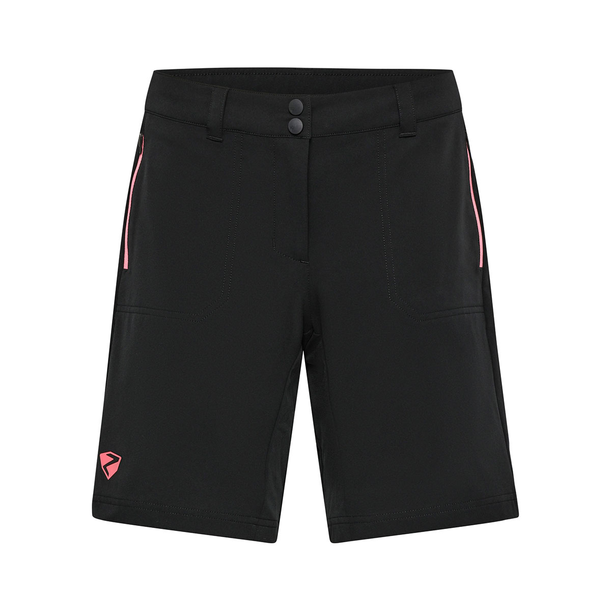 Die funktionelle, elastische ZIENER DAMEN Bike Shorts NAKOA-Z X-FUNCTION LADY ist dank des 4-Wege-Stretch-Materials flexibel und passt sich allen Bewegungen perfekt an. Der teilelastische Bund mit Gürtelschlaufen und elastischem Einsatz hinten garantiert optimalen Tragekomfort. Die Shorts verfügt über zwei Eingriffstaschen mit Reißverschluss – somit ist genügend Stauraum vorhanden. Die Innenbeinlänge beträgt 23 cm. Die eingehängte Innenhose besitzt ein X-FUNCTION Pad, das ein nahtfreies und reibungsloses Bikevergnügen mit hoher Bewegungsfreiheit auf allen Strecken garantiert.