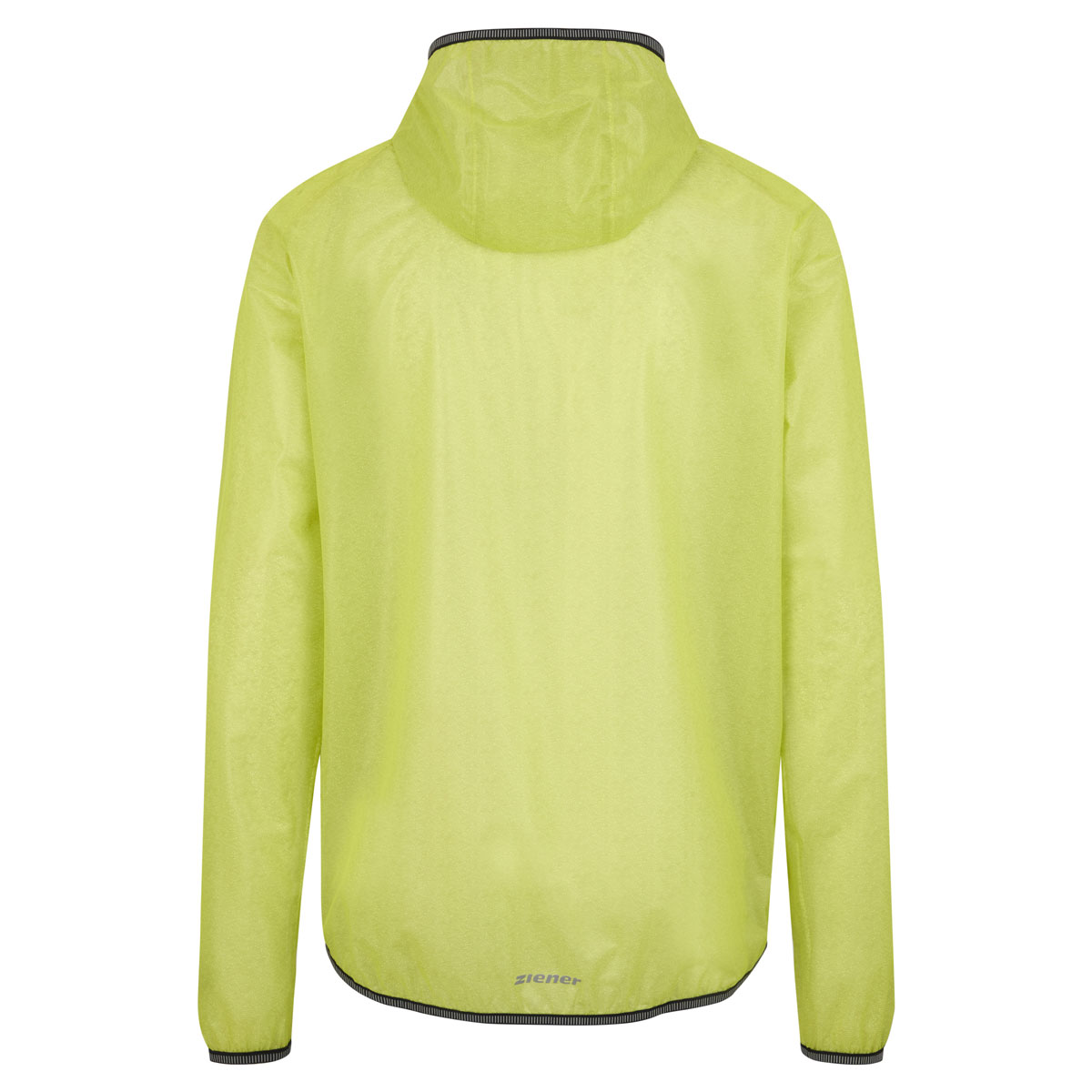 Die ZIENER Herren Regenjacke NATIUS MAN ist der optimale Begleiter auf sämtlichen Radtouren, da sie sich leicht in dem mitgelieferten Beutel verstauen lässt – für ein kleines und leichtes Packmaß! Die wasserdichte, winddichte und atmungsaktive AQUASHIELD® Membran sorgt bei Wind und Wetter für ein angenehmes, trockenes Klima (Wassersäule 10.000mm/Atmungsaktivität 10.000g/m²/24h). Zudem sind die Nähte vertapet. Dank der Kapuze ist man jederzeit vor Regen geschützt. Der elastische Abschluss am Saum, Ärmel und der Kapuze sorgt für den perfekten Sitz. Die Jacke ist mit dekorativen reflektierenden Designelementen versehen. Das Produkt ist mit einer PFAS freien Imprägnierung ausgerüstet.