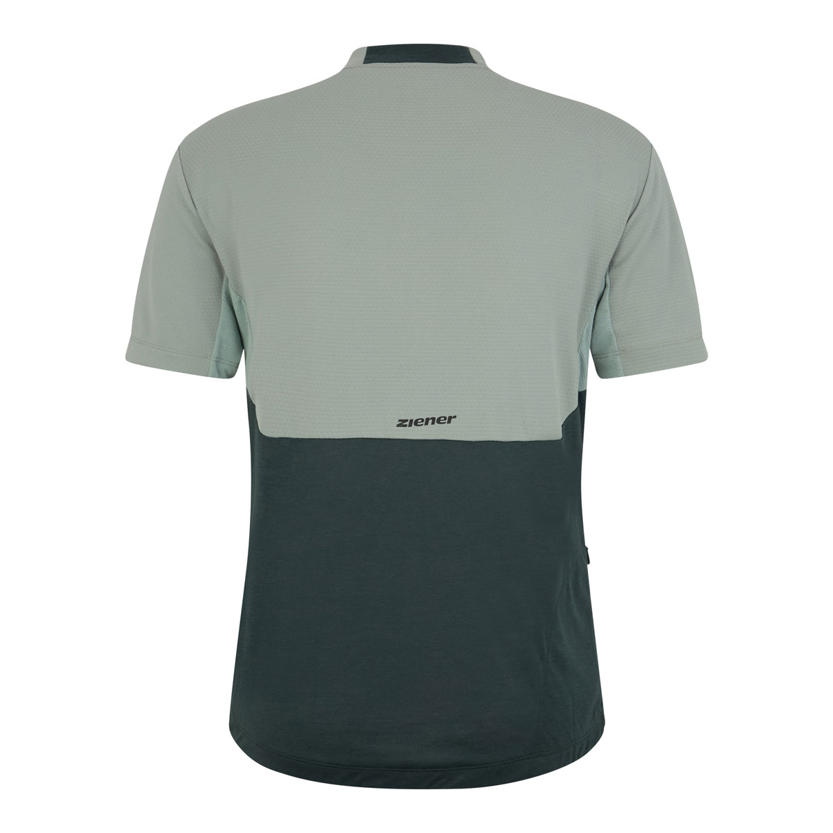 Das funktionelle ZIENER Herren Fahrradtrikot NARIUS MAN mit halbem Front-Reißverschluss garantiert dank des schnelltrocknenden drirelease® Materials optimalen Tragekomfort und höchste Performance. Der Stoff zeichnet sich durch seine angenehme, baumwollartige Haptik aus. Durch eine hochleistungsfähige Zusammensetzung der Faser trocknet es allerdings viermal schneller als herkömmliche Baumwolle. Zudem besitzt das Trikot Mesh-Einsätze unter den Ärmeln für optimale Belüftung. In der nahtfeinen Reißverschlusstasche lassen sich die wichtigsten Dinge verstauen.