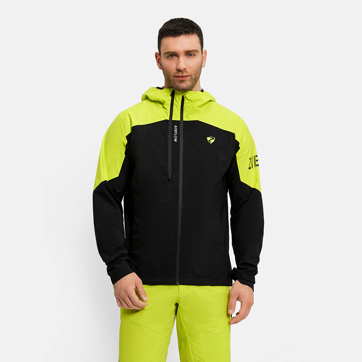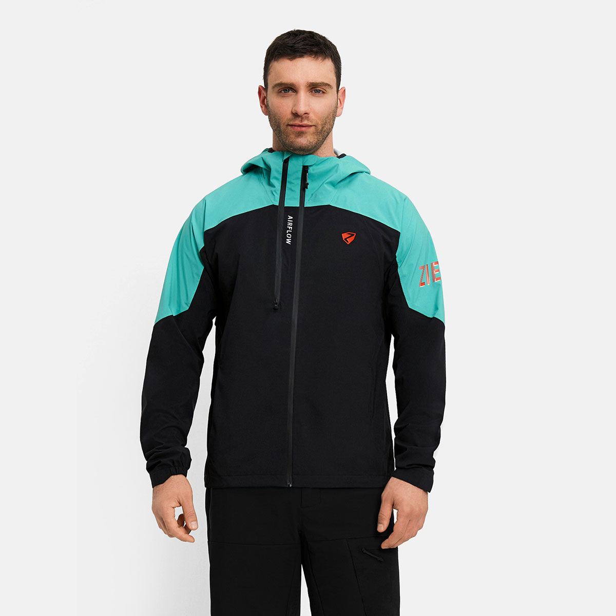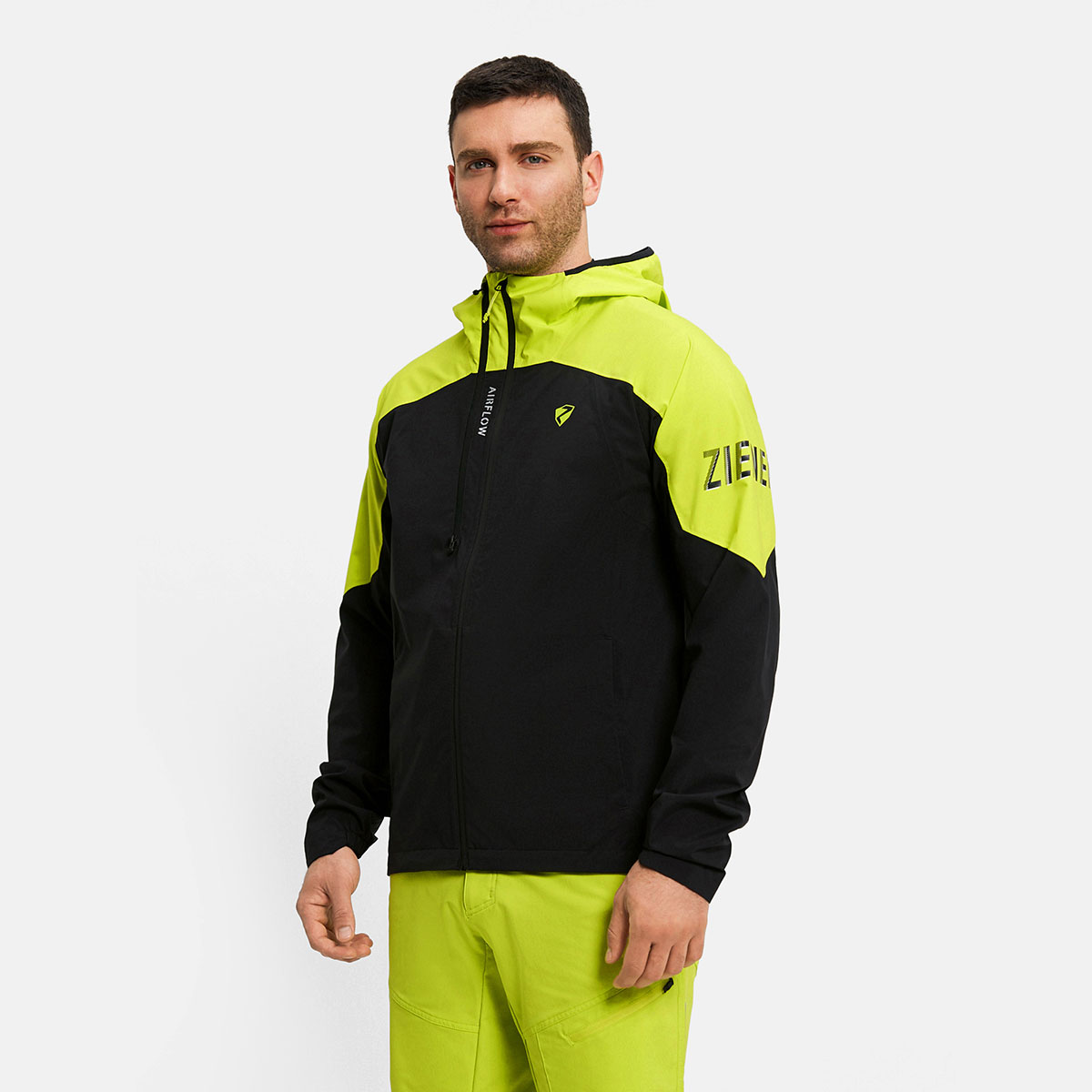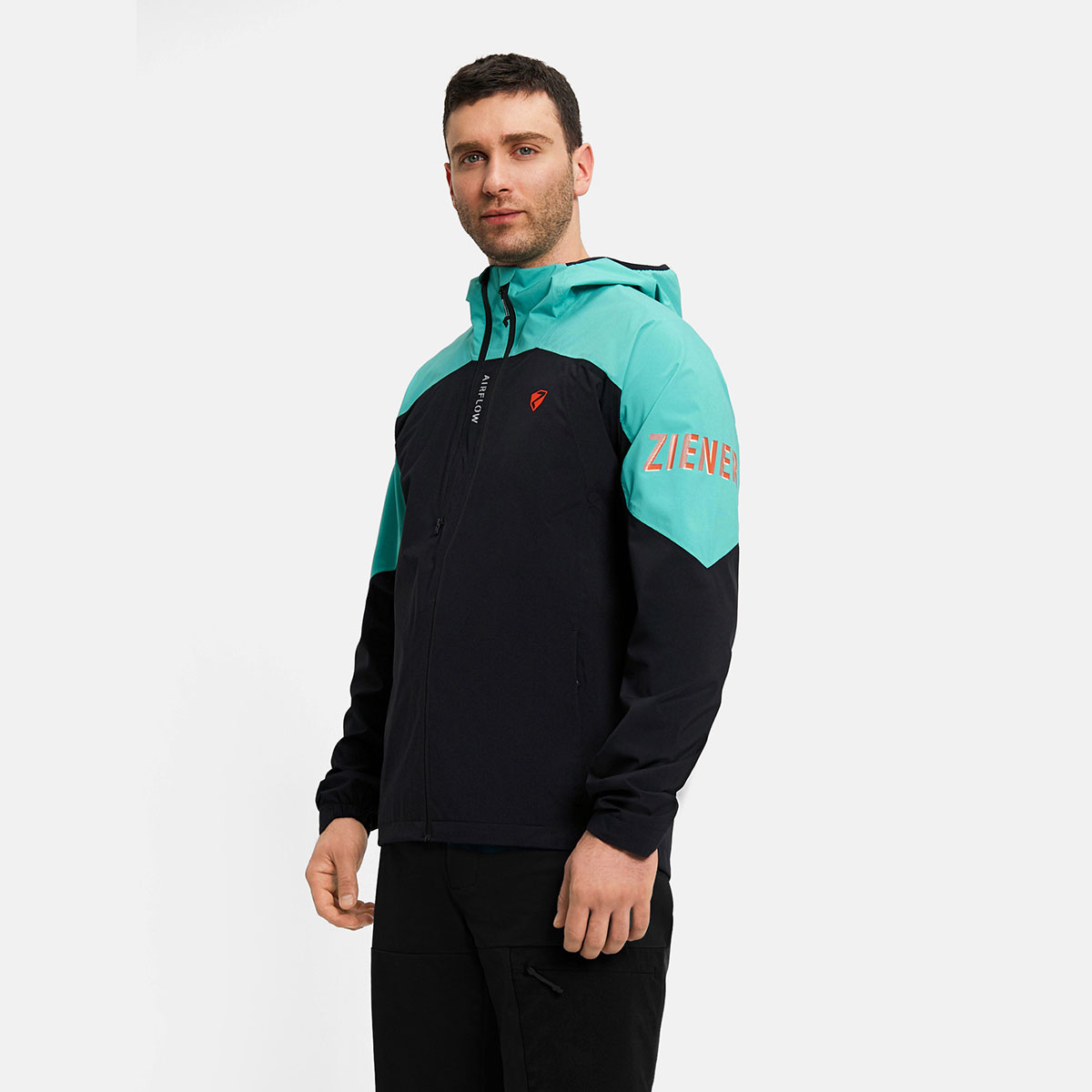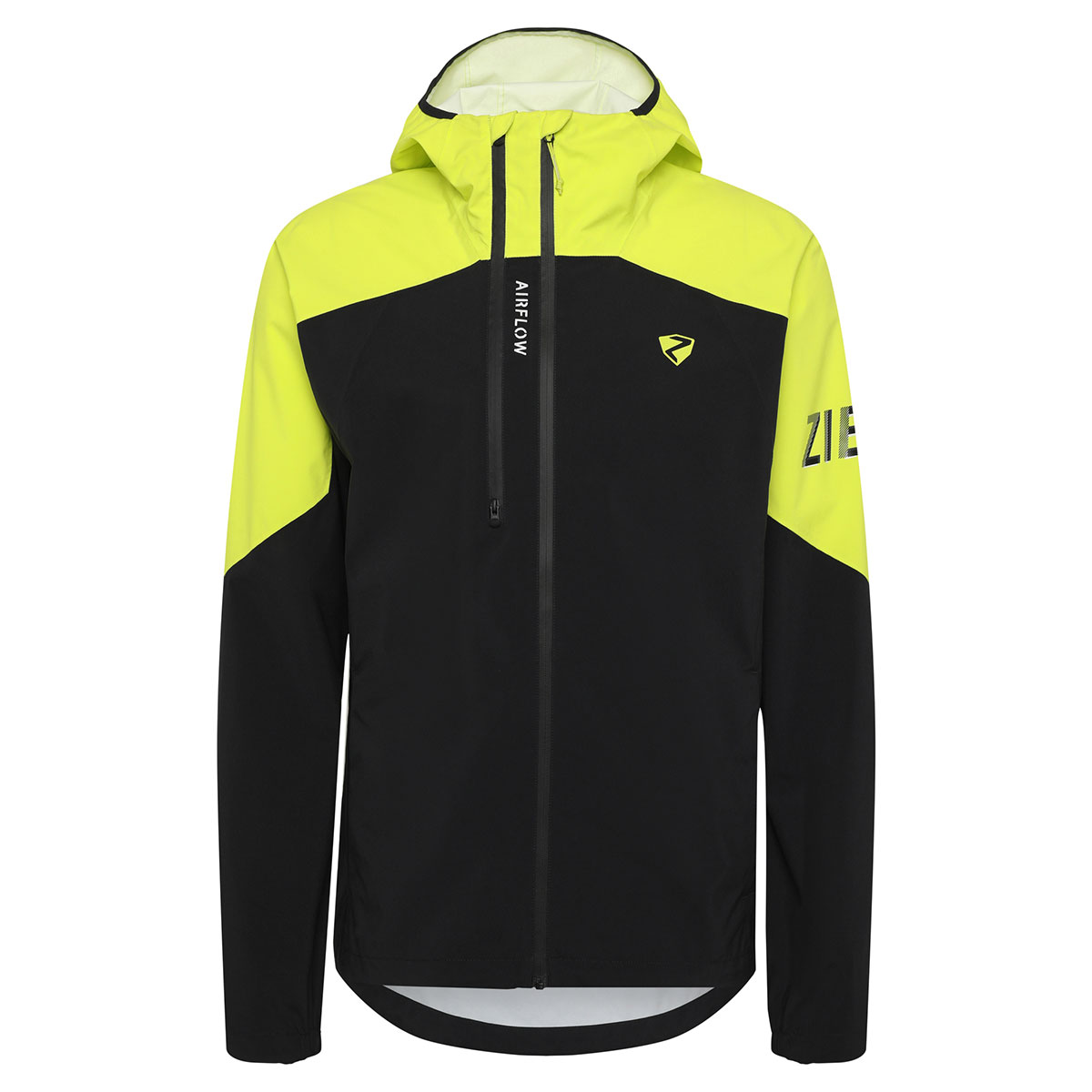 Die funktionelle ZIENER Herren Regenjacke NEMIL-Z MAN ist der optimale Begleiter auf sämtlichen Radtouren: Die wasserdichte, winddichte und atmungsaktive AQUASHIELD® Membran sorgt bei Wind und Wetter für ein angenehmes, trockenes Klima (Wassersäule 10.000mm/Atmungsaktivität 10.000g/m²/24h). Das elastische Material der Jacke garantiert optimale Bewegungsfreiheit, zudem sind die Nähte vertapt und die Front-Reißverschlüsse wasserdicht. Dank der festen Kapuze mit hohem Kragen ist man jederzeit vor Regen geschützt. Falls man mal ins Schwitzen kommt, lässt sich der ZIENER AIRFLOW Reißverschluss, der mit Mesh hinterlegt ist, auf der Vorderseite öffnen. Ein Belüftungsschlitz hinten sorgt für zusätzliche Ventilation. Der teilelastische Abschluss an Ärmel und der Kapuze sowie die Weitenregulierung an Saum und Kapuze sorgen für den perfekten Sitz. Zwei Seitentaschen mit Reißverschluss sorgen für genügend Stauraum für die wichtigsten Dinge. Die Jacke ist mit dekorativen reflektierenden Designelementen versehen. Die Imprägnierung der Jacke ist PFAS-frei.