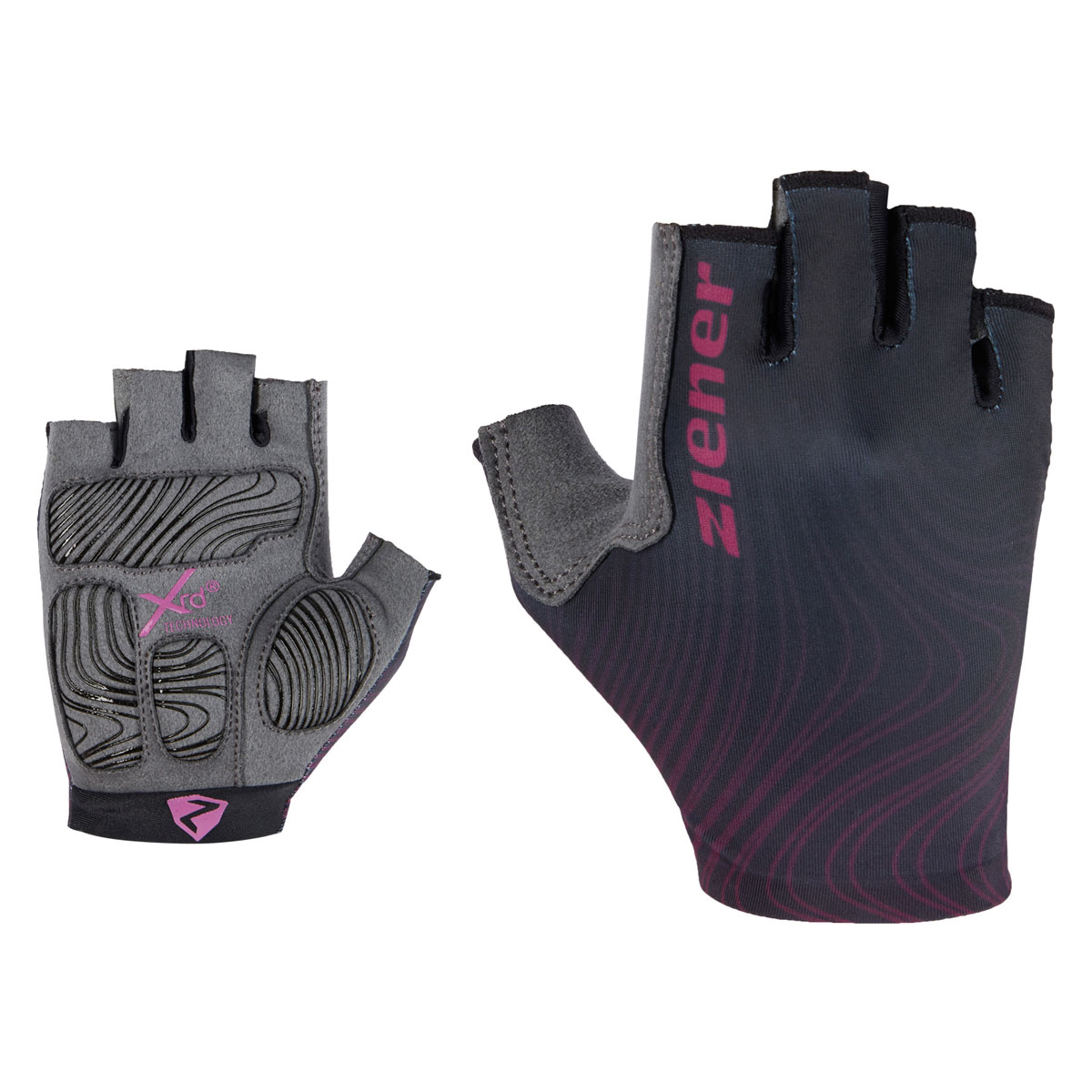 Der sportive, leichte ZIENER Fahrradhandschuh CLEM ohne Klettverschluss punktet durch seine komfortable Innenhand bei gleichzeitig hoher Taktilität und exzelentem Griffgefühl – perfekt für lange, sportliche Touren. Ein spezielles GEL FOAM Polster auf der Innenhand bietet ein komfortables, taktiles Lenkergefühl. Durch die Kombination aus dem strapazierfähigen, schnelltrocknenden und atmungsaktiven AX™ SUEDE Material und einer rutschfesten Oberfläche sorgt dieser Handschuh für besten Grip und ein hervorragendes Lenkergefühl. Die gezielt eingesetzte XRD® Polsterung reduziert den Druck auf die Nerven und passt sich der Hand individuell an. Das speziell zugeschnittene Daumenpatch beugt zudem Druckstellen auf der Haut vor. Integrierte Fingerschlingen garantieren ein einfaches und schnelles Ausziehen. Mit seinem coolen Design lässt sich der Bike Handschuh optimal zur ZIENER BIKEWEAR kombinieren.