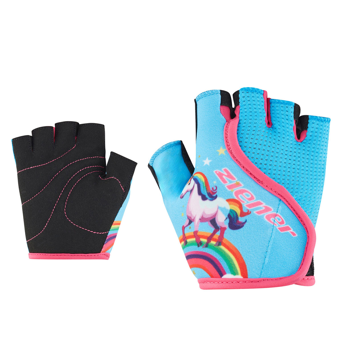 Der ZIENER Kinder Fahrradhandschuh CLAUDI-Z JUNIOR besitzt ein großer Klettverschluss auf der Oberseite für einfaches Anziehen. Die integrierten Fingerschlingen sorgen für einfaches und schnelles Ausziehen der Handschuhe möglich ist. Durch das strapazierfähige, lederähnliche AMARA Innenhandmaterial mit atmungsaktiven Eigenschaften kommen die Hände auch bei längeren Touren nicht ins Schwitzen. Besonderen Komfort bietet die vollflächig gepolsterte Innenhand. Das bunte Design spricht die Kleinsten an – für viel Spaß auf dem Fahrrad!