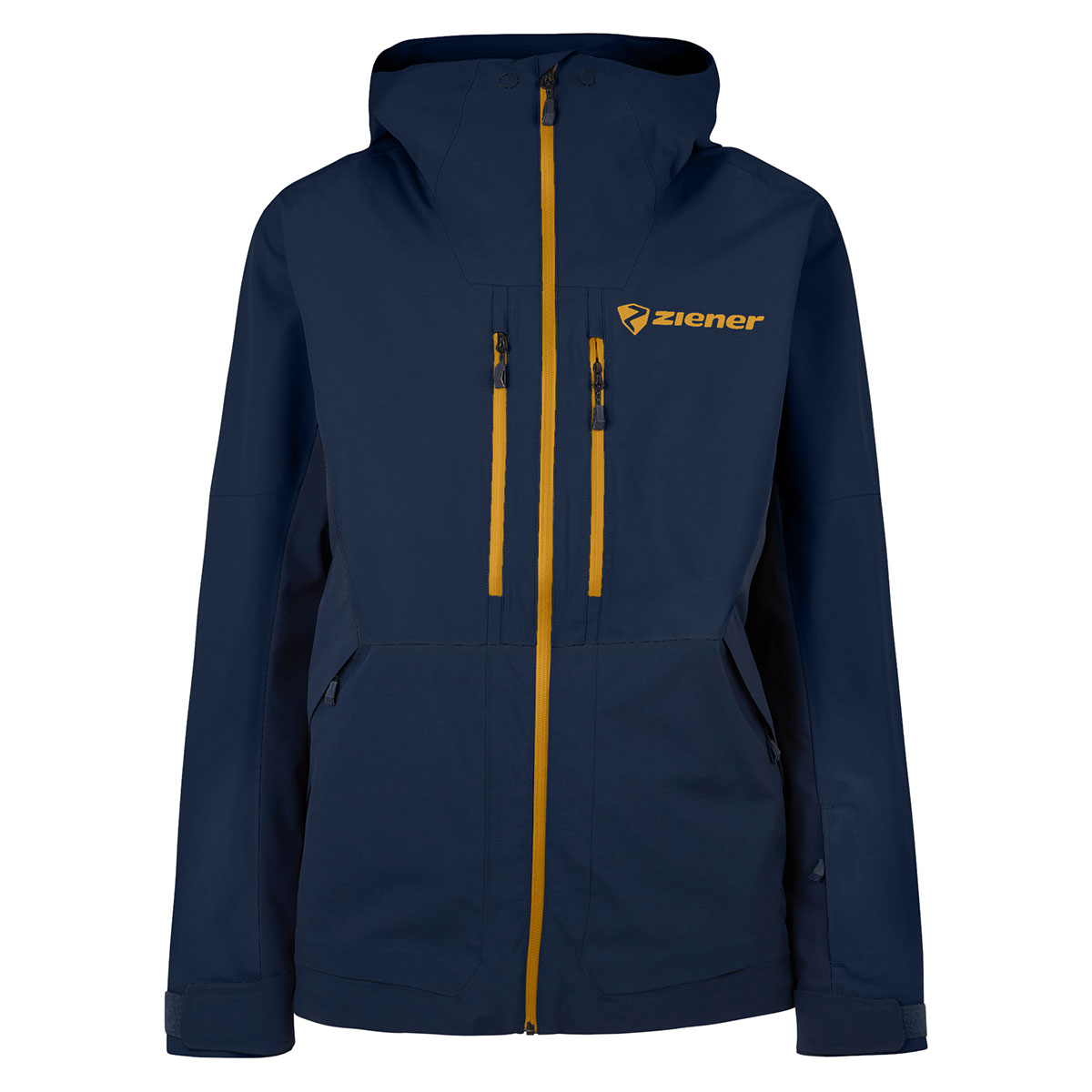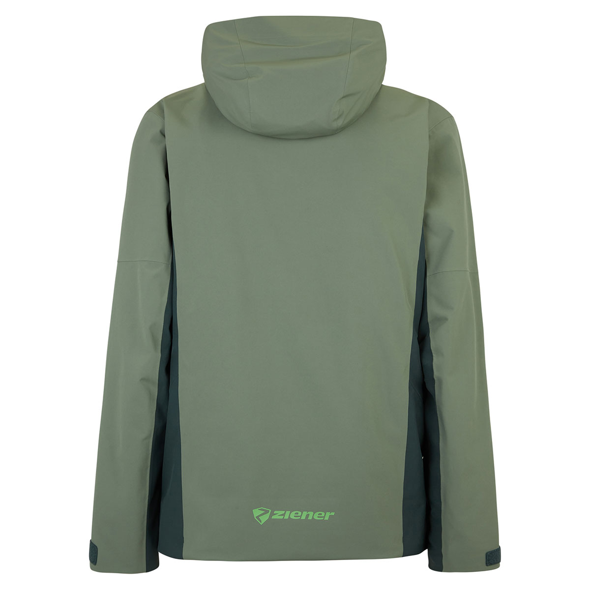Die hochfunktionelle ZIENER TEAMWEAR Jacke TAMUL-Z MAN besticht durch ihr wärmendes Innenfuttet mit Wolle und sorgt so für eine optimale Feuchtigkeits- und Wärmeregulierung. Danke ZIENER AQUASHIELD® Membran ist sie atmungsaktiv, wasser- und winddicht (Wassersäule 20.000mm/Atmungsaktivität 20.000g/m²/24h). Die extra langen Belüftungsmöglichkeiten unter den Armen sorgen zusätzlich für eine angenehme Ventilation Das recycelte, elastische 2-Lagen Material ist mit einer PFAS-freien Imprägnierung versehen. Weitere funktionelle Features sind der verstellbare Schneefang, der hochwertige Softklettverschluss am Handgelenkt sowie Saumregulierung mit Gummizug. Verstaumöglichkeiten bieten vier Taschen mit wasserdichten Reißverschlüsse. Die zwei Brusttaschen bieten jeweils ein Brillenputztuch sowie eine Handytasche. die Innentaschen sind großzügig gestaltet und bieten genügend Platz für Sonnen- oder Skibrille sowie eine Reißverschlusstasche für weitere elektronische Geräte. Alle Nähte sind verklebt und absolut wasserdicht.