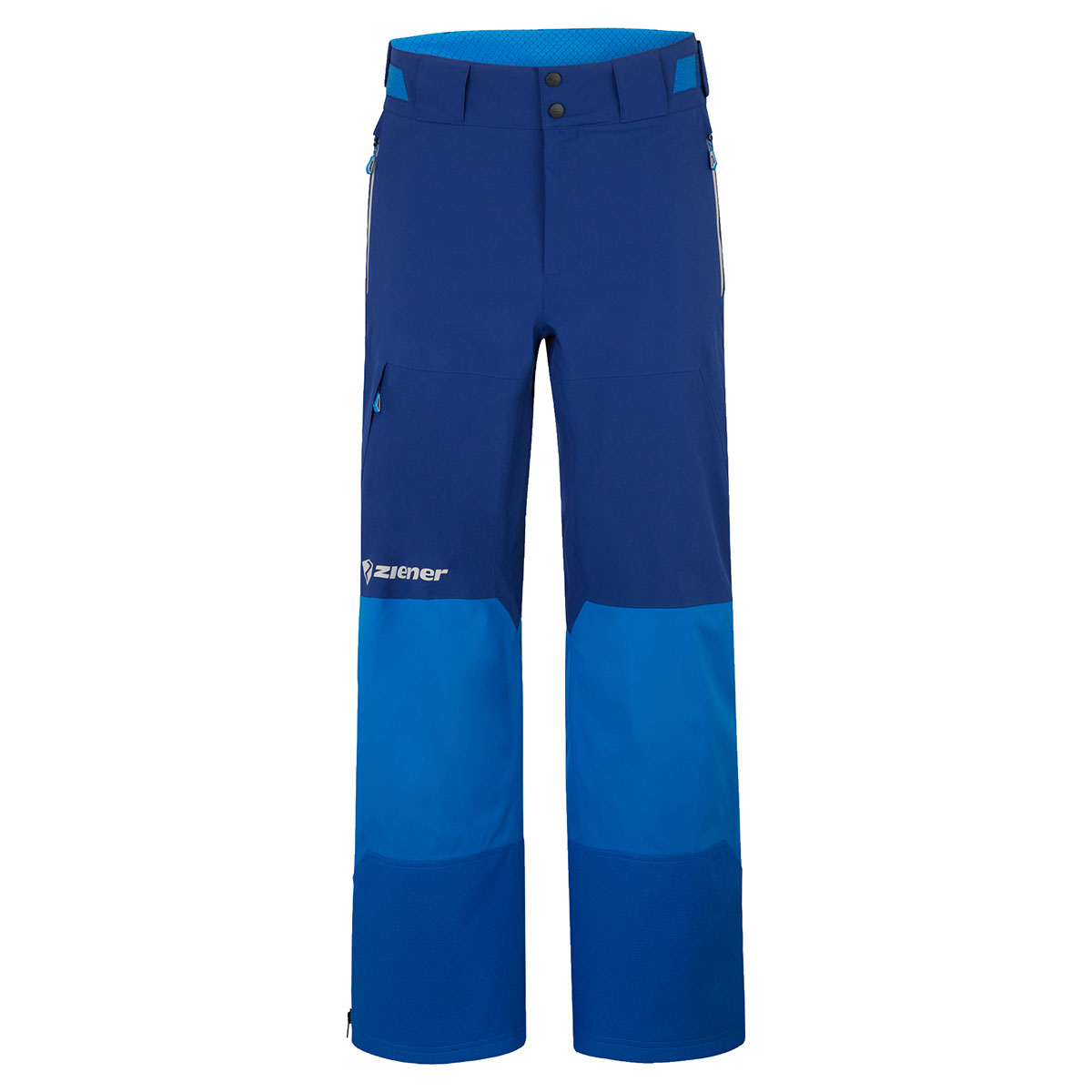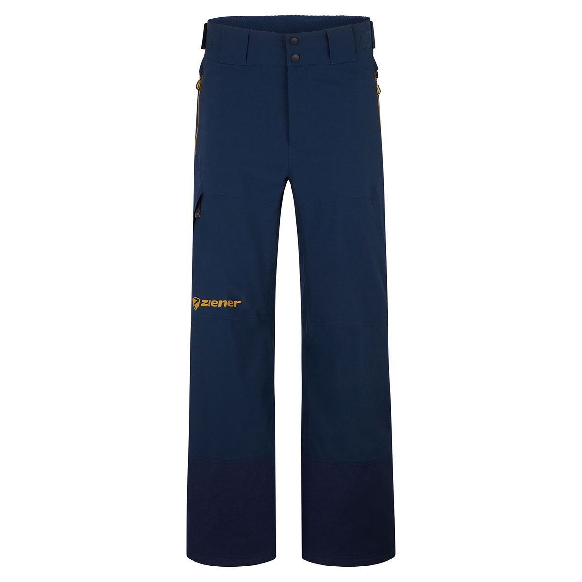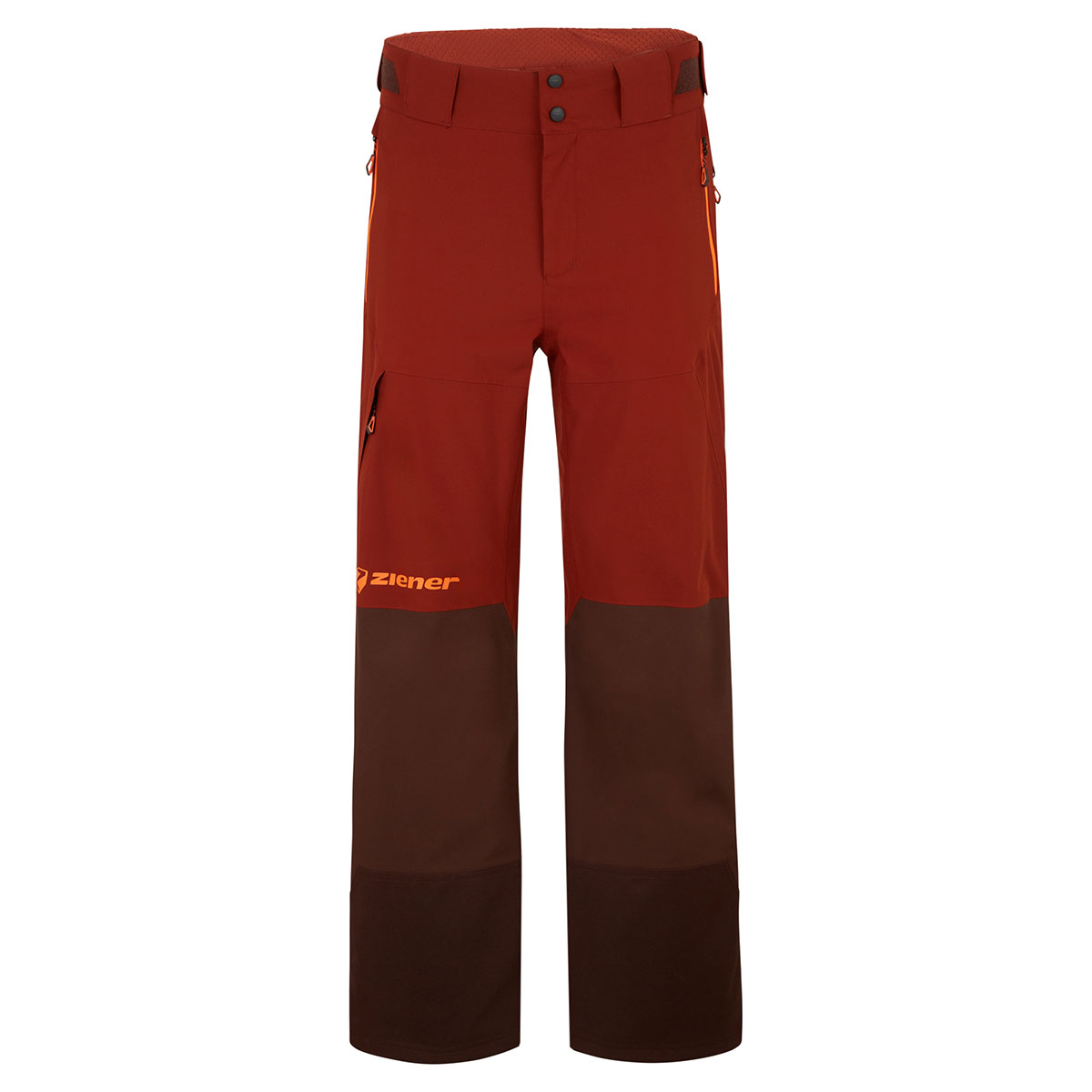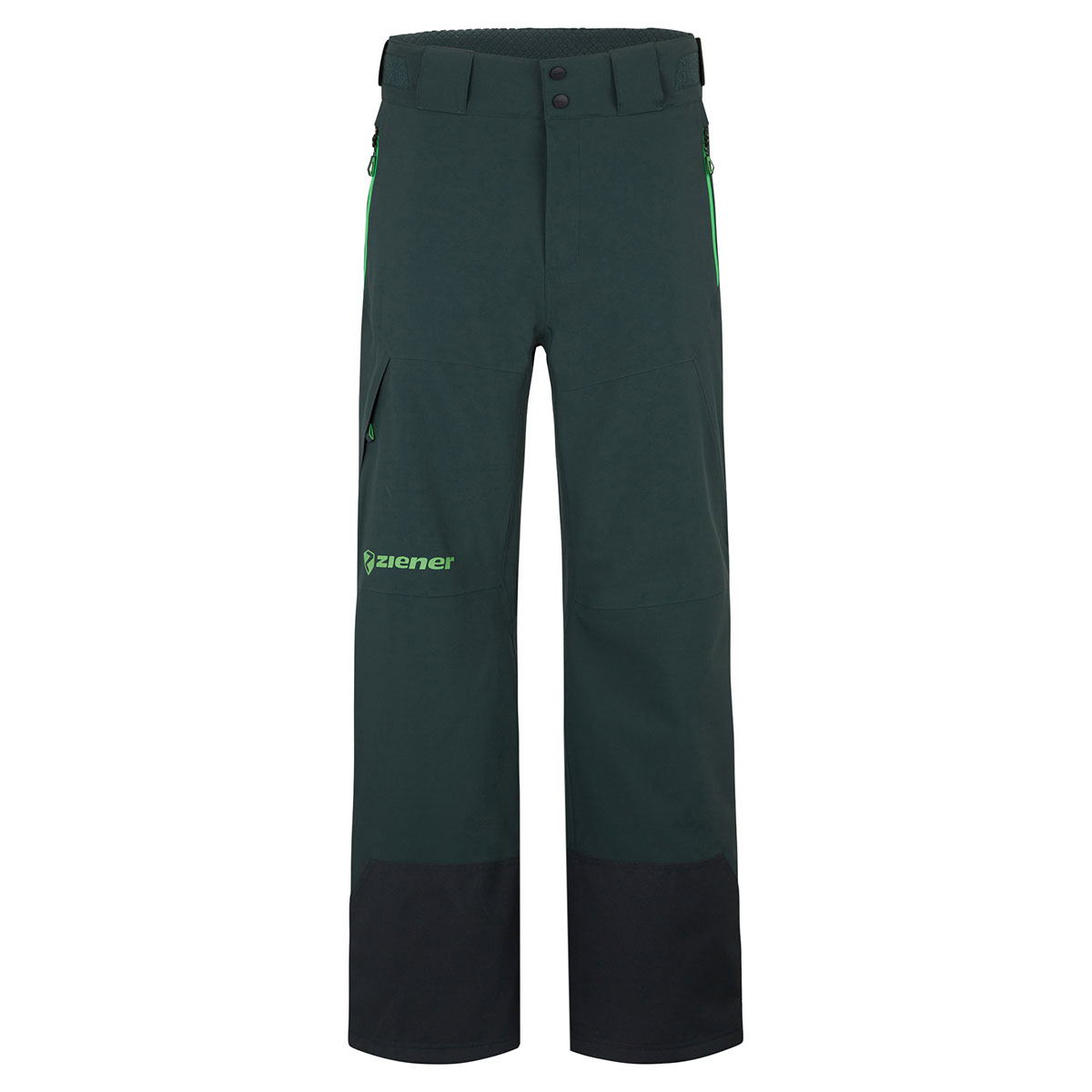 Die hochfunktionelle, unwattierte ZIENER TEAMWEAR Hose TAMIR VENT-LONG-ZIP-Z MAN punktet mit einem wärmendem Innenfutter. Sie ist mit der atmungsaktiven, wasser- und winddichten ZIENER AQUASHIELD® Membran (Wassersäule 20.000mm/Atmungsaktivität 20.000g/m²/24h) ausgestattet, die für ein warmes und trockenes Klima sorgt. Das recycelte, elastische 2-Lagen Material ist mit einer PFAS-freien Imprägnierung versehen. Hosenträger oder Gürtel können optional dazu bestellt werden und lassen sich u.a. an den dafür vorgesehenen Gürtelschlaufen befestigen. Ein langer seitlicher Reißverschluss bietet Belüftungsmöglichkeit für optimale Ventilation und dient gleichzeitig zum leichten An- und Ausziehen der Hose. Verstärkter Kantenschutz und ein verstellbarer schneefang im Hosensaum runden die funktionellen Features ab. Die seitlichen Reißverschlüsse sowie eine Tasche mit Reißverschluss am Hosenbein bieten Stauram für kleinere Gegenstände. Alle Nähte sind verklebt und absolut wasserdicht.