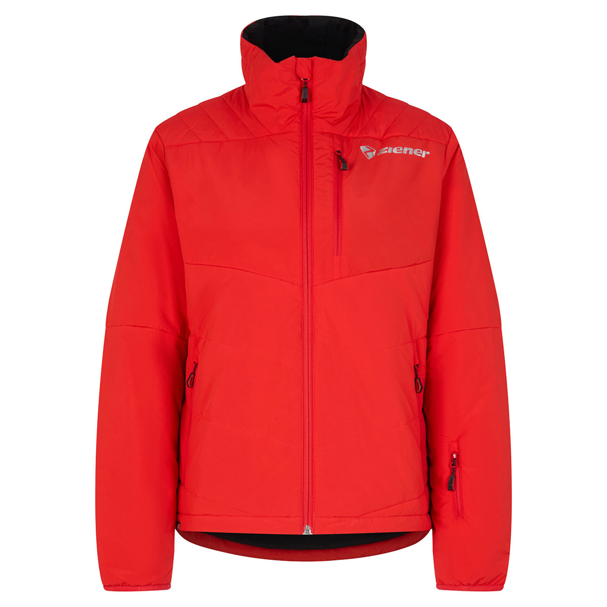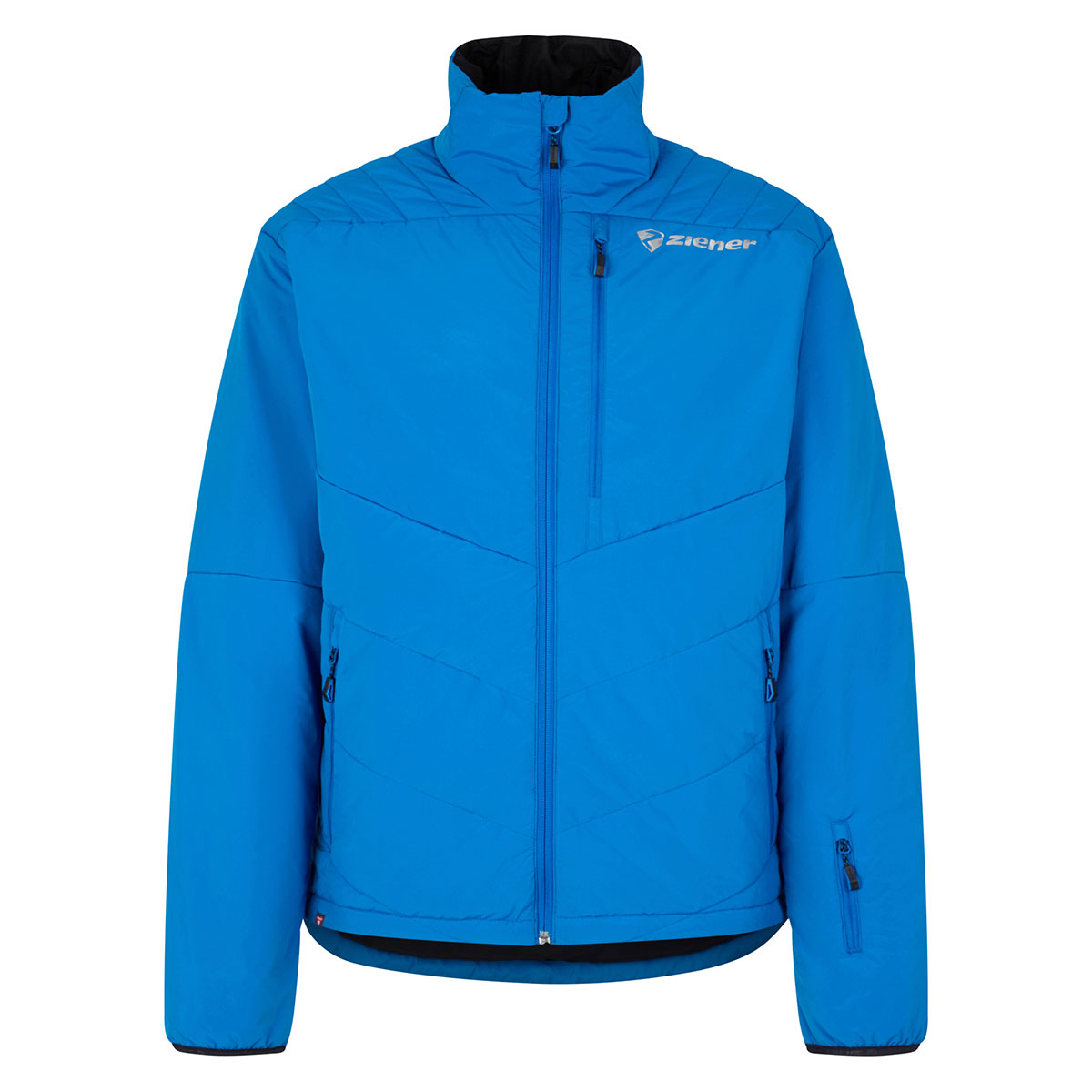 Die robuste, aber leichte Wärmejacke TARU-Z MAN bietet dank dem wasser- und windabweisendem ZIENER WEATHERSHIELD® Materialien hohe Funktionalität bei widrigem Wetter – egal, ob es leicht regnet, windet oder schneit. Dank PrimaLoft® Insulation (100g/m² Wattierung) hält die Jacke schön warm. Der Stehkragen schirmt den Halsbereich vor Wind und Wetter ab. Die Imprägnierung der Jacke ist PFAS-frei. Für Stauraum sorgen zwei seitliche Eingriffstaschen sowie eine Brusttasche mit Reißvershluss und eine Skipasstasche. Der Saum ist weitenregulierbar.