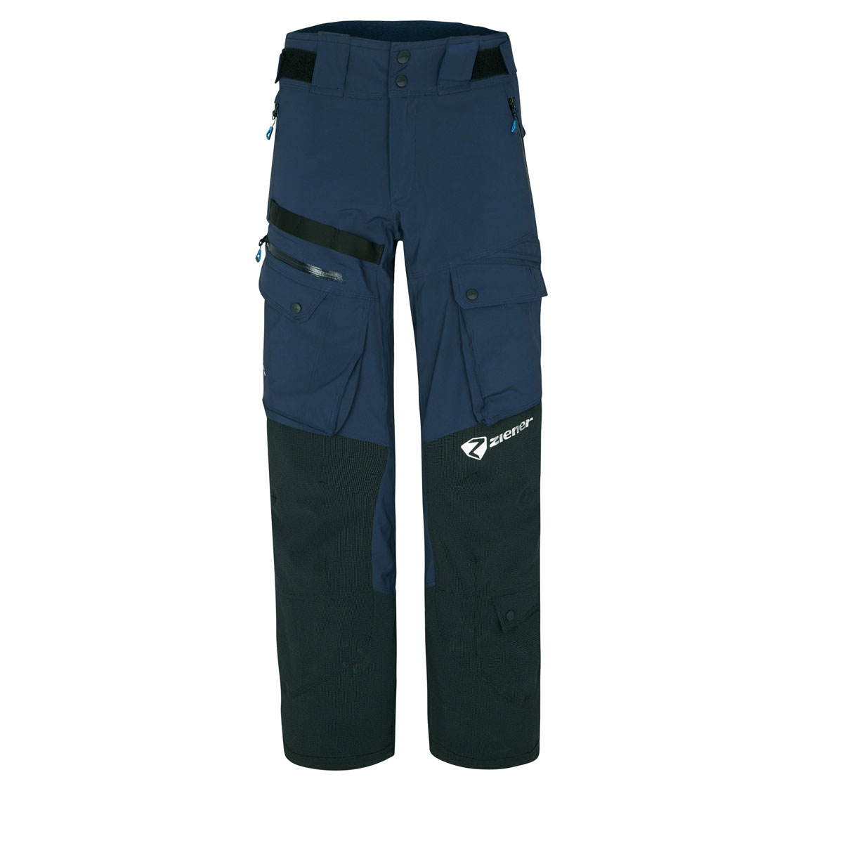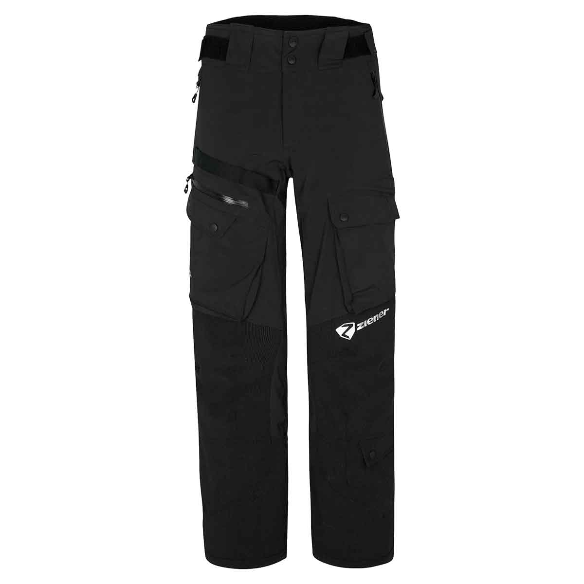 Die technische ZIENER Skihose RCE COACH PANTS-Z UNISEX wurde speziell für die Bedürfnisse von Skitrainer:Innen entwickelt. Durch den Einsatz der atmungsaktiven, wind- und wasserdichten Dermizax® Membran (Wassersäule 20.000mm/Atmungsaktivität 10.000g/m²/24h) ist sie besonders strapazierfähig und robust. Zusätzlich wurden der Knie- und Unterschenkelbereich mit besonders abriebfestem Material ausgestattet. Die Kniepolster können bei Bedarf herausgenommen werden. Zahlreiche Taschen an den Hosenbeinen sorgen für viele unterschiedliche Verstaumöglichkeiten von Werkzeug oder Startlisten. Eine Schraubenziehertasche am linken Hosenbein enthält eine zusätzliche Befestigungsschlaufe. Extra Komfort bieten der Reißverschluss für sicheren Halt und eine extra Werkzeugtasche am Beinende. Alle Nähte sind komplett verschweißt und absolut wasserundurchlässig. Seitliche Reißverschlüsse sorgen für perfekte Belüftung. Der Hosenbund ist verstellbar und enthält ein wärmendes Innenfutter. Hosenträger oder Gürtel können optional dazu bestellt werden und lassen sich an den dafür vorgesehenen Gürtelschlaufen befestigen.