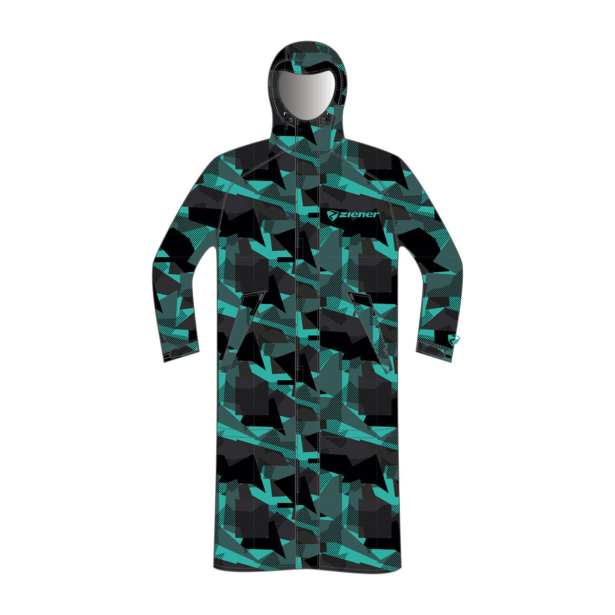 Der hochfunktionelle ZIENER Regenmantel RCE COACH COAT-Z UNISEX mit fester Kapuze kann optimal bei widrigen Wetterverhältnissen über der Skibekleidung getragen werden. Durch den Einsatz der atmungsaktiven, wind- und wasserdichten Dermizax® Membran (Wassersäule 20.000mm/Atmungsaktivität 10.000g/m²/24h) ist er besonders strapazierfähig und robust. Zwei große Eingriffstaschen mit Reißverschluss sowie eine integrierte Tasche bieten optimale Verstaumöglichkeiten. Der Mantel kann bei Bedarf gekürzt und mit Hilfe von Knöpfen fixiert werden. Die extra große Kapuze ist über dem Skihelm tragbar.
