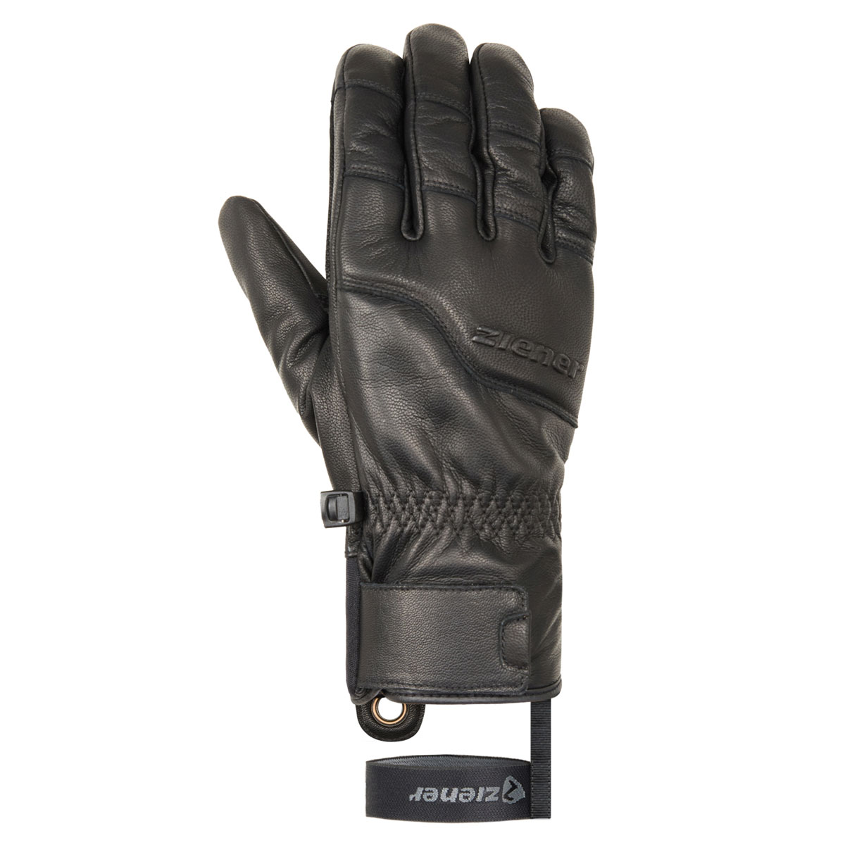 Der modernen ZIENER Skihandschuhe GISMON-Z AS® PR TOUCH aus Ziegenleder sind mit einer exzellent wärmenden PrimaLoft® Gold Wattierung ausgestattet und bieten höchsten Tragekomfort. Das Neoprenbündchen mit Klettverschluß am Handgelenk schließt eng ab, so dass der Handschuh bequem unter dem Jackenärmel getragen werden kann. Die ZIENER AQUASHIELD® Membran sorgt mit ihren wasser- und winddichten Eigenschaften für optimales Klima im Handschuh. Mit der integrierten TOUCH Funktion können Touchscreens mit den Handschuhen bedient werden. Die praktische Leash fixiert den Handschuh auch bei schnellem Ausziehen zuverlässig am Handgelenk. Das Produkt enthält nichttextile Teile tierischen Ursprungs.