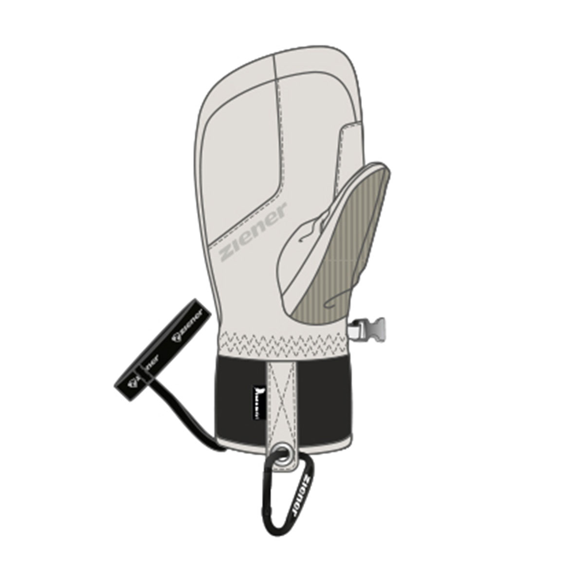 Der sehr warme, moderne Skifäustiling ZIENER GEFANOS-Z AS® MITTEN überzeugt durch seine besonders weiche und hochwertige Isolation aus Naturdaune, die selbst bei extrem niedrigen Temperaturen und trockener Kälte eine hervorragende Wärmeleistung bietet. Zusätzlich ist der Handschuh mit der atmungsaktiven, wasser- und winddichten ZIENER AQUASHIELD® Membran sowie der ZIENER THERMOSHIELD® PRO Technologie ausgestattet. Die weiche Lederinnenhand und das wärmende Futter sorgen für einen besonders angenehmen Tragekomfort. Das integrierte 5-Finger Futter gewährleistet ebenfalls hohe Taktilität am Stock. Eine praktische Leash fixiert den Handschuh auch bei schnellem Ausziehen zuverlässig am Handgelenk. Weitere Ausstattungsmerkmale sind der breite Klettverschluss am Handgelenk sowie ein zusätzlich angebrachter Karabiner. Die Imprägnierung ist PFAS-frei.