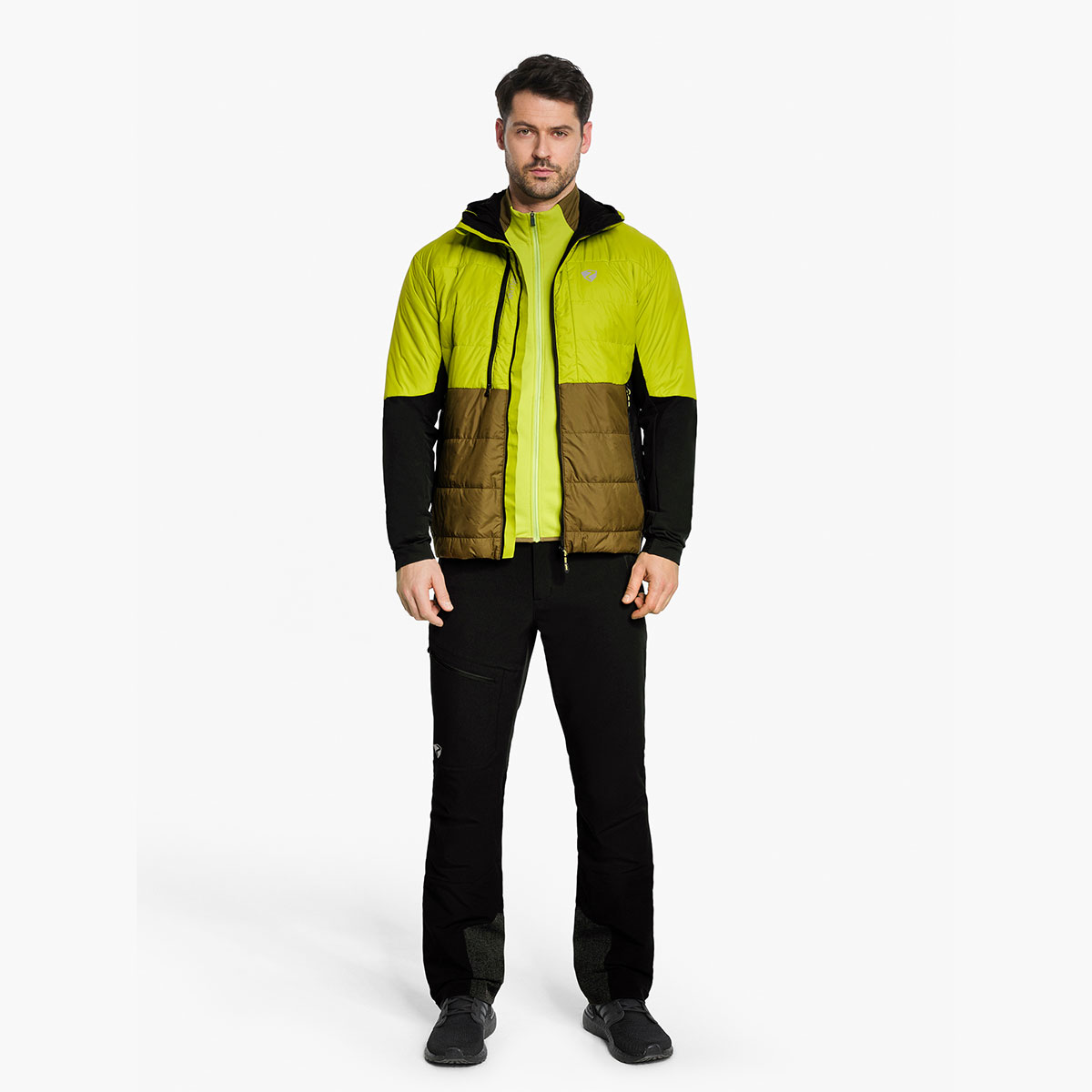 Die funktionelle, teilwattierte ZIENER Herren Hybrid Jacke NAKALO-Z MAN sorgt dank wasser- und windabweisender Materialien für hohe Funktionalität und Schutz – egal, ob es leicht regnet, windet oder schneit. Der Kragen, oberer Armbereich, Seitenteile und Front sind mit einer wärmenden mit PrimaLoft® Insulation (60g/m² Wattierung) versehen. Atmungsaktives Stretchmaterial am Rücken und unterden Armen sorgt für maximale Bewegungsfreiheit. Das Material ist bluesign® und Standard 100 by OEKO-TEX® zertifiziert. Falls man mal ins Schwitzen kommt, lässt sich der ZIENER AIRFLOW Reißverschluss, der mit Mesh hinterlegt ist, auf der Vorderseite öffnen. Zwei seitliche Reißverschlusstaschen garantieren einen sicheren Stauraum für kleine Gegenstände. Weitere technische Details sind die feste Kapuze und der Stehkragen, welche den Hals- und Kopfbereich vor Wind und Wetter abschirmen. Ein teilelastischer Ärmel -und Saumabschluss mit Gummiband sorgt für den perfekten Sitz und reflektierende Designelemente erhöhen die Sichtbarkeit. Die Jacke ist optimal für bewegungsintensive Sportarten, in denen maximale Atmungsaktivität benötigt wird.