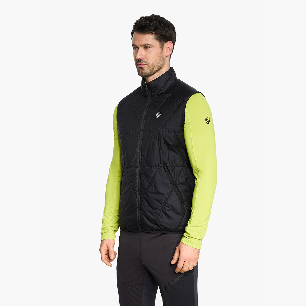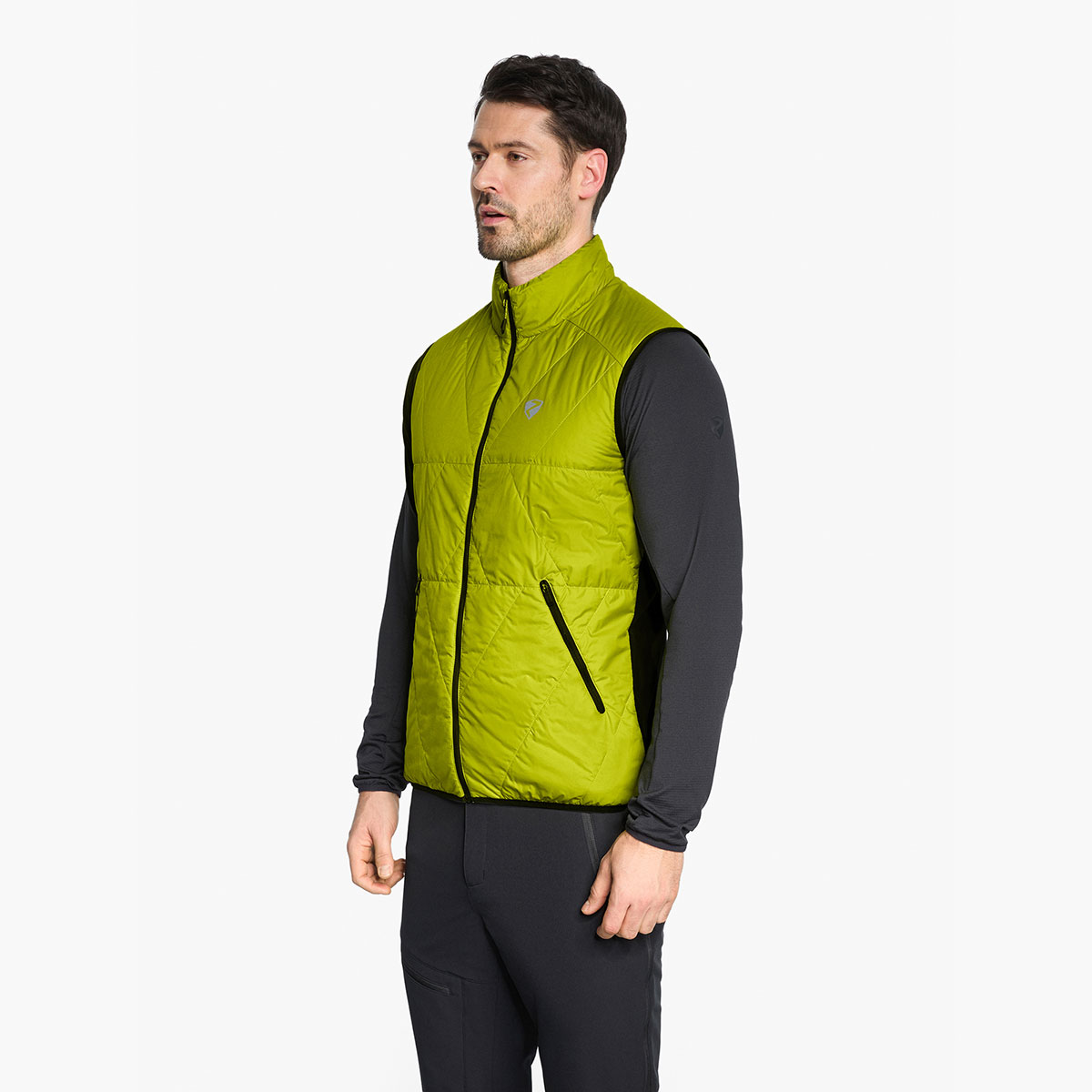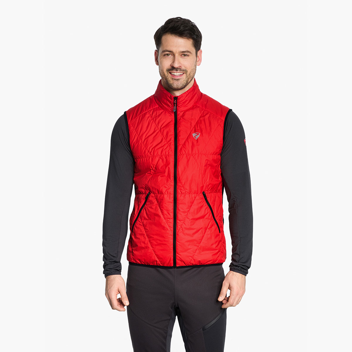 Die funktionelle, körpernah geschnittene ZIENER Herren Hybrid Weste NARIO-Z MAN ist mit einer windabweisenden, wattierten Vorderseite mit PrimaLoft® Insulation (40g/m² Wattierung) versehen. Atmungsaktives Stretchmaterial am Rücken sorgt für maximale Bewegungsfreiheit. Das Material ist bluesign® und Standard 100 by OEKO-TEX® zertifiziert. Weitere technische Details machen die Weste zu einem treuen Begleiter bei sportlichen Abenteuern: Der Stehkragen schirmt den Hals vor Wind und Wetter ab. Zwei seitliche Reißverschlusstaschen garantieren einen sicheren Stauraum für kleine Gegenstände. Ein elastischer Saumabschluss sorgt für den perfekten Sitz und reflektierende Designelemente erhöhen die Sichtbarkeit. Die Weste ist optimal für bewegungsintensive Sportarten, in denen maximale Atmungsaktivität benötigt wird.