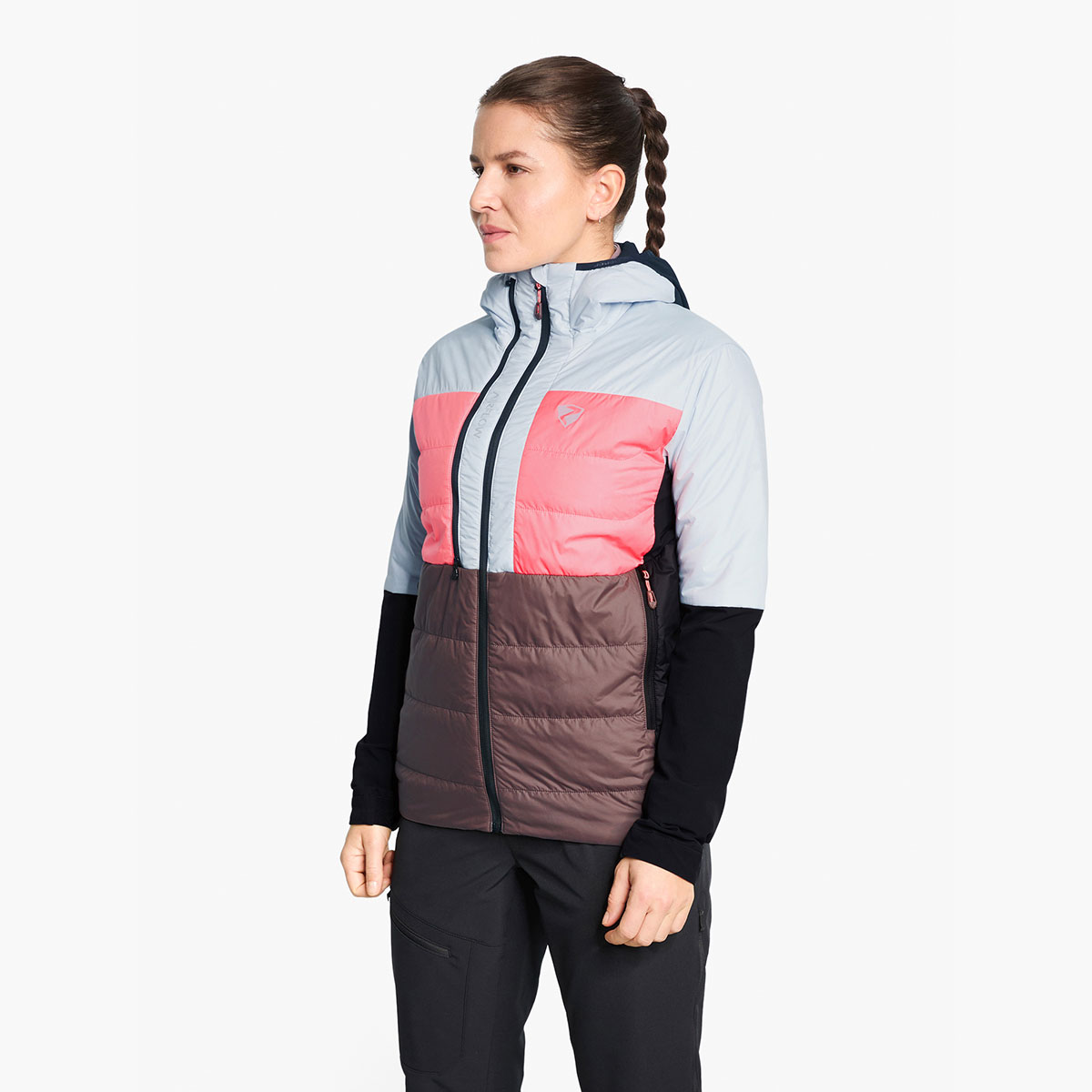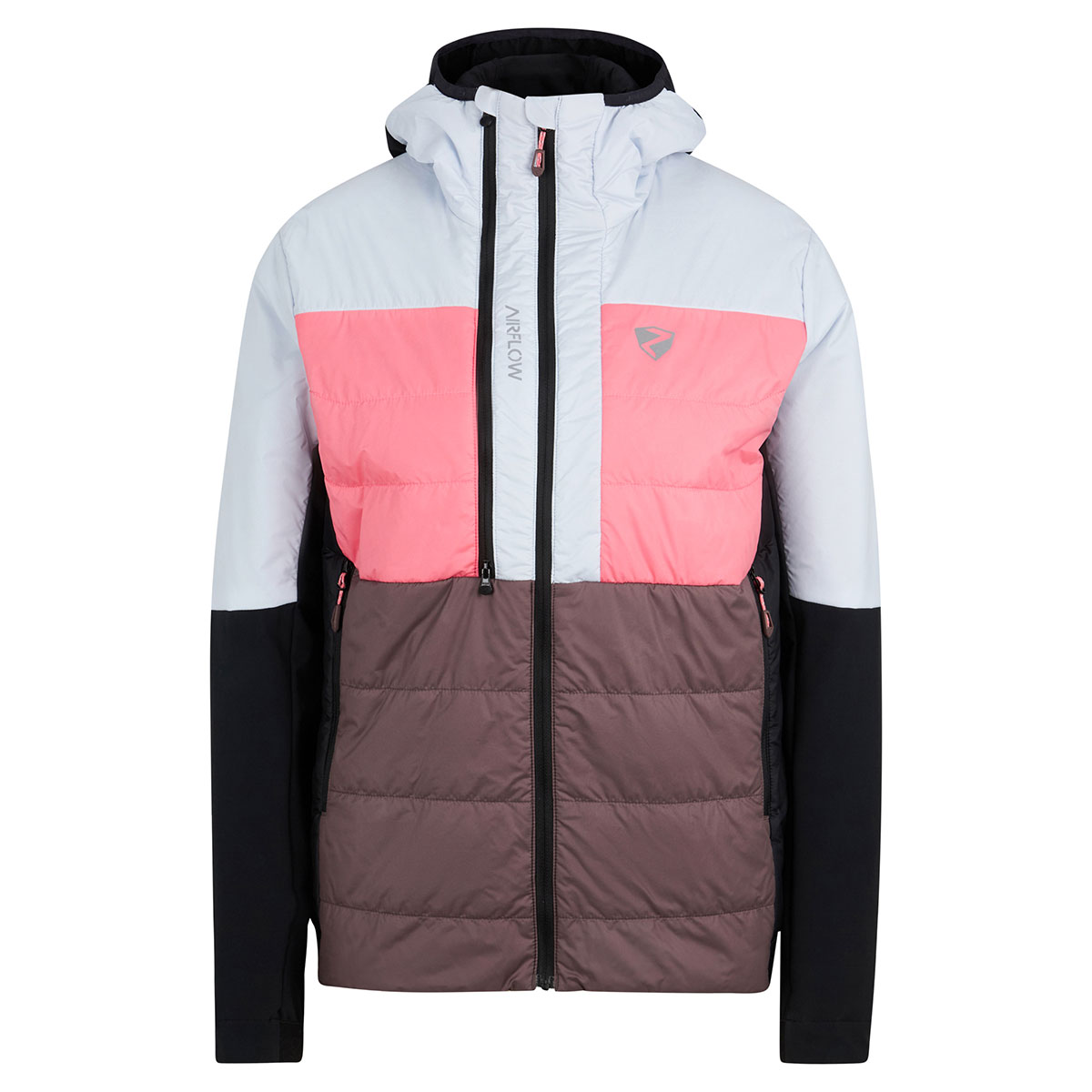Die funktionelle, teilwattierte ZIENER Damen Hybrid Jacke NAKALA-Z LADY sorgt dank wasser- und windabweisender Materialien für hohe Funktionalität und Schutz – egal, ob es leicht regnet, windet oder schneit. Der Kragen, oberer Armbereich, Seitenteile und Front sind mit einer wärmenden mit PrimaLoft® Insulation (60g/m² Wattierung) versehen. Atmungsaktives Stretchmaterial am Rücken und unterden Armen sorgt für maximale Bewegungsfreiheit. Das Material ist bluesign® und Standard 100 by OEKO-TEX® zertifiziert. Falls man mal ins Schwitzen kommt, lässt sich der ZIENER AIRFLOW Reißverschluss, der mit Mesh hinterlegt ist, auf der Vorderseite öffnen. Zwei seitliche Reißverschlusstaschen garantieren einen sicheren Stauraum für kleine Gegenstände. Weitere technische Details sind die feste Kapuze und der Stehkragen, welche den Hals- und Kopfbereich vor Wind und Wetter abschirmen. Ein teilelastischer Ärmel -und Saumabschluss mit Gummiband sorgt für den perfekten Sitz und reflektierende Designelemente erhöhen die Sichtbarkeit. Die Jacke ist optimal für bewegungsintensive Sportarten, in denen maximale Atmungsaktivität benötigt wird.