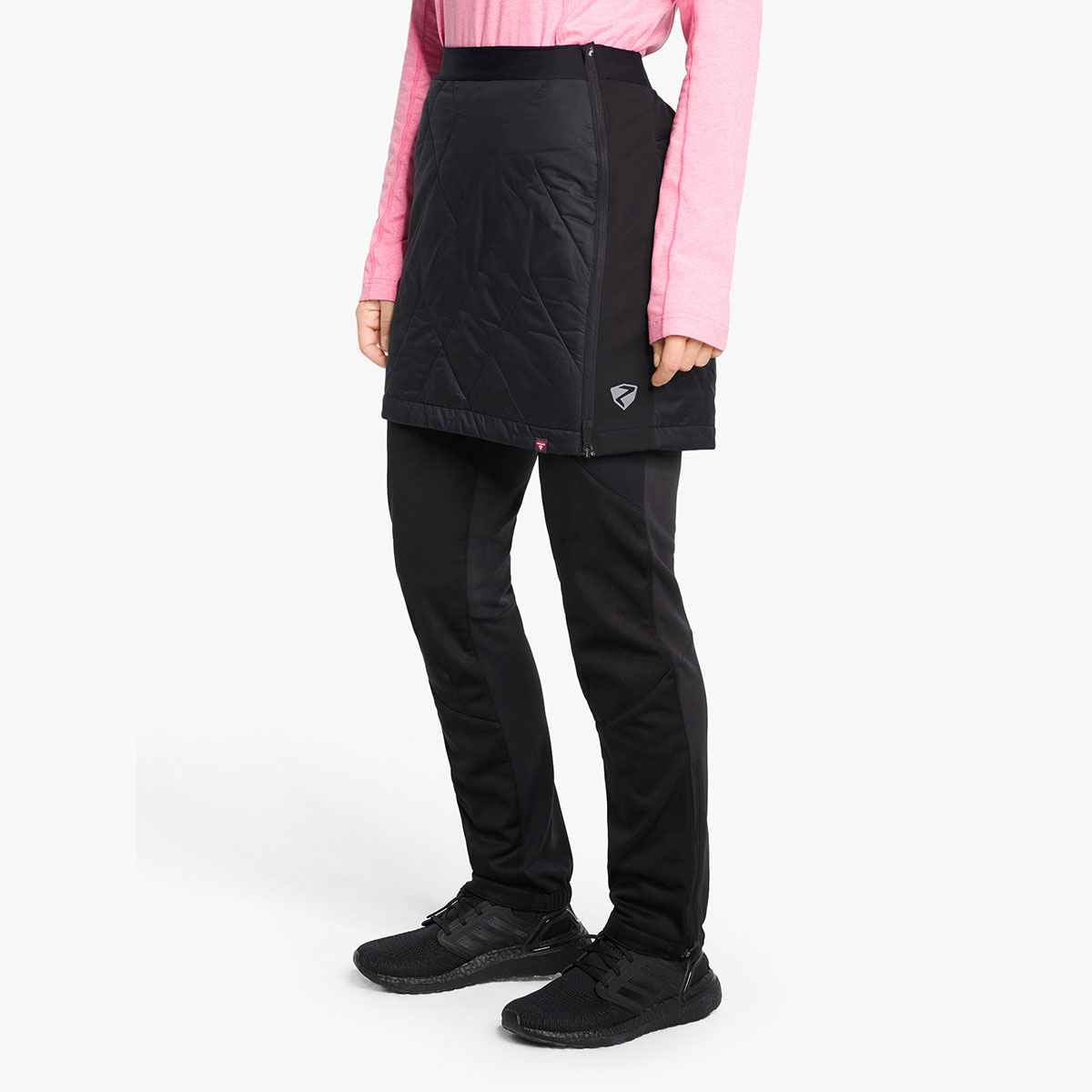 Der wattierte ZIENER Damenrock NIMA-Z LADY mit dem ZIENER WEATHERSHIELD® sorgt dank wasser- und windabweisender Materialien für hohe Funktionalität und Schutz – egal, ob es leicht regnet, windet oder schneit. Er kommt an kühlen Tagen zum Einsatz und hält die Oberschenkelpartie schön warm – ob beim Aufstieg oder bei der Abfahrt. Das Material ist bluesign® und Standard 100 by OEKO-TEX® zertifiziert. Er ist mit einer hochwertigen PrimaLoft® Insulation (80g/m² Wattierung) ausgestattet. An den Seiten sind elastische Einsätze eingenäht. Der Rock verfügt über einen durchgängigen Reißverschluss links und einen kurzen Reißverschluss auf der rechten Seite, um das An- und Ausziehen zu erleichtern. Der teilelastische Bund passt sich optimal an – für einen angenehmen Tragekomfort. Zudem ist er mit reflektierenden Designelementen versehen.