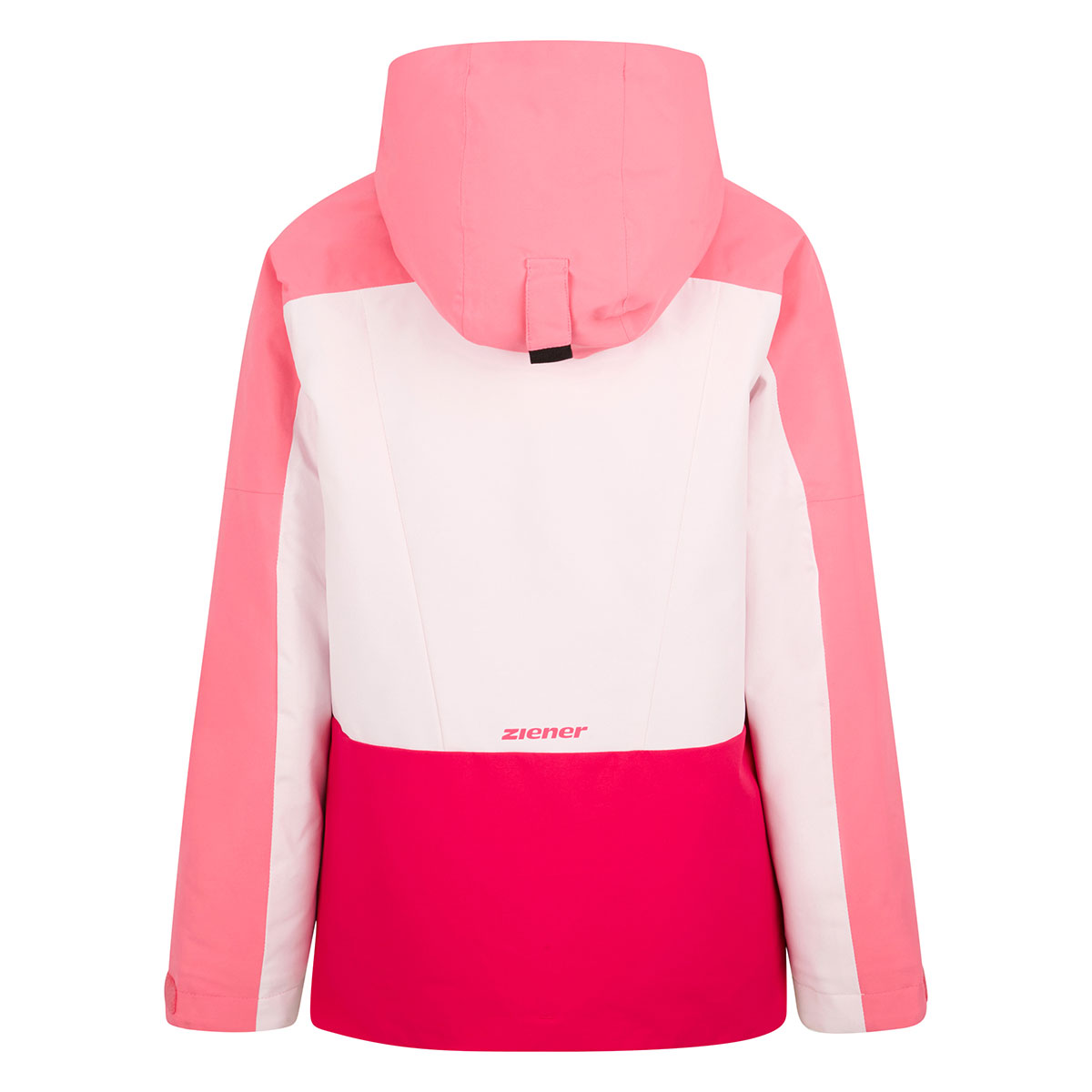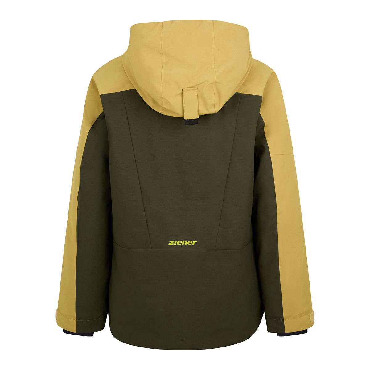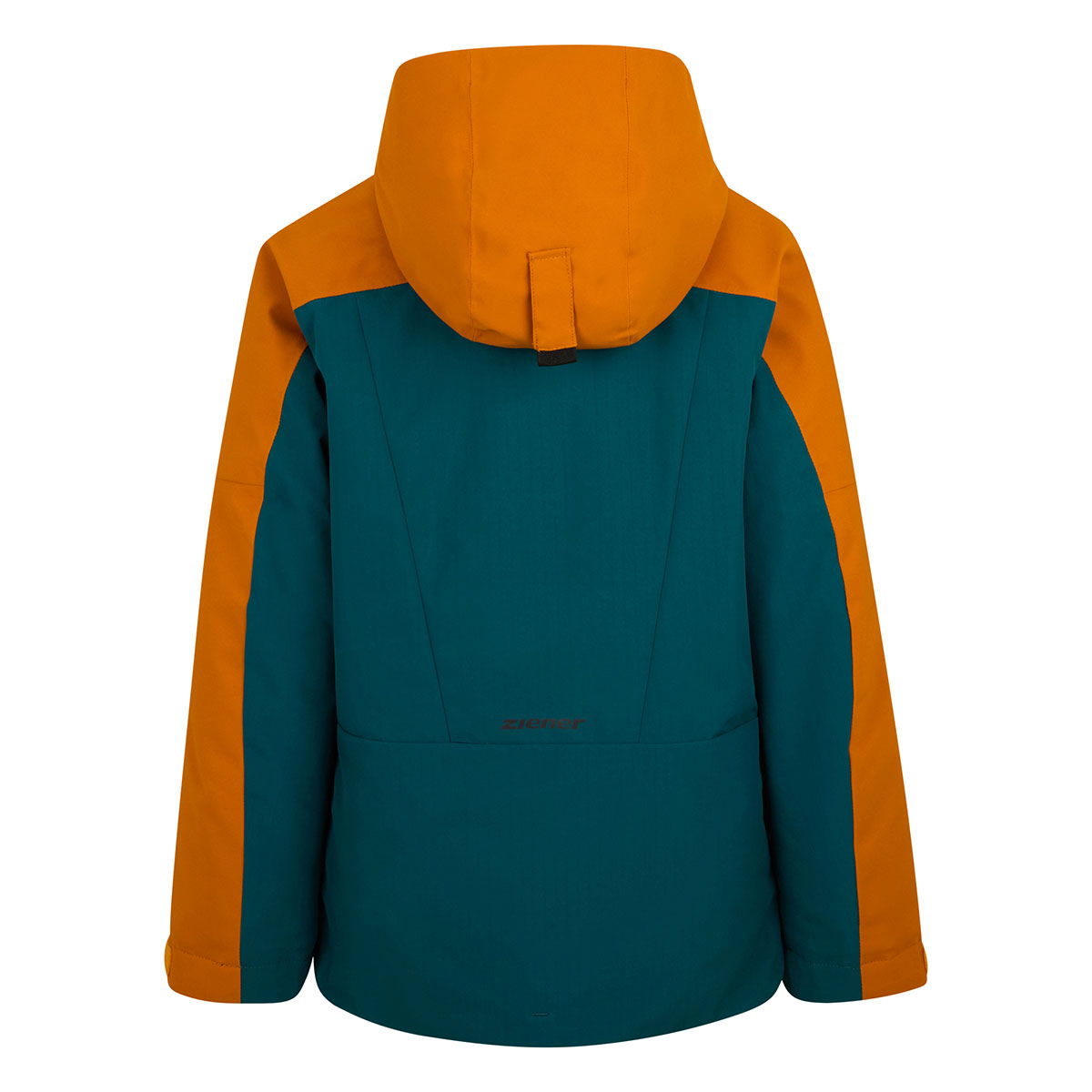 Die funktionelle, wattierte ZIENER Skijacke ARNU-Z JUNIOR für Kinder hält dank der hochwertigen 120g/m² Wattierung bei kaltem Wetter zuverlässig warm. Zudem ist sie mit der atmungsaktiven, wasser- und winddichten ZIENER AQUASHIELD® Membran (Wassersäule 10.000mm/Atmungsaktivität 10.000g/m²/24h) ausgestattet, die für ein warmes und trockenes Klima sorgt. Wärmendes Futter am Rücken und Kragen sorgt für zusätzliche Isolierung und weiche, elastische Ärmelbündchen garantieren einen perfekten Sitz. Die wichtigsten Nähte sind verschweißt. Die Jacke punktet mit weiteren Details wie zwei Eingriffstaschen mit Reißverschluss, einer Skipasstasche, Innentaschen für Sonnen- oder Skibrille und Smartphones sowie einem Schneefang. Dazu lassen sich in den Innentaschen Sonnen- und Skibrille und Smartphone verstauen. Sie ist mit reflektierenden Designelementen versehen. Die Imprägnierung der Jacke ist PFAS-frei. Der Außenstoff ist bluesign® und Standard 100 by OEKO-TEX® zertifiziert. Die Kapuze ist verstellbar und entspricht der Norm DIN EN 14682 für Sicherheit von Kinderbekleidung.