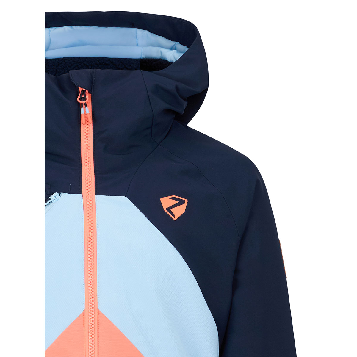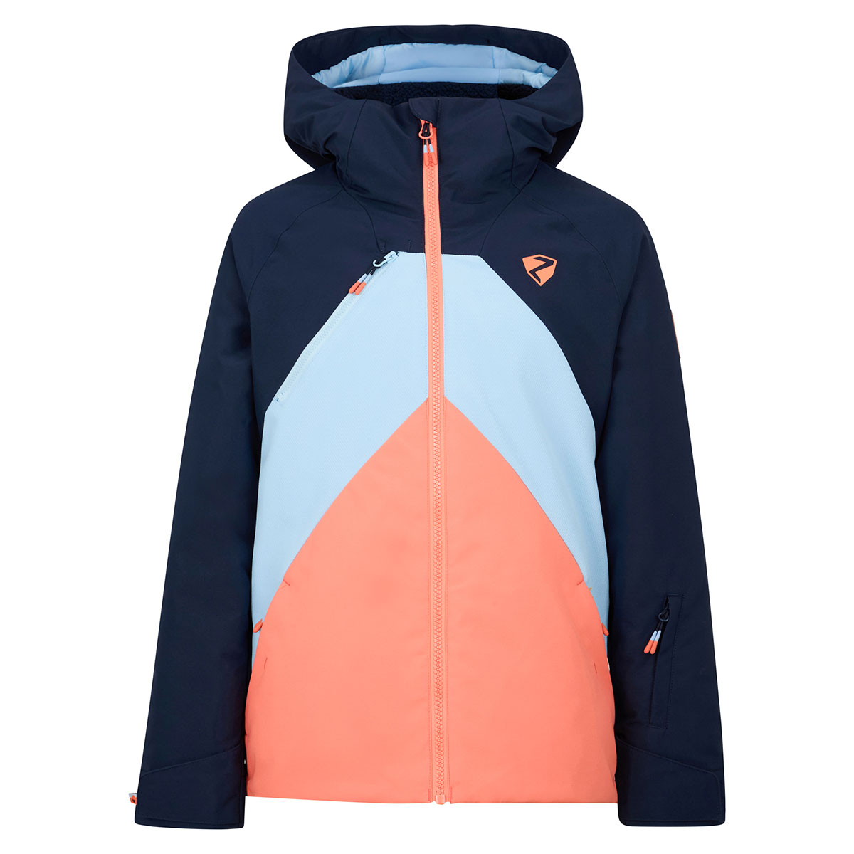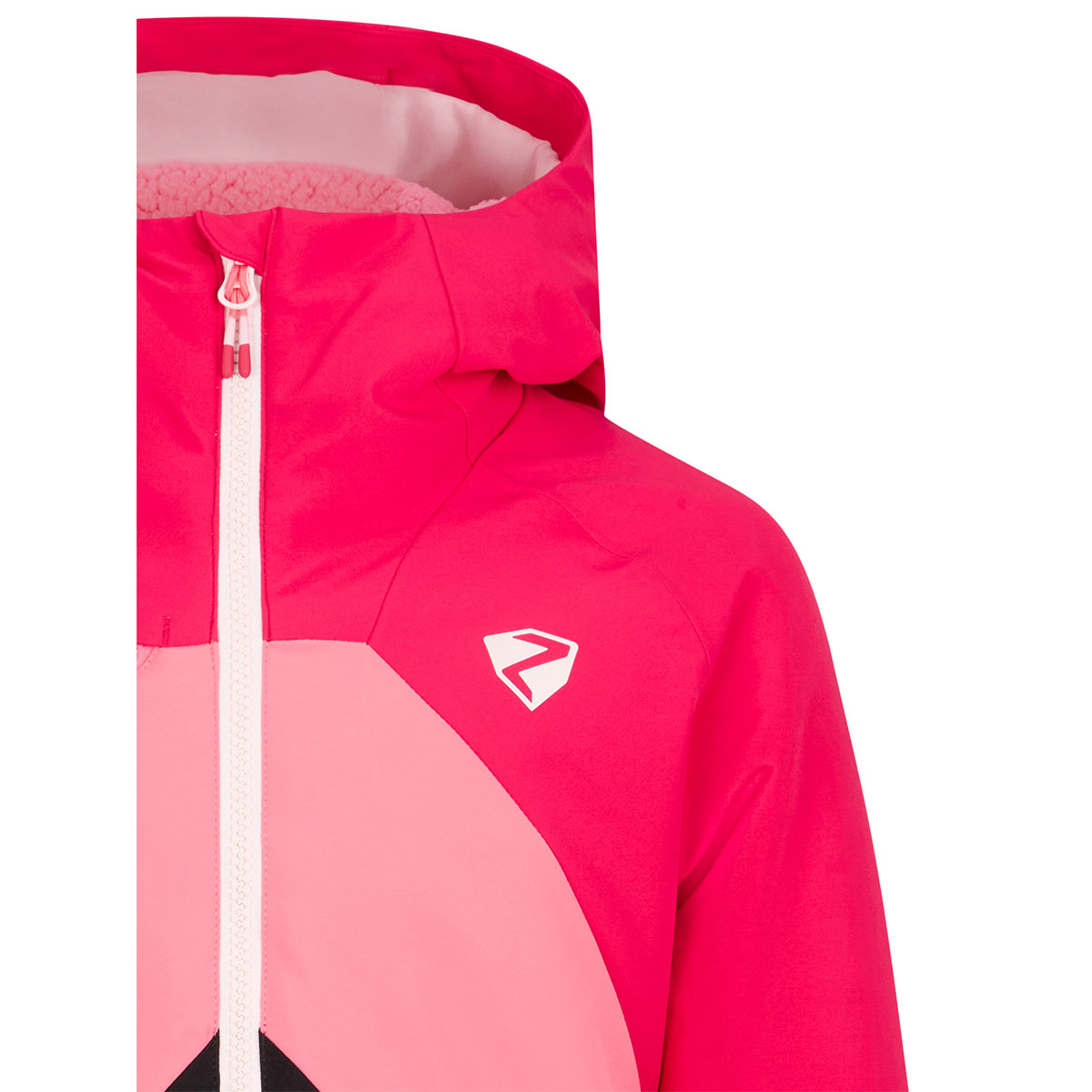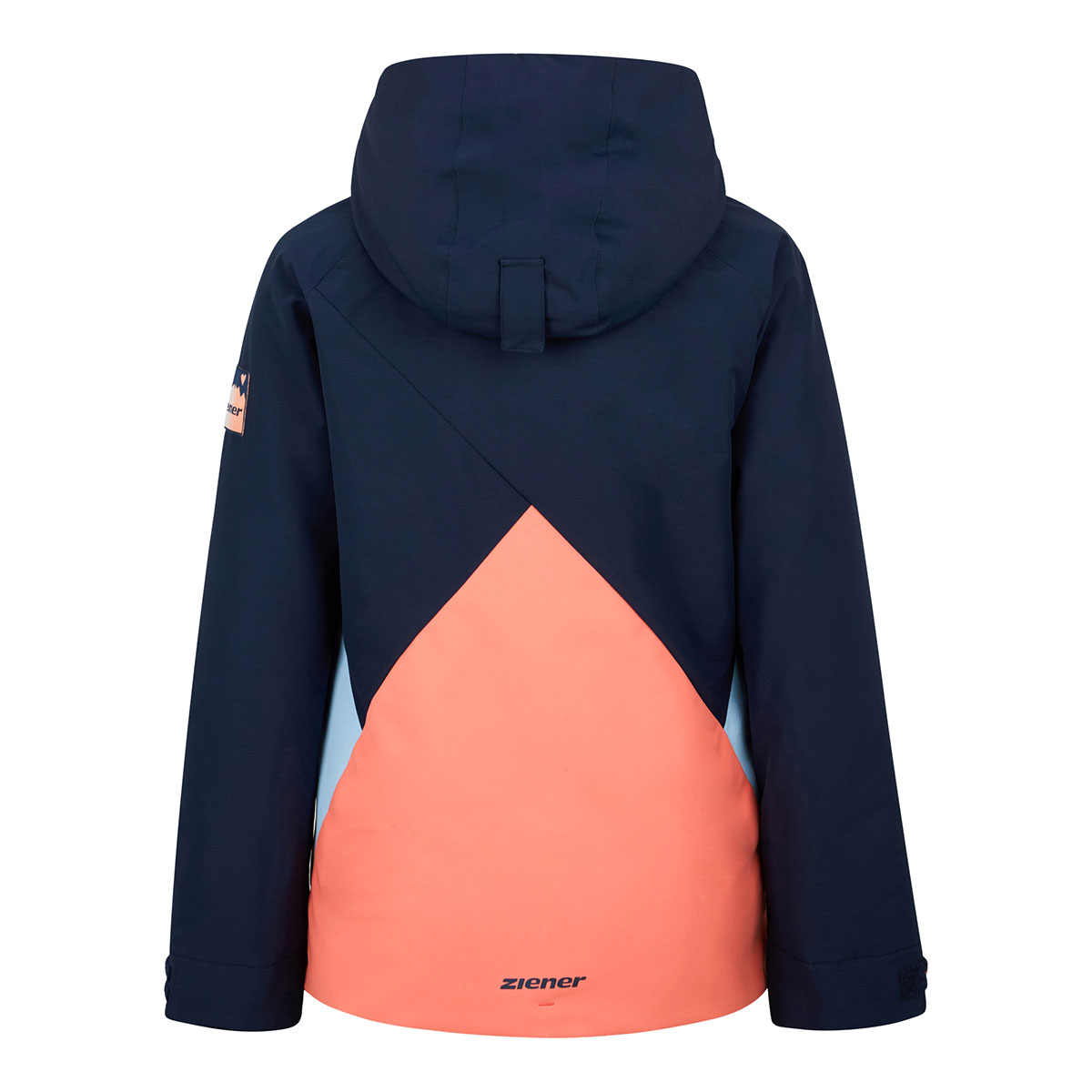 Die funktionelle, wattierte ZIENER Skijacke ARMIDA-Z JUNIOR für Mädchen mit der atmungsaktiven, wasser- und winddichten ZIENER AQUASHIELD® Membran (Wassersäule 10.000mm/Atmungsaktivität 10.000g/m²/24h)ausgestattet und sorgt damit für ein warmes und angenehmes Klima. Die Jacke trotzt mit ihrer 120g/m² Wattierung jedem Wetter. Wärmendes Futter am Rücken und Kragen sorgt für zusätzliche Isolierung und die weichen, elastischen Ärmelbündchen garantieren einen perfekten Sitz. Die Imprägnierung der Jacke ist PFAS-frei. Der Außenstoff ist bluesign® und Standard 100 by OEKO-TEX® zertifiziert. Strategisch verschweißte Nähte und ein Schneefang runden den Funktionskomfort ab. In der Brusttasche mit wasserdichtem Reißverschluss lassen sich die wichtigsten Dinge verstauen. Weiterer Stauraum bieten die zwei prakischen Eingriffstaschen mit Reißverschluss, die Skipasstasche sowie Innentaschen für Sonnen- oder Skibrille und Smartphones. Zusätzlich ist die Jacke mit reflektierenden Designelementen versehen. Die Kapuze entspricht der Norm DIN EN 14682 für Sicherheit von Kinderbekleidung.