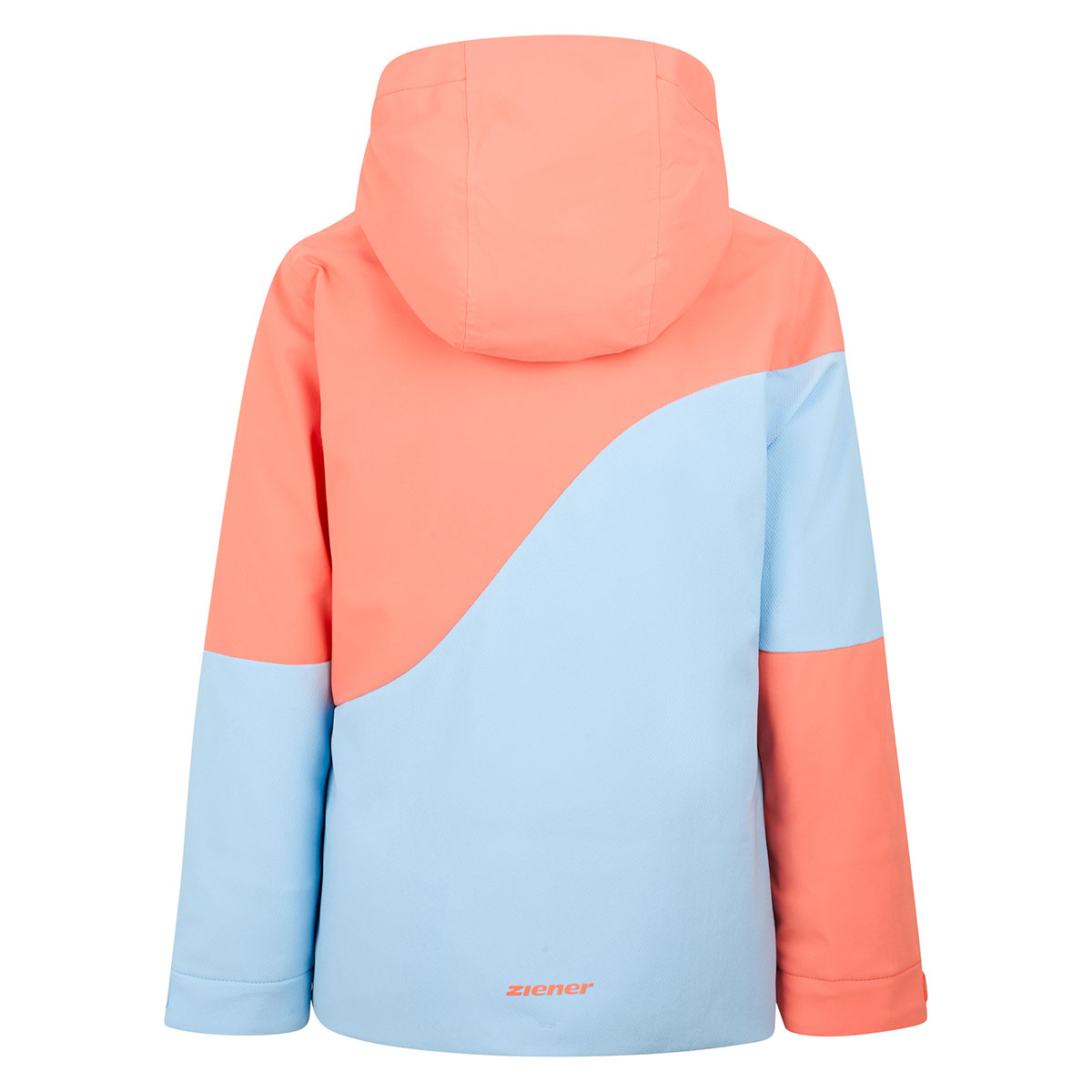 Die funktionelle, wattierte ZIENER Skijacke AVINE-Z JUNIOR für Mädchen hält dank der hochwertigen 120g/m² Wattierung und dem weichen Futter am Rücken und am Kragen bei kaltem Wetter zuverlässig warm. Zudem ist sie mit der atmungsaktiven, wasser- und winddichten ZIENER AQUASHIELD® Membran (Wassersäule 10.000mm/Atmungsaktivität 10.000g/m²/24h) ausgestattet, die für ein warmes und trockenes Klima sorgt. Wärmendes Futter am Rücken und Kragen sorgt für zusätzliche Isolierung und weiche, elastische Ärmelbündchen garantieren einen perfekten Sitz. Die wichtigsten Nähte sind verschweißt. Die Jacke punktet außerdem mit Taschen für Skibrille, Skipass, zwei weiteren Eingriffstaschen mit Reißverschluss sowie einem Schneefang. Des weiteren ist sie versehen mit reflektierenden Designelementen. Die Imprägnierung der Jacke ist PFAS-frei. Der Außenstoff ist bluesign® und Standard 100 by OEKO-TEX® zertifiziert. Die Kapuze entspricht der Norm DIN EN 14682 für Sicherheit von Kinderbekleidung.