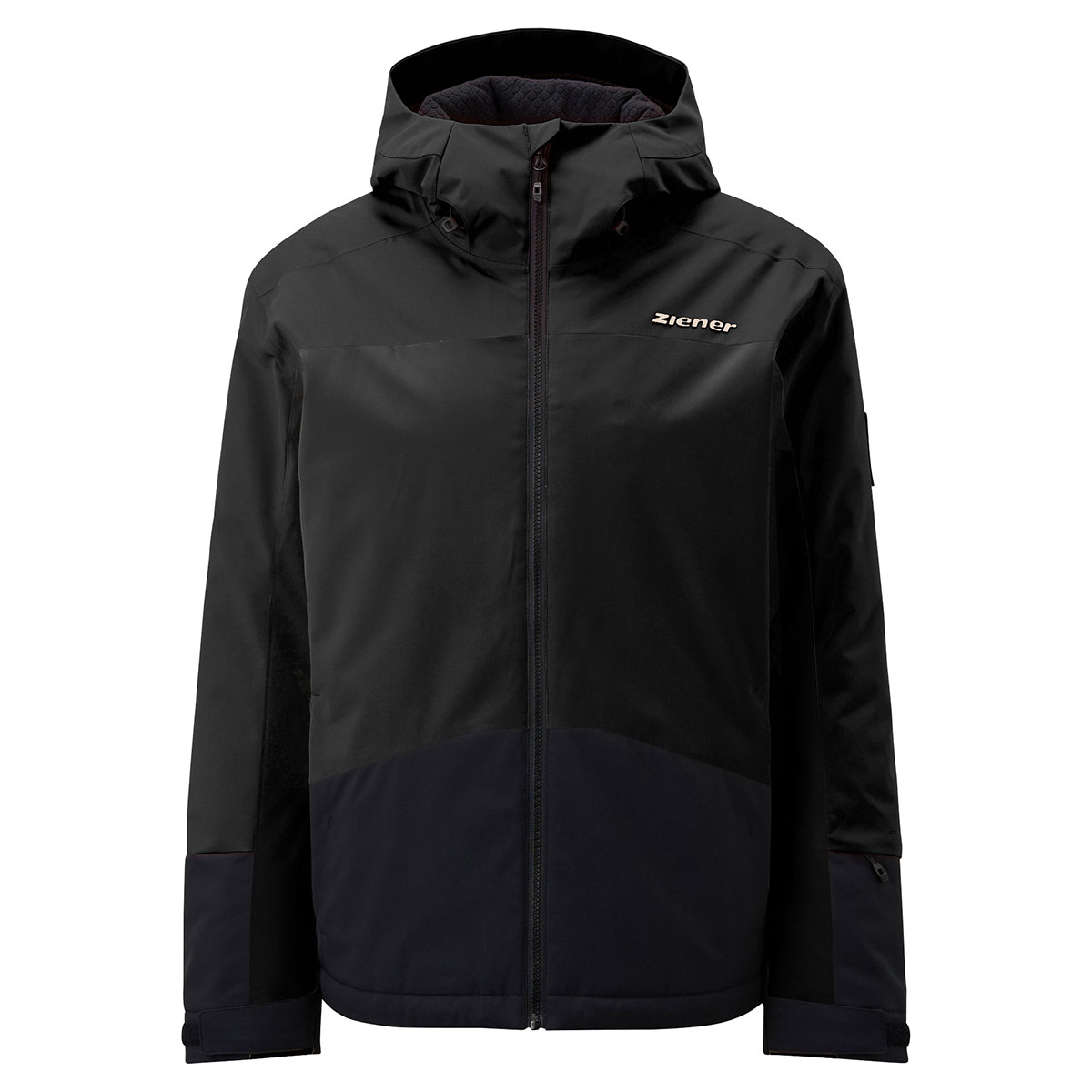 Die funktionelle, wattierte ZIENER Herren Skijacke TARAINO-Z MAN ist dank des hochwertigen, elastischen Obermaterials bestens für lange Skitage bei jedem Wetter geeignet. Die atmungsaktive, wasser- und winddichte ZIENER AQUASHIELD® Membran (Wassersäule 10.000mm/Atmungsaktivität 10.000g/m²/24h) sorgt für ein warmes und trockenes Klima. Die Imprägnierung der Jacke ist PFAS-frei. Der Außenstoff ist bluesign® zertifiziert. Darüber hinaus hält eine 100g/m² Wattierung aus atmungsaktivem und leichtem Isolationsmaterial das Wärmegleichgewicht auch in feuchtem Zustand – für einen besonders hohen Tragekomfort. Das elastische Innenfutter sorgt für optimale Bewegungsfreiheit. Technische Details wie die feste, verstellbare Funktionskapuze, elastische Ärmelinnenbündchen und der feste Schneefang tragen zum hohen Funktionskomfort dieser Skijacke bei. Zahlreiche Features wie Taschen für Ski- und Sonnenbrille sowie für das Smartphone, eine Skipasstasche und zwei Eingriffstaschen mit Reißverschluss machen diese Jacke zum absoluten Pisten-Highlight. Die wichtigsten Nähte sind verschweißt.