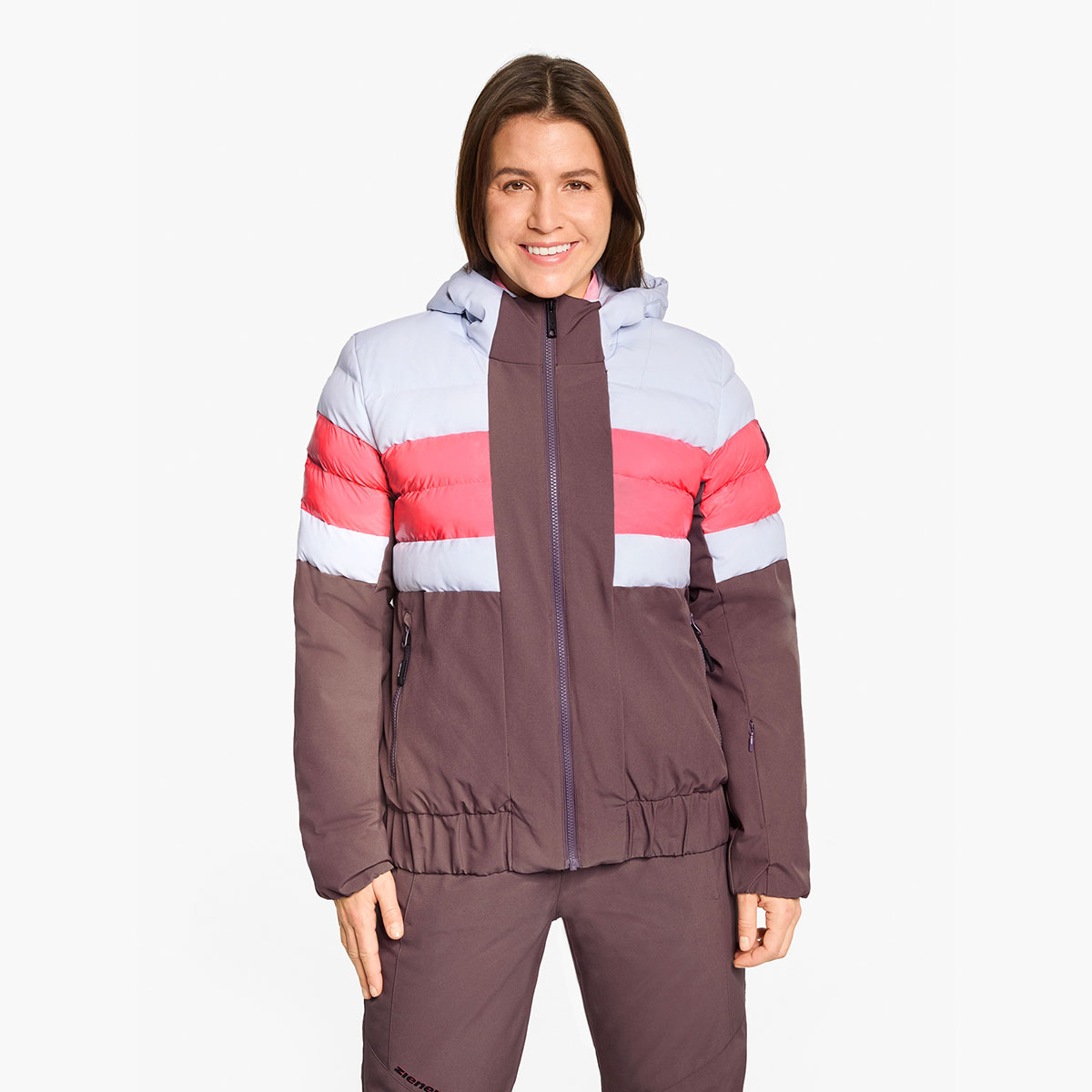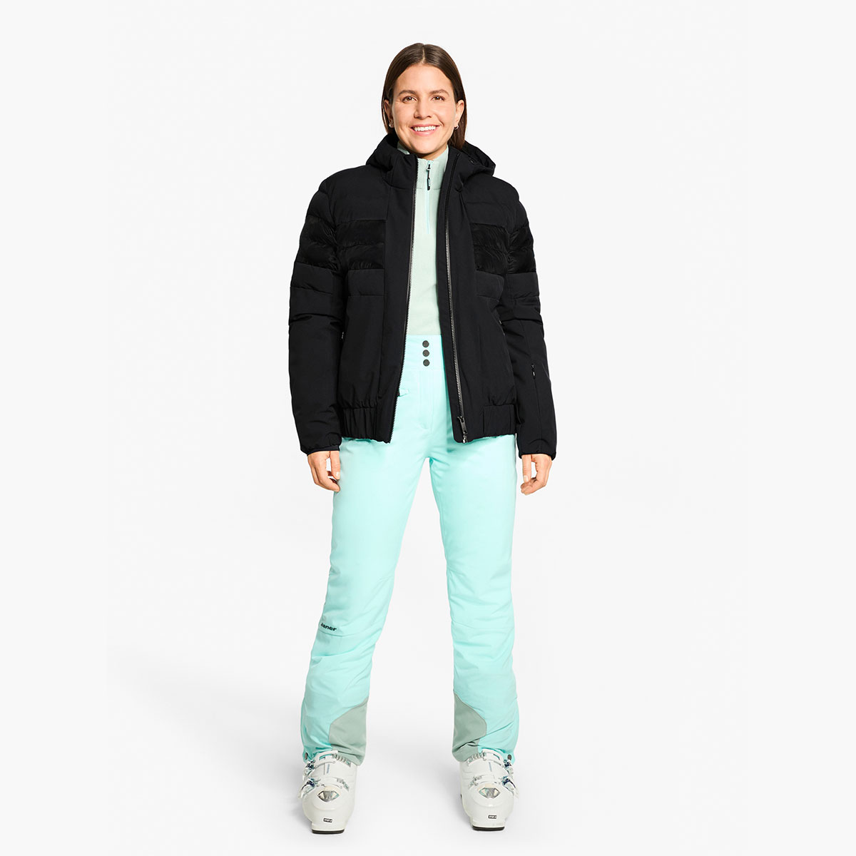 Die kurze, modische ZIENER Damen Skijacke TINDA-Z LADY punktet mit ihrem hohen elastischen Bund und feminen Look. Die atmungsaktive, wasser- und winddichte ZIENER AQUASHIELD® Membran (Wassersäule 10.000mm/Atmungsaktivität 10.000g/m²/24h) sorgt für ein warmes und trockenes Klima. Darüber hinaus hält die hochwertige Comfortemp® Wattierung auch an kalten Tagen besonders warm sorgt für ein natürliches Klima ohne zu überhitzen. Der hohe Kragen spendet zusätzlich Wärme. Die Imprägnierung der Jacke ist PFAS-frei. Der Außenstoff ist bluesign® zertifiziert. Technische Details wie eine feste, verstellbare Funktionskapuze sowie elastische Ärmelinnenbündchen tragen zum hohen Funktionskomfort dieser Jacke bei. Das elastische Innenfutter sorgt für optimale Bewegungsfreiheit. Wasserdichte Reißverschlüsse und ein Schneefang gehören ebenfalls zur Basisausstattung. Die zahlreichen Taschen für Ski- und Sonnenbrille, Smartphone und den Skipass sind zusätzliche Funktionsdetails der Jacke.