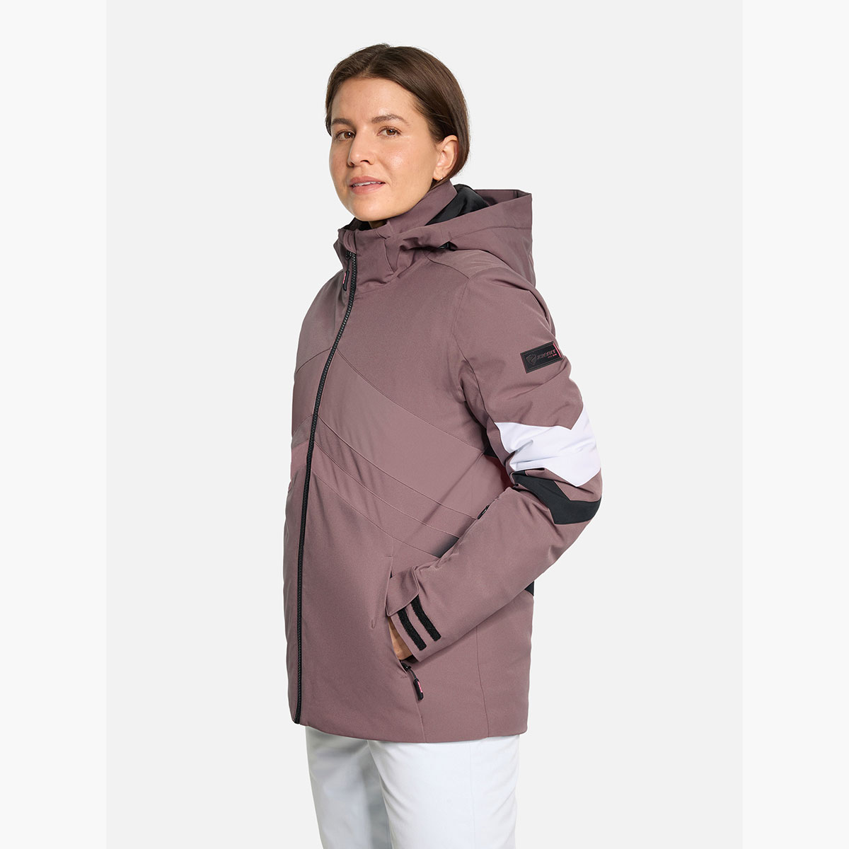 Die funktionelle, wattierte ZIENER Damen Skijacke TARAINA-Z LADY überzeugt mit ihren zahlreichen Detaillösungen sowie dem Einsatz von hochwertigen Materialien. Die atmungsaktive, wasser- und winddichte ZIENER AQUASHIELD® Membrane (Wassersäule 10.000mm/Atmungsaktivität 10.000g/m²/24h) sorgt für ein warmes und trockenes Klima. Die Imprägnierung der Jacke ist PFAS-frei. Der Außenstoff ist bluesign® zertifiziert. Die 100g/m² Wattierung aus atmungsaktivem und leichtem Isolationsmaterial hält das Wärmegleichgewicht und garantiert höchsten Tragekomfort. Das elastische Innenfutter sorgt für optimale Bewegungsfreiheit. Die wichtigsten Nähte sind verschweißt. Eine feste verstellbare Kapuze, elastische Ärmelinnenbündchen sowie der Schneefang zählen zur Basisausstattung. Mit praktischen Features wie zwei Eingriffstaschen, Tasche für Ski- und Sonnenbrillen sowie einer Smartphone Tasche und einer Skipasstasche am linken Arm macht das Skifahren noch mehr Spaß!