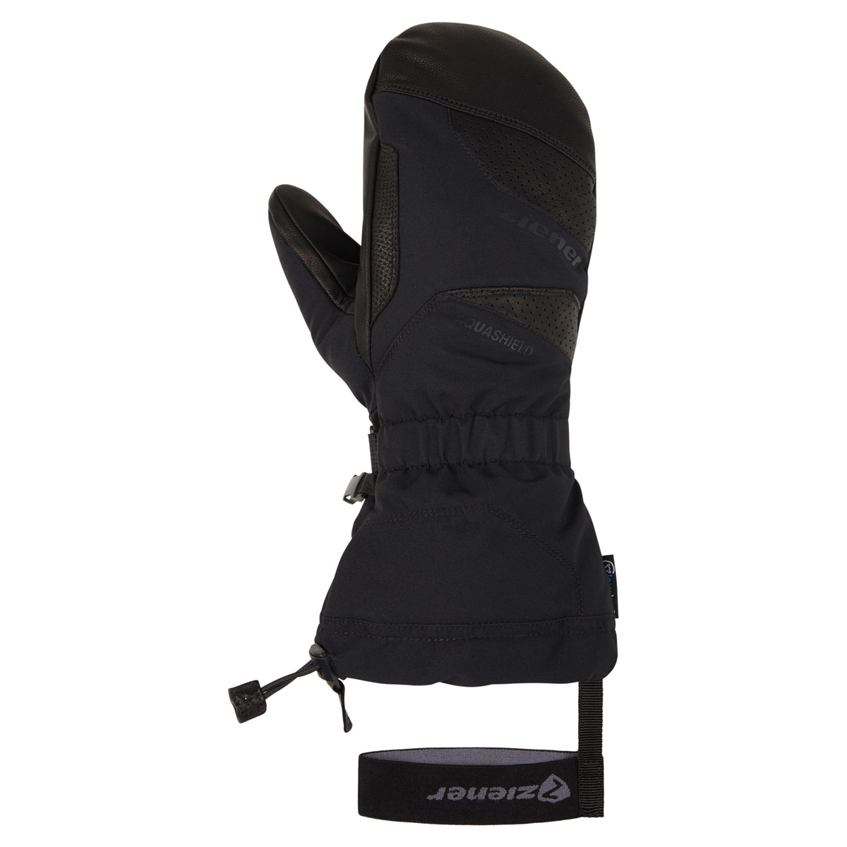 Die modernen, sportlichen ZIENER Herren Skifäustlinge GAIKUS AS® AW MITTEN mit der wasser- und winddichten ZIENER AQUASHIELD® Membran bleiben die Hände auch bei widrigem Wetter angenehm trocken. Die warme lavalan® Wollwattierung hält die Körpertemperatur auch an kalten Tagen im Wohlfühlbereich und garantiert optimalen Klimakomfort. Eine robuste, griffige und weiche Innenhand aus Ziegenleder bietet eine optimale Kraftübertragung und Griffgefühl am Skistock. Der Handschuh wird mit Hilfe eines Gurtbands fixiert und die lange Stulpe kann dank Cordlock-System mit nur einer Hand festgezogen werden. Die praktische Leash fixiert den Handschuh auch bei schnellem Ausziehen zuverlässig am Handgelenk. Das Produkt enthält nichttextile Teile tierischen Ursprungs. Der Außenstoff ist bluesign® und Standard 100 by OEKO-TEX® zertifiziert.