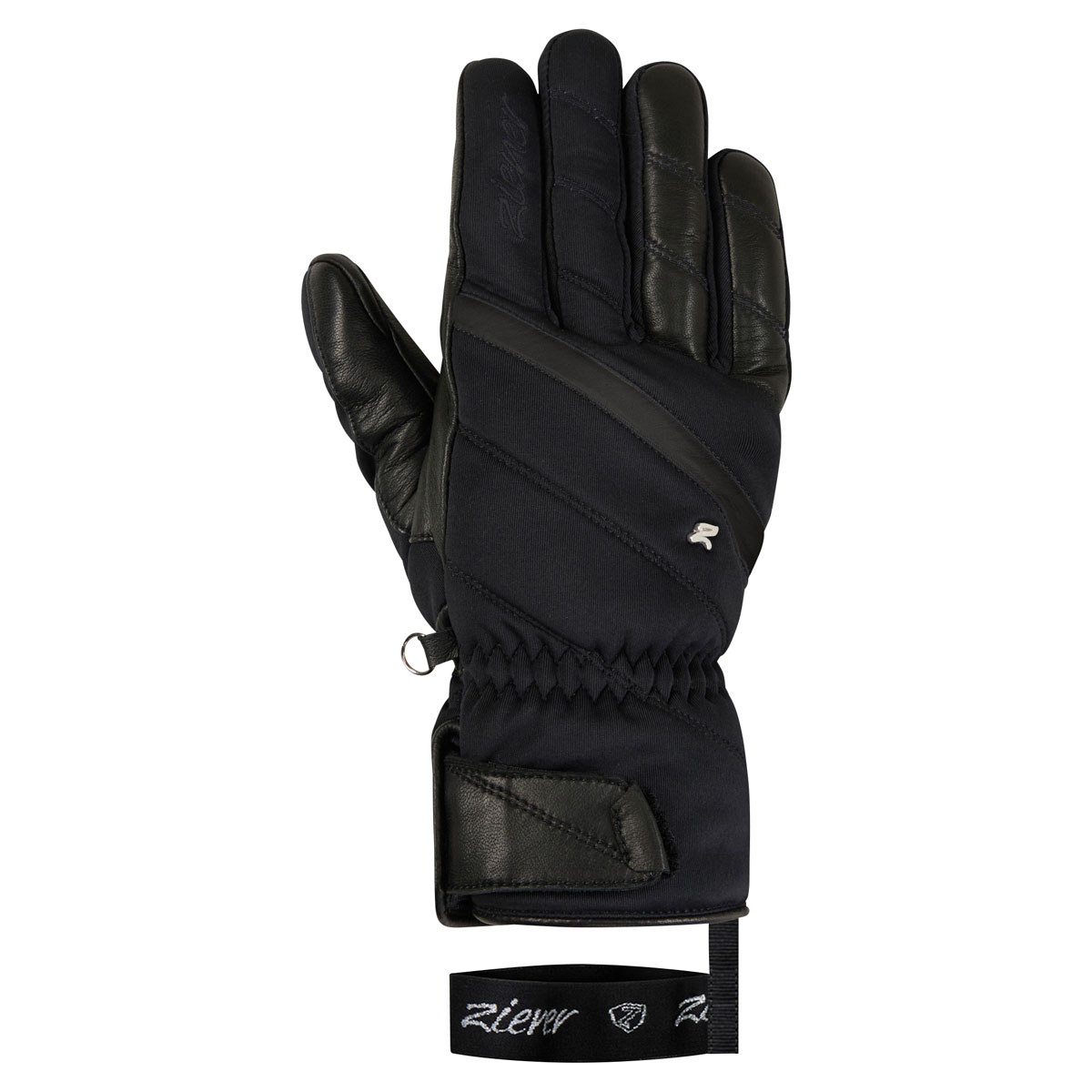 Die extra warmen ZIENER Damen Skihandschuhe KAMY-Z WS PR LADY sind dank des Einsatzes von GORE® WINDSTOPPER® absolut winddicht und sehr atmungsaktiv. Die PrimaLoft® Gold Isolierung hält auch bei extremen Bedingungen exzellent warm. Das weiche Softshell-Material garantiert eine hochwertige Ausstattung mit viel Flexibilität. Das Plüschfutter sorgt für zusätzlichen Tragekomfort und Wärme. Die weiche Innenhand aus Lammleder verleiht optimales Griffgefühl. Die Stulpe kann mit einem breiten Klettverschluss angepasst und unter dem Ärmel getragen werden. Die praktische Leash fixiert den Handschuh auch bei schnellem Ausziehen zuverlässig am Handgelenk. Das Produkt enthält nichttextile Teile tierischen Ursprungs.