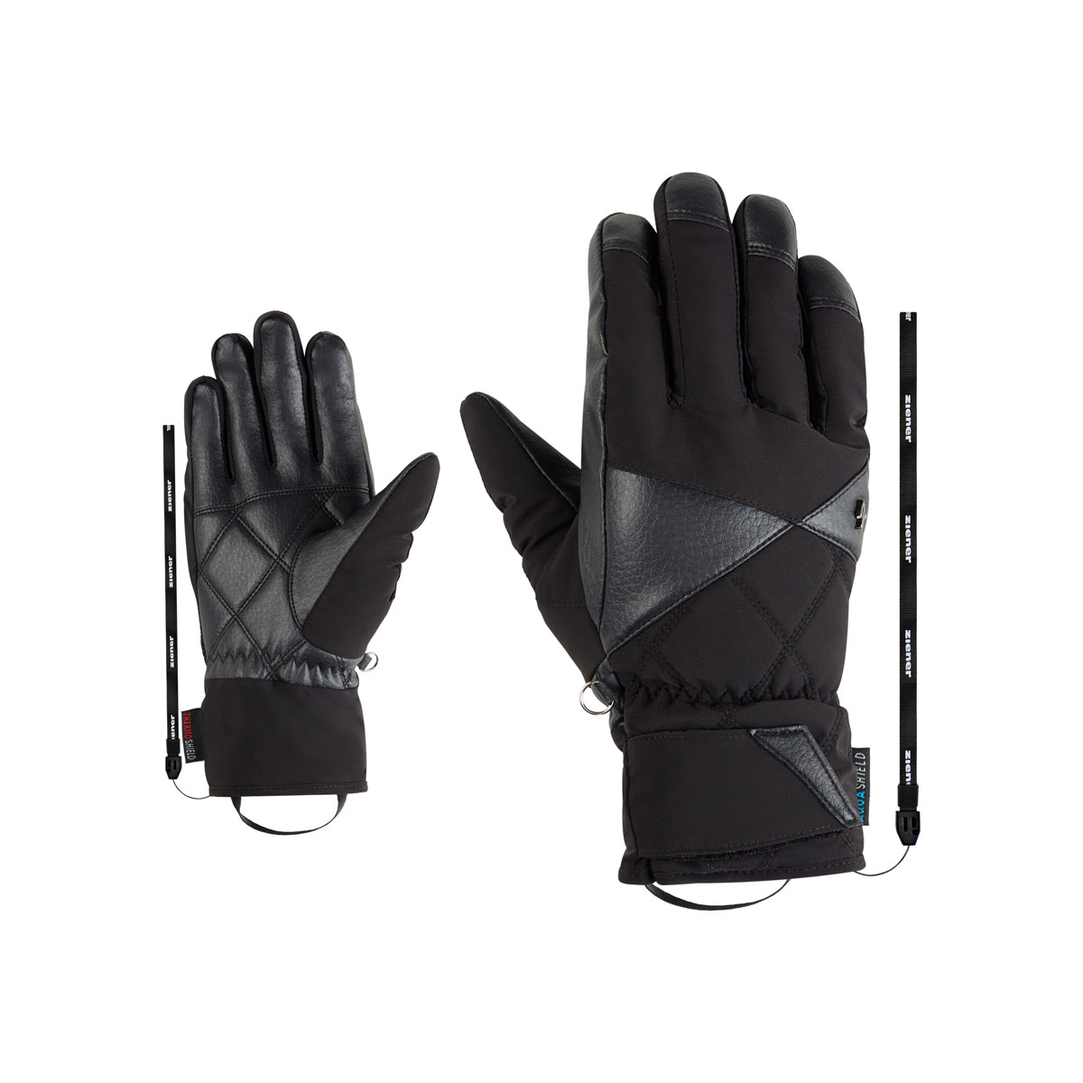Die sportlichen und modernen ZIENER Damen Skihandschuhe KOANA-Z AS® PR LADY sind aus hochatmungsaktiven PFAS-freiem AQUAIR Kunstleder gefertigt und sind zu 100% Vegan. Das sehr weiche Material mit Lederoptik bietet höchsten Tragekomfort. Die PrimaLoft® Gold Isolierung hält auch bei extemen Bedingungen exzellent warm. Die Stulpe kann mit einem Klettverschluss angepasst und über oder unter dem Ärmel getragen werden. Die praktische Leash fixiert den Handschuh auch bei schnellem Ausziehen zuverlässig am Handgelenk. Der Außenstoff ist bluesign® und Standard 100 by OEKO-TEX® zertifiziert.