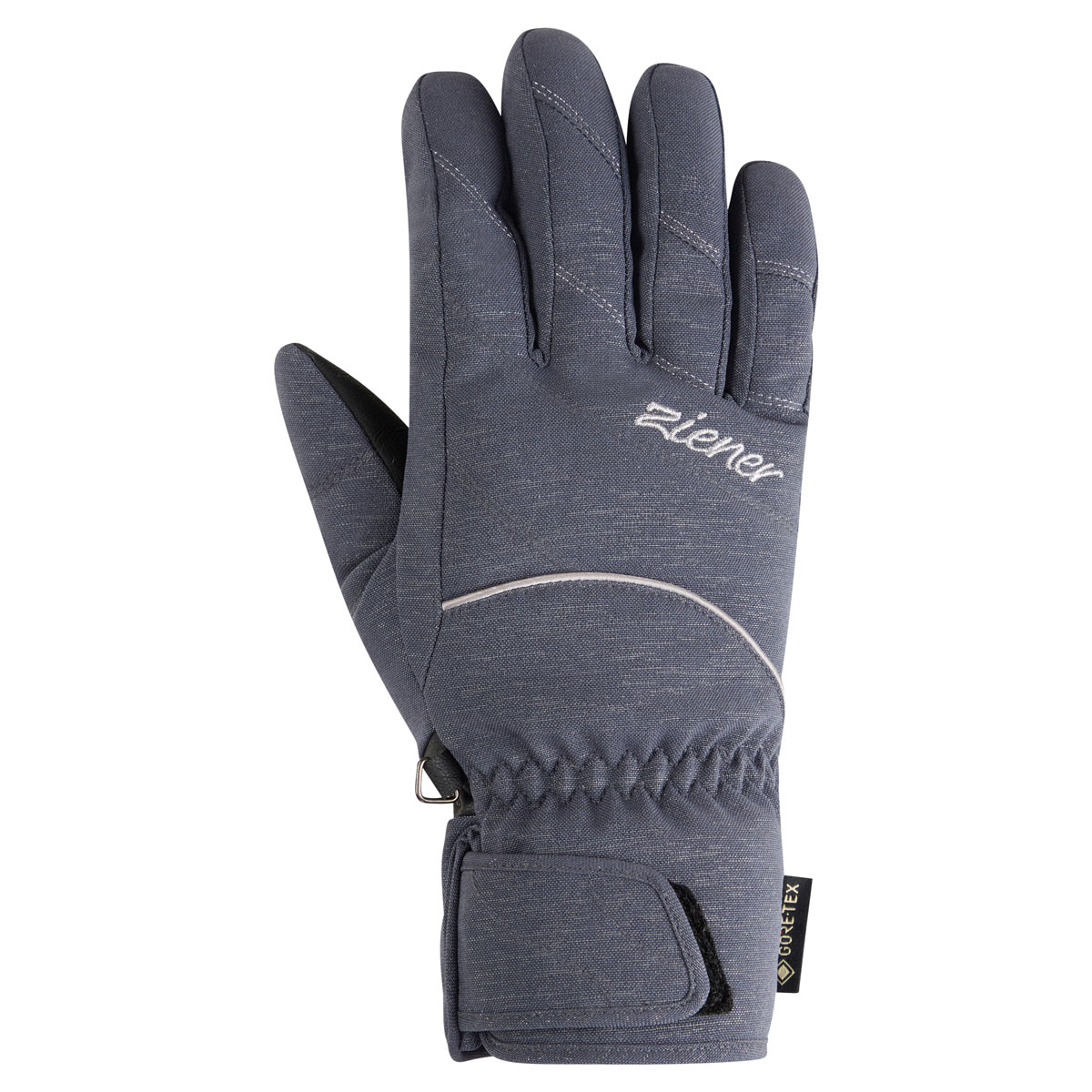 Die modischen ZIENER Damen Skihandschuhe KATIMA-Z GTX LADY sind ausgestattet mit der neuen GORE-TEX ePE Membrane und dadurch dauerhaft wasserdicht, winddicht und atmungsaktiv. Die innovative ePE Membrane ist PFAS frei, zudem bluesign® und Standard 100 by OEKO-TEX® zertifiziert. Ebenfalls ist der Oberstoff des Handschuhes bluesign® und Standard 100 by OEKO-TEX® zertifiziert. Die warme, weiche Wattierung mit dem zusätzlichen Plüschfutter hält an kalten Pistertagen besonders warm. Zudem ist die Wattierung des Handschuhes bluesign® und Standard 100 by OEKO-TEX® zertifiziert. Die taktilen Innenhände bieten höchsten Tragekomfort. Der Klettverschluss am Handgelenk sorgt für einen perfekten Sitz und kann unter der Jacke getragen werden.
