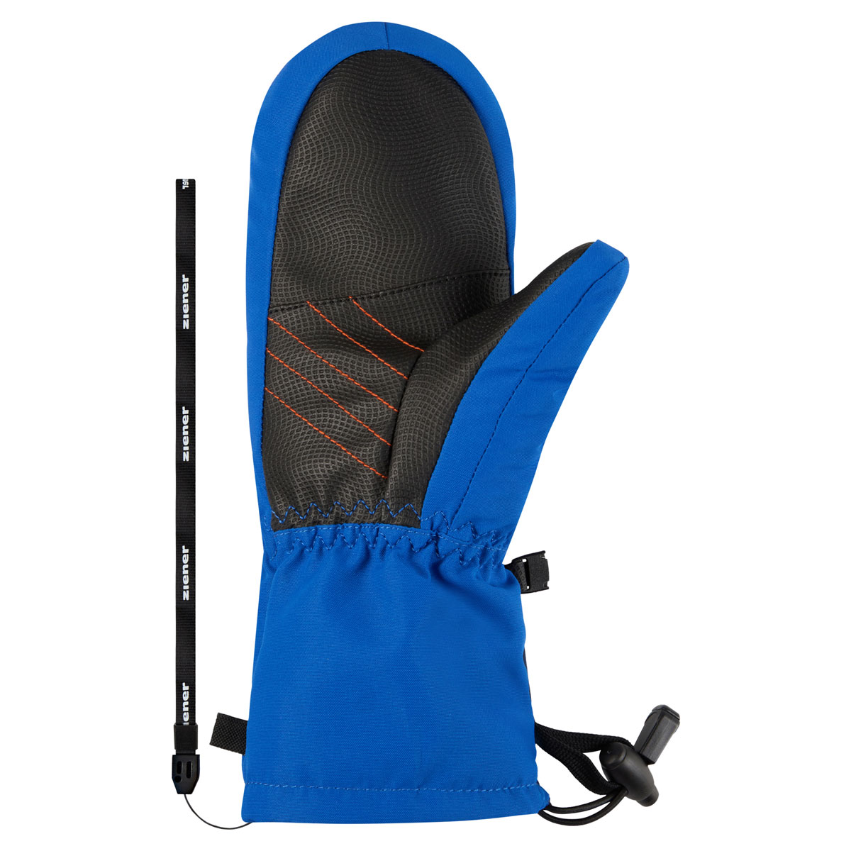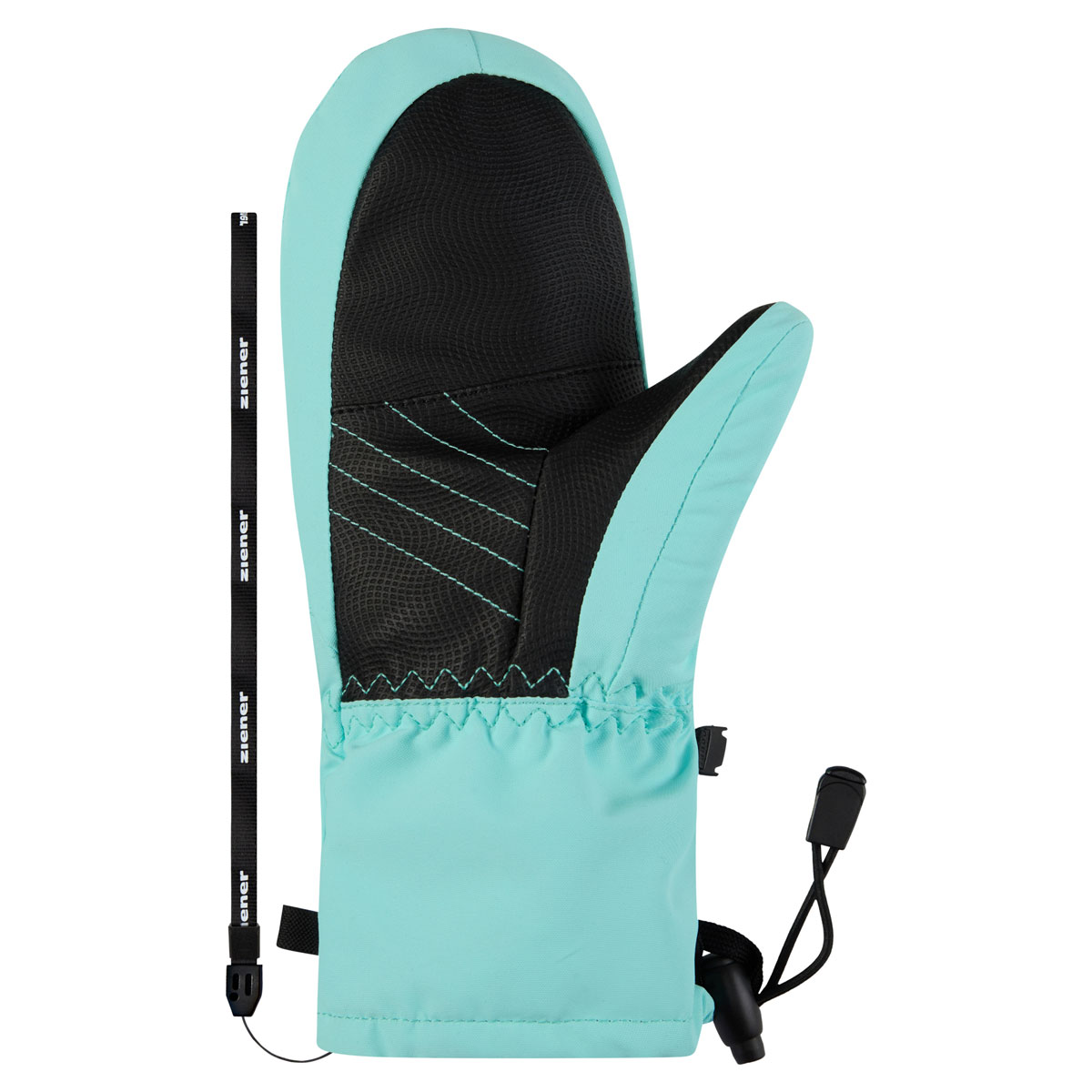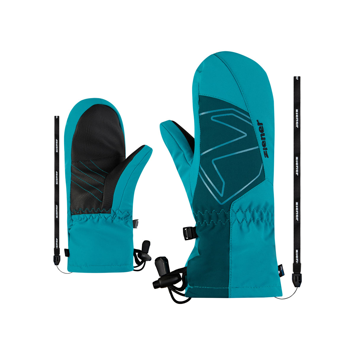 Die trendigen ZIENER Skifäustlinge LAVALINO-Z AS® AW MITTEN JUNIOR halten Kinderhände dank der angenehmen lavalan® Wollwattierung kuschelig warm. Das zusätzliche Plüschfutter hält die Hände extra warm. Zudem sind sie mit der wasser- und winddichten ZIENER AQUASHIELD® Membran ausgestattet, die für ein trockenes Klima sorgt. Die robusten Materialien sind gemacht für eine hohe Beanspruchung und punkten mit langer Haltbarkeit – damit steht dem Vergnügen im Schnee nichts mehr im Weg. Die lange Stulpe mit Cordlock-Abschluss kann über der Jacke getragen werden und lässt sich kinderleicht mit nur einer Hand verstellen. Die praktische Leash fixiert den Handschuh auch bei schnellem Ausziehen zuverlässig am Handgelenk. Der Außenstoff ist bluesign® und Standard 100 by OEKO-TEX® zertifiziert.
