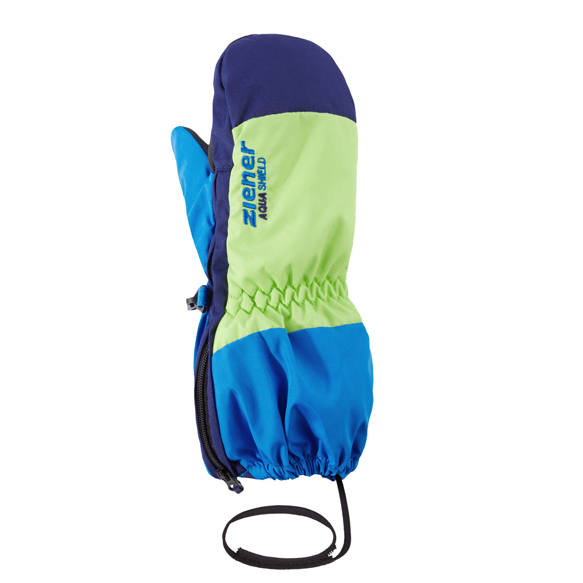 Die trendigen ZIENER Miniskifäustlinge LEVI-Z AS® MINIS für Kleinkinder sind mit einer besonders langen Stulpe und seitlichem Reißverschluss ausgestattet. Die extra weite Öffnung bis über den Daumen erleichtert das An- und Ausziehen enorm. Zudem lassen sich die Handschuhe perfekt über dem Jackenärmel tragen und der Gummizug verhindert das eindringen von Schnee. Die wasser- und winddichte ZIENER AQUASHIELD® Membran sorgt für ein warmes und trockenes Klima. Mit der elastischen Leash lassen sich die Handschuhe zusätzlich am Handgelenk befestigen. Der Außenstoff ist bluesign® und Standard 100 by OEKO-TEX® zertifiziert. Die Handschuhe sind von Größe 1 bis Größe 5 erhältlich.